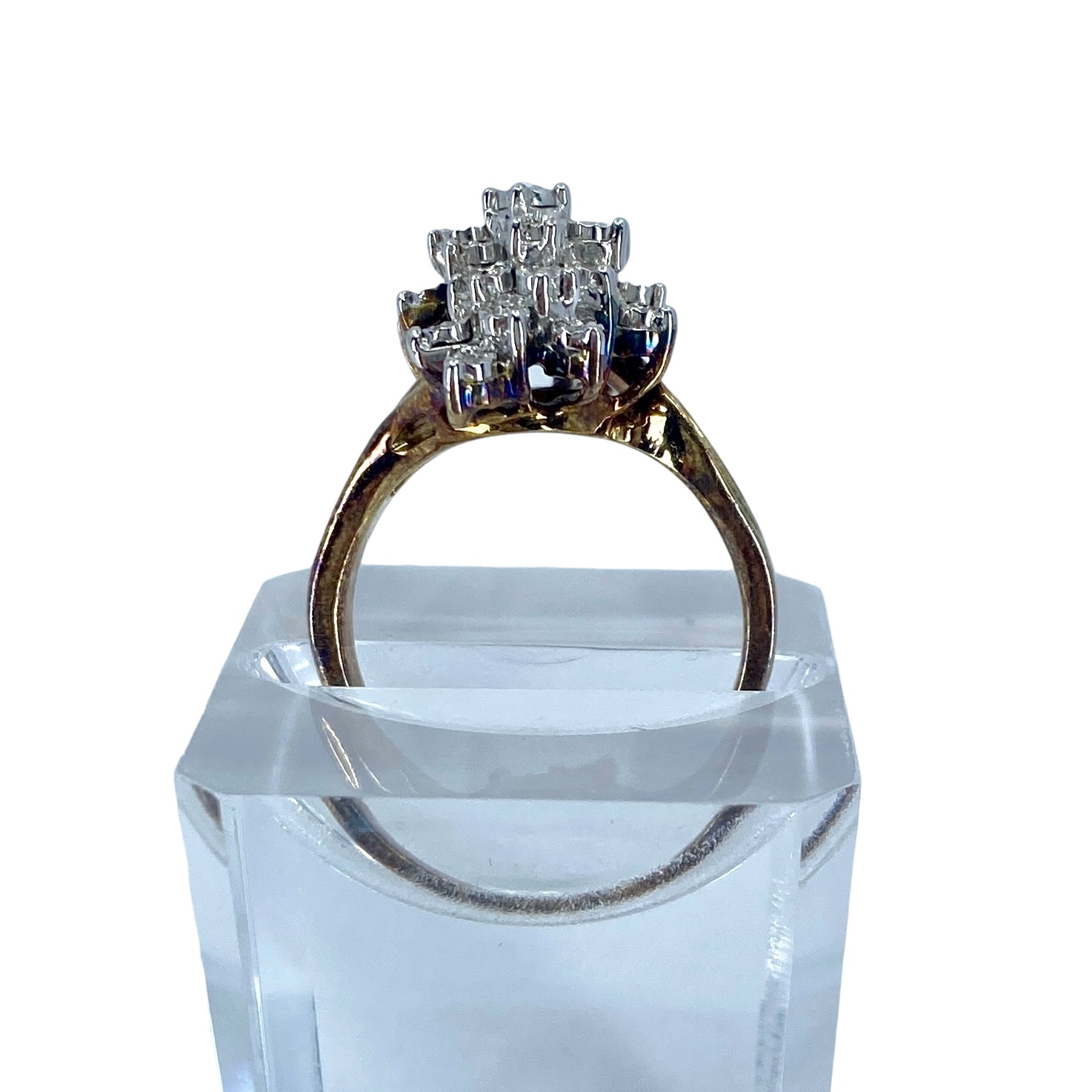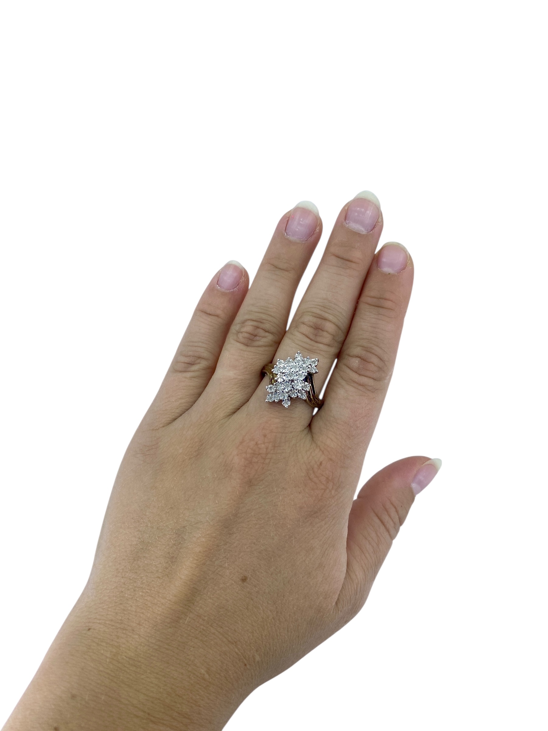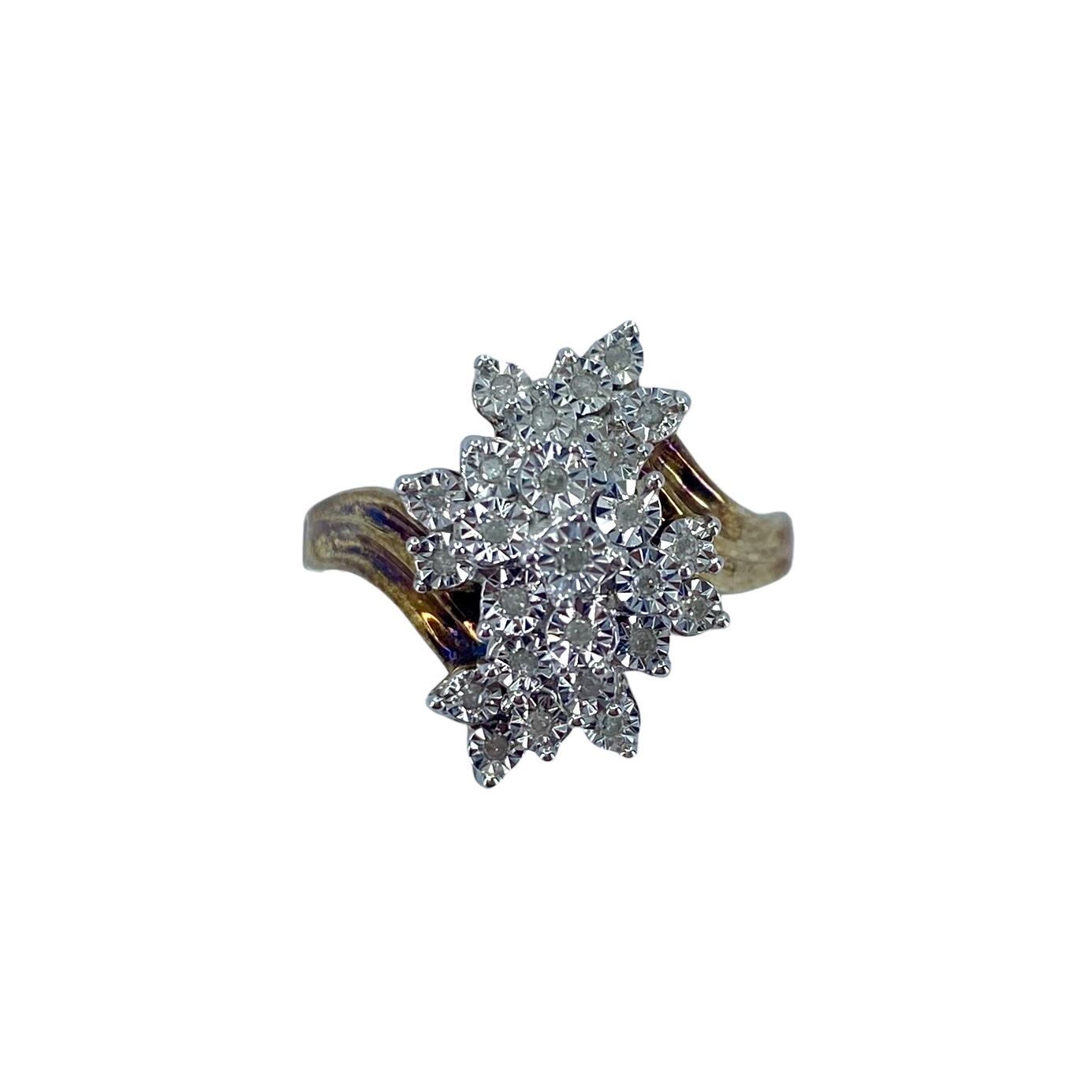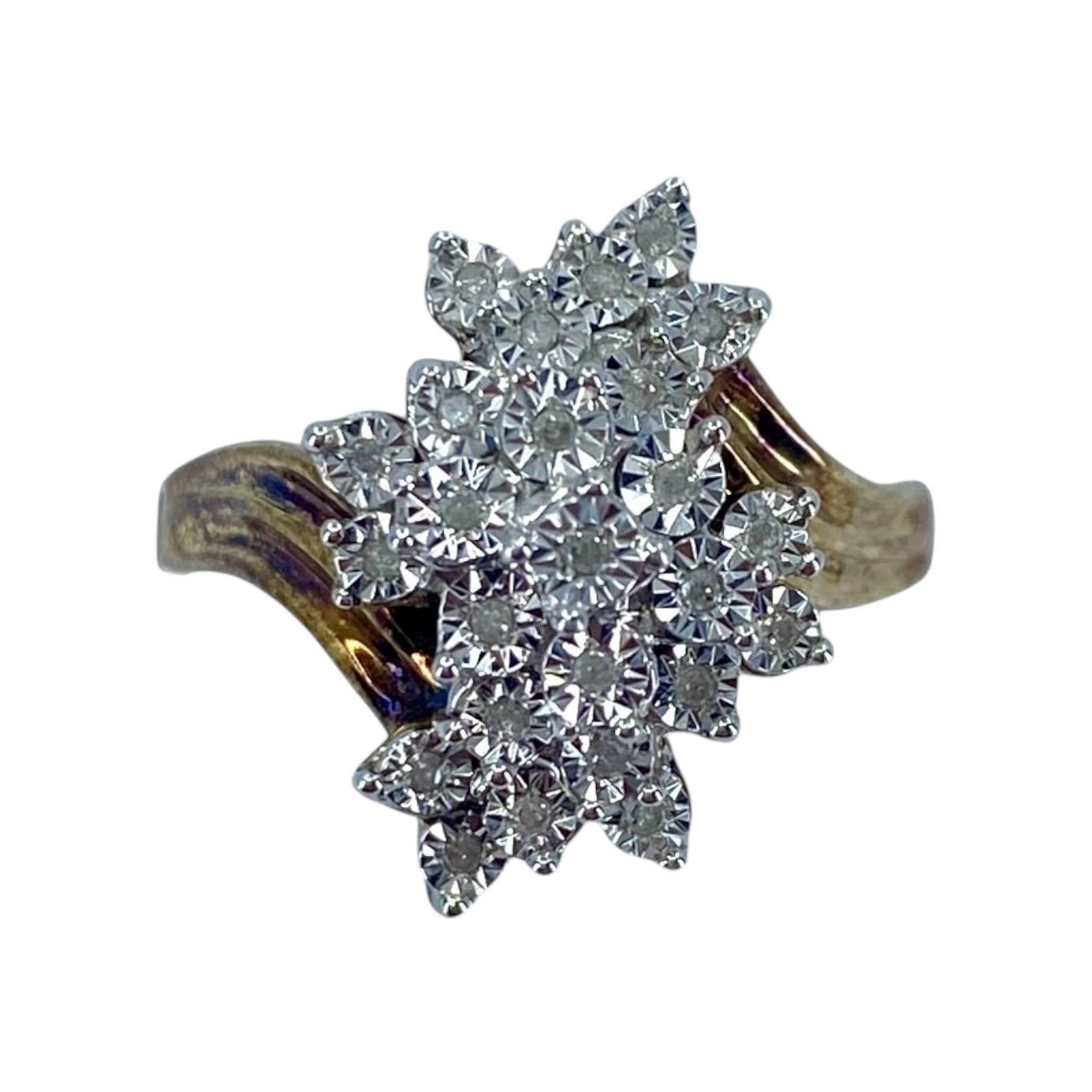 Vintage Diamond Cluster Gold Over Sterling Silver Signed Ring, sz 9.75, 8g, Engraved “925” + hallmark