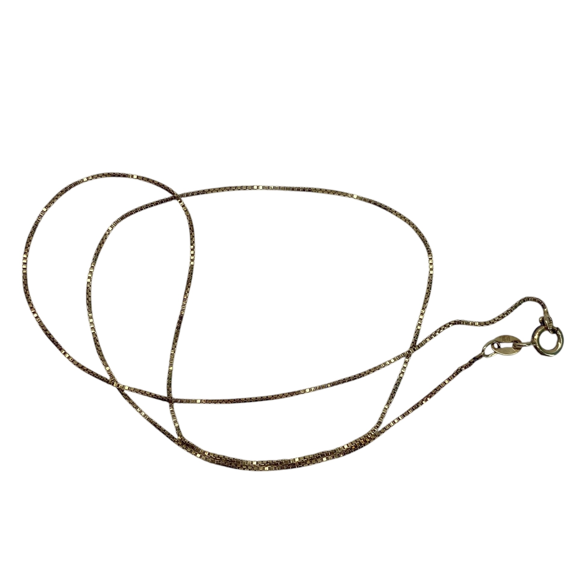 18″ Gold Over Sterling Silver Signed Box Chain Necklace, 2.00g, Engraved “R Italy 925”