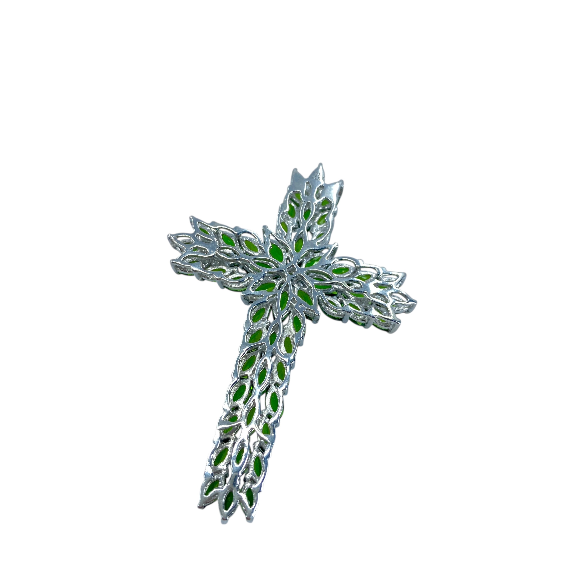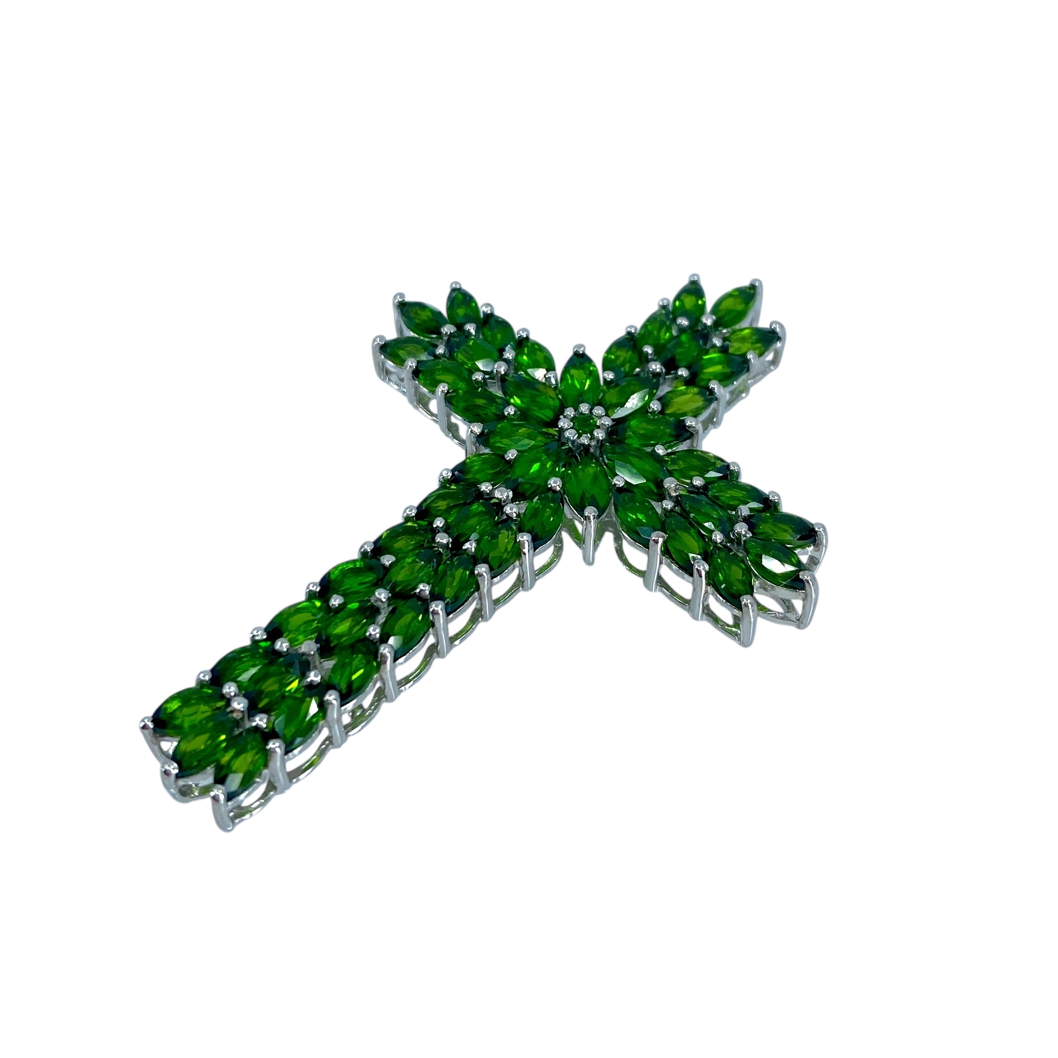Oversized Chrome Diopside Marquise Sterling Silver Cross, 10.10g, Engraved “STS 925”