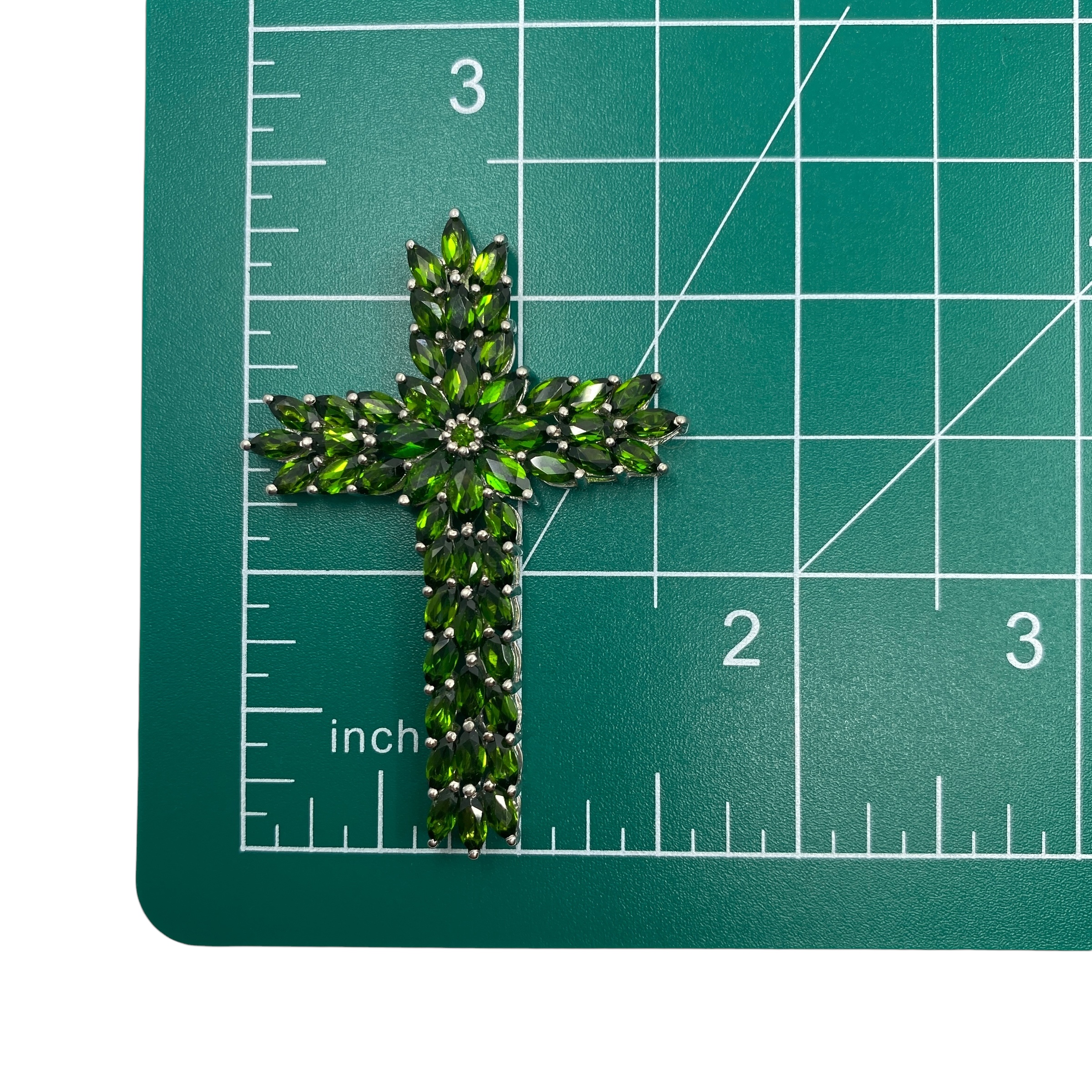 Oversized Chrome Diopside Marquise Sterling Silver Cross, 10.10g