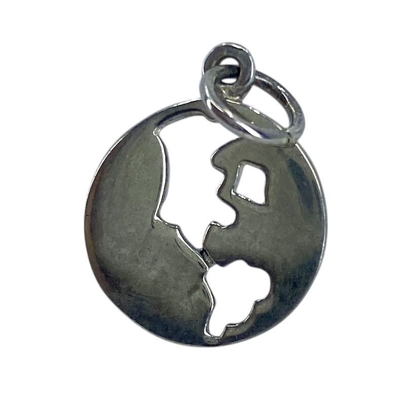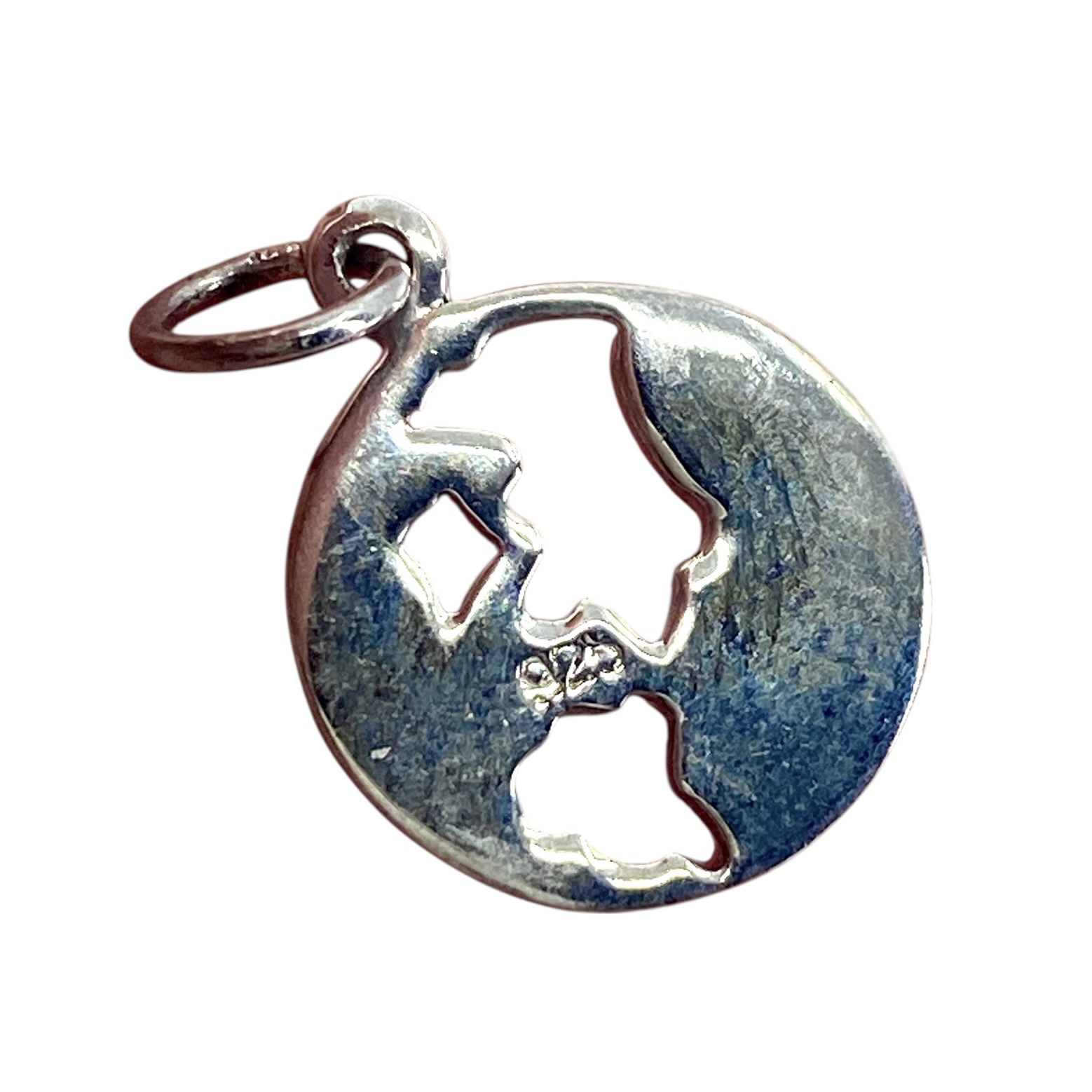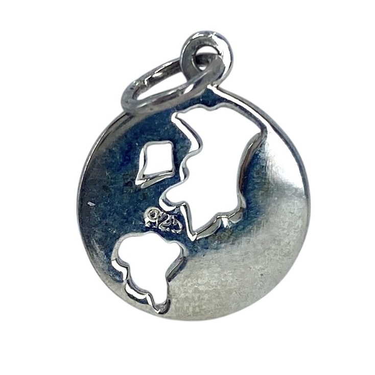 Petite Flat Globe Sterling Silver Charm, 1.04g, Engraved “925”