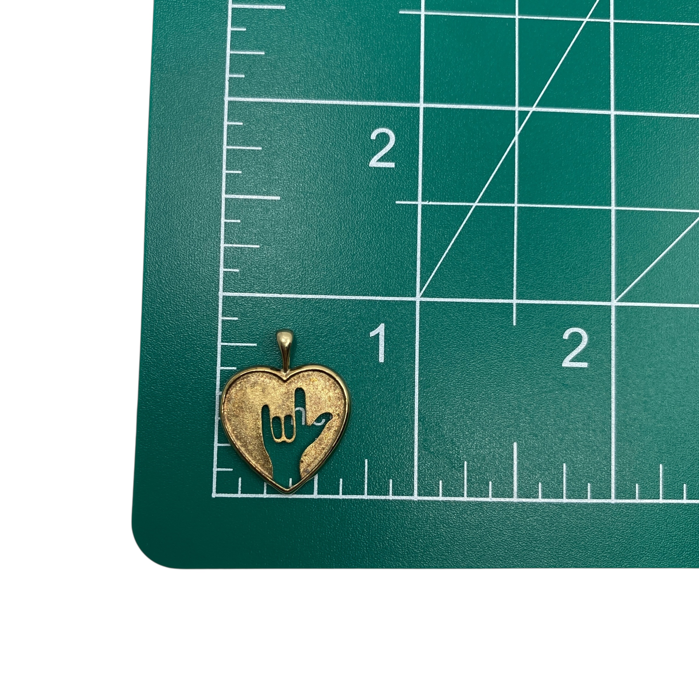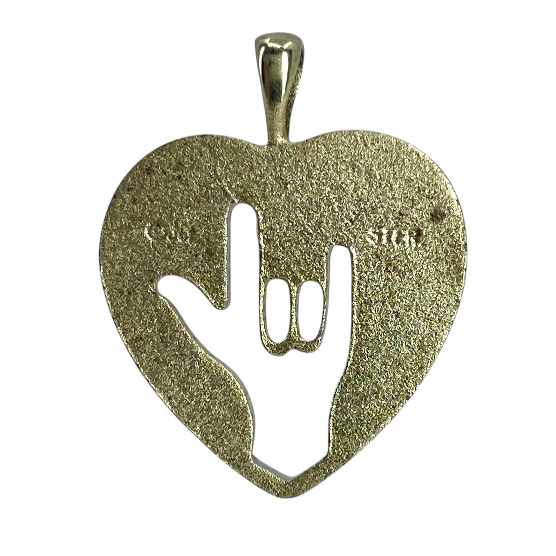 I Love You’ Sign Language Gold Over Sterling Silver Heart Pendant, 1.57g