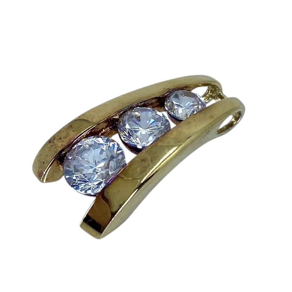 Ross Simons 3 Stone Cubic Zirconia Gold Over Sterling Silver Pendant, 2.49g, Engraved “R CZ 925 China”