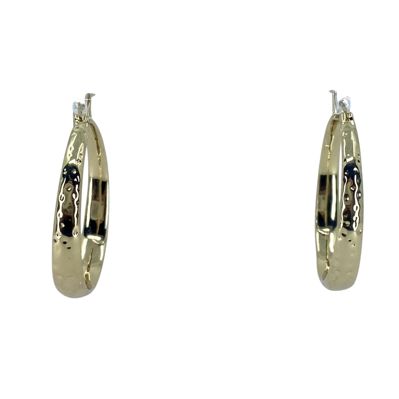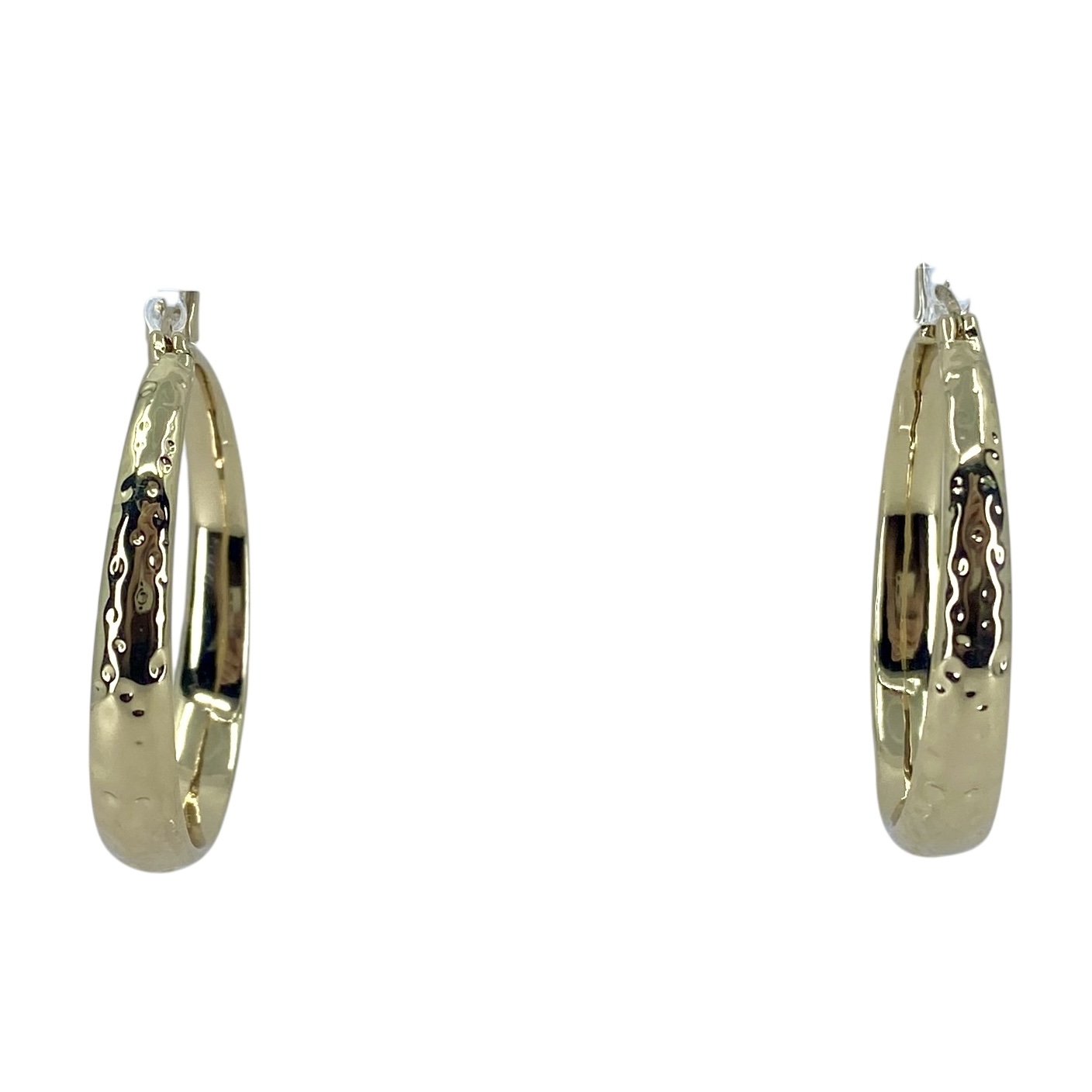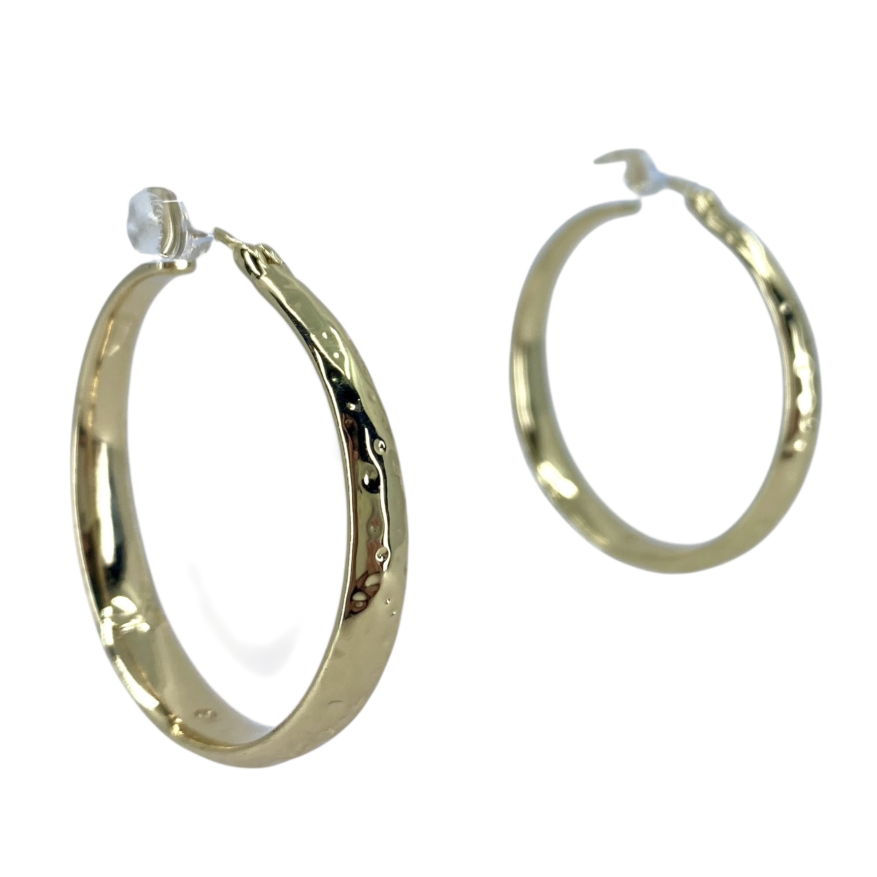Hammered Large Gold Over Sterling Silver Hoop Earrings, 14.11g, Engraved “925”