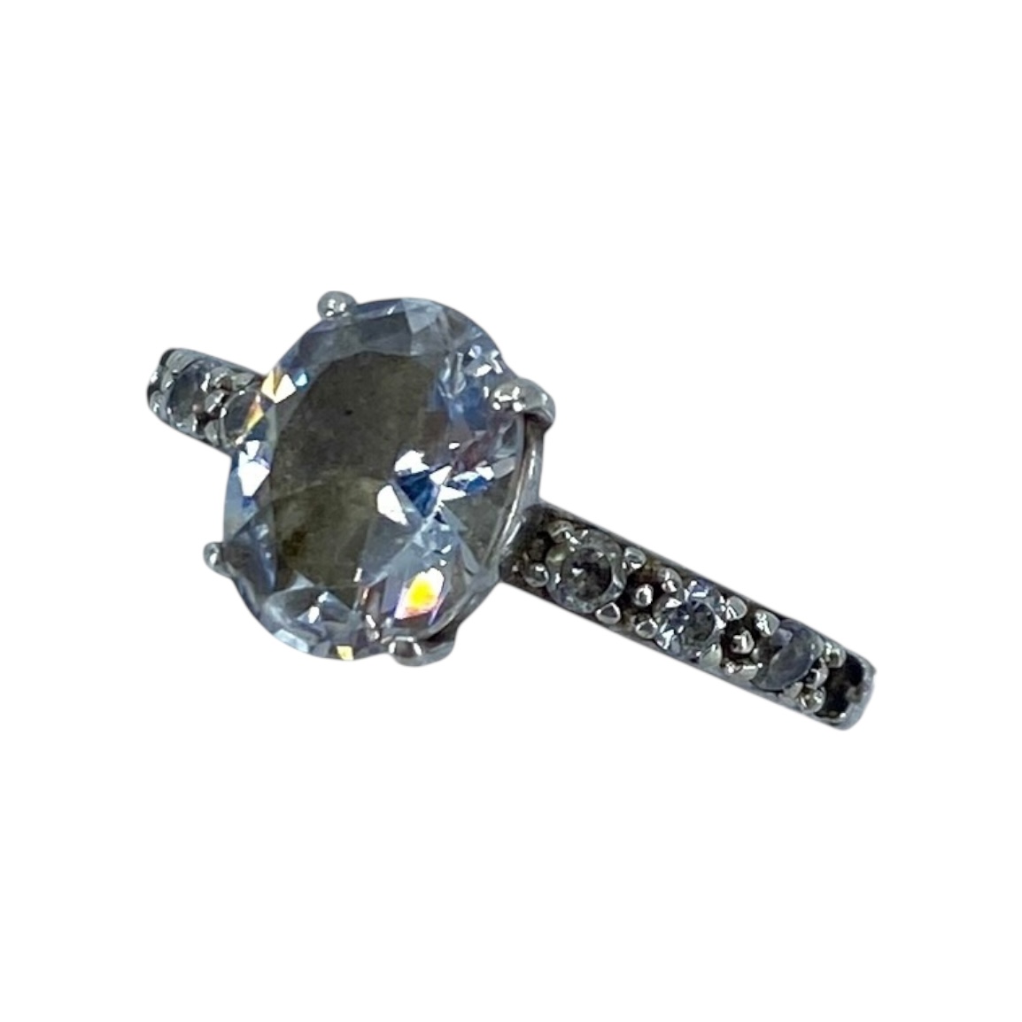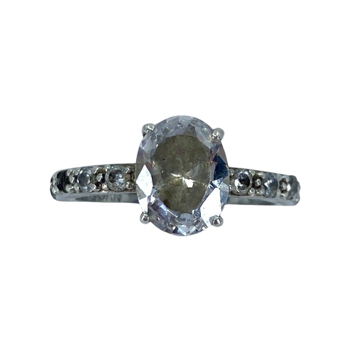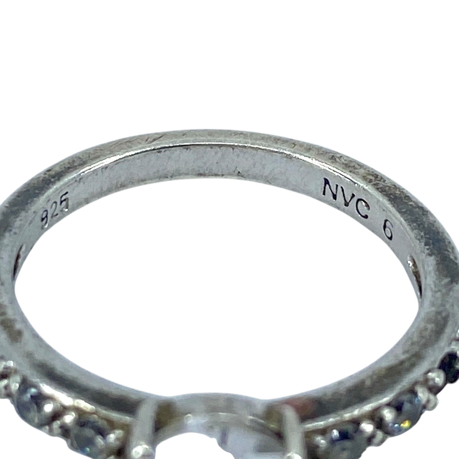 Classic Sterling Silver Oval Rhinestone Signed Ring Missing Stones, sz 5.75, 2.89g, engraved “925 NVC 6”