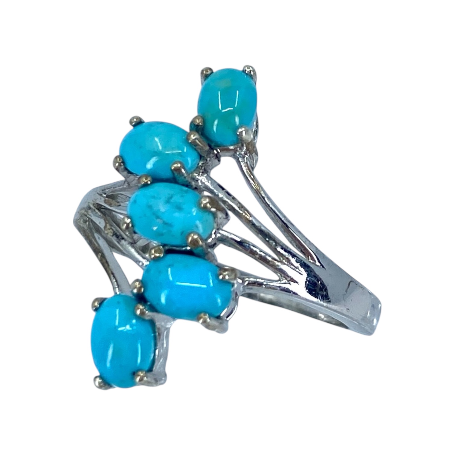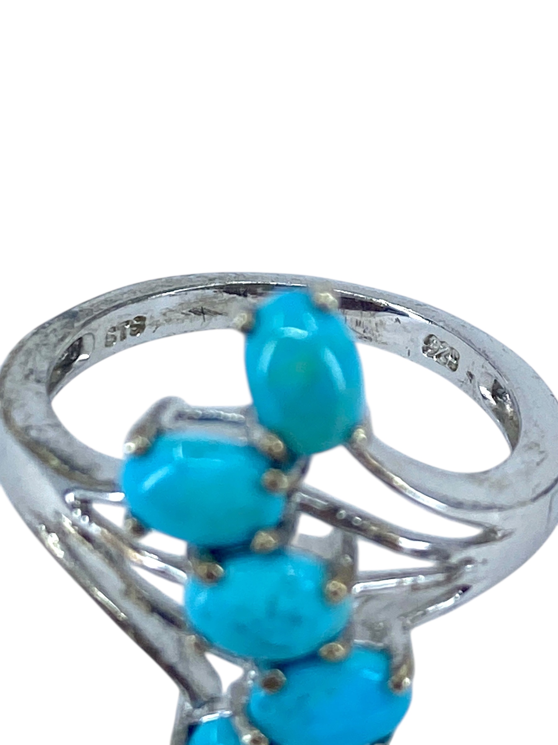 Stacked Turquoise Sterling Silver Ring, Sz 9, 4.18g, Engraved “STS 925”