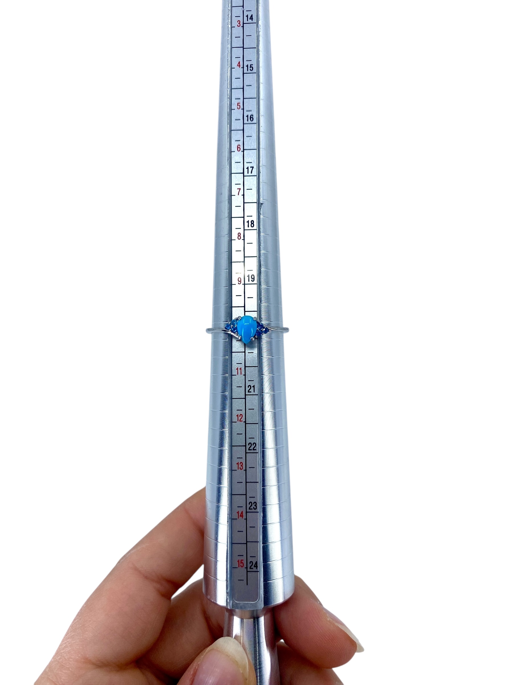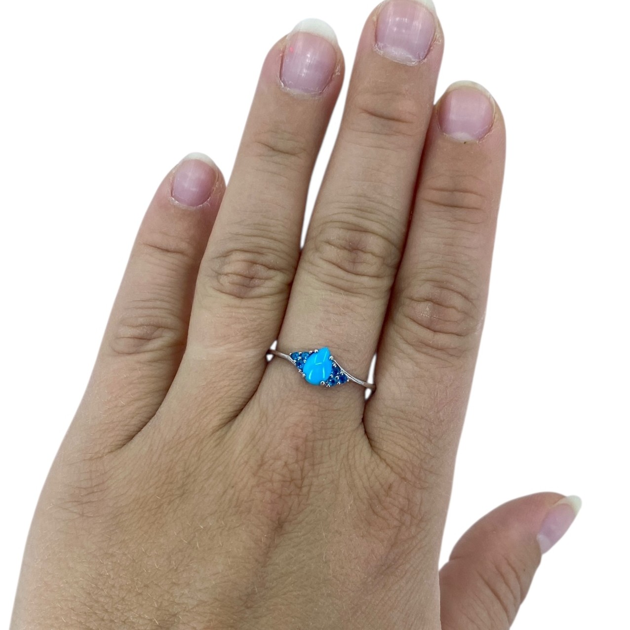 Classy Turquoise Teardrop w/ Blue Rhinestone Sterling Silver DJoy Ring, sz 10, 2.17g, Engraved “DJoy 925”
