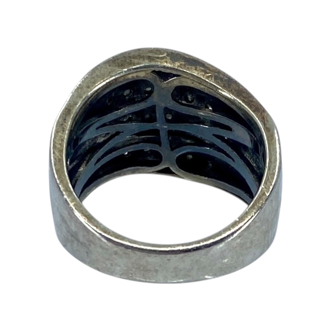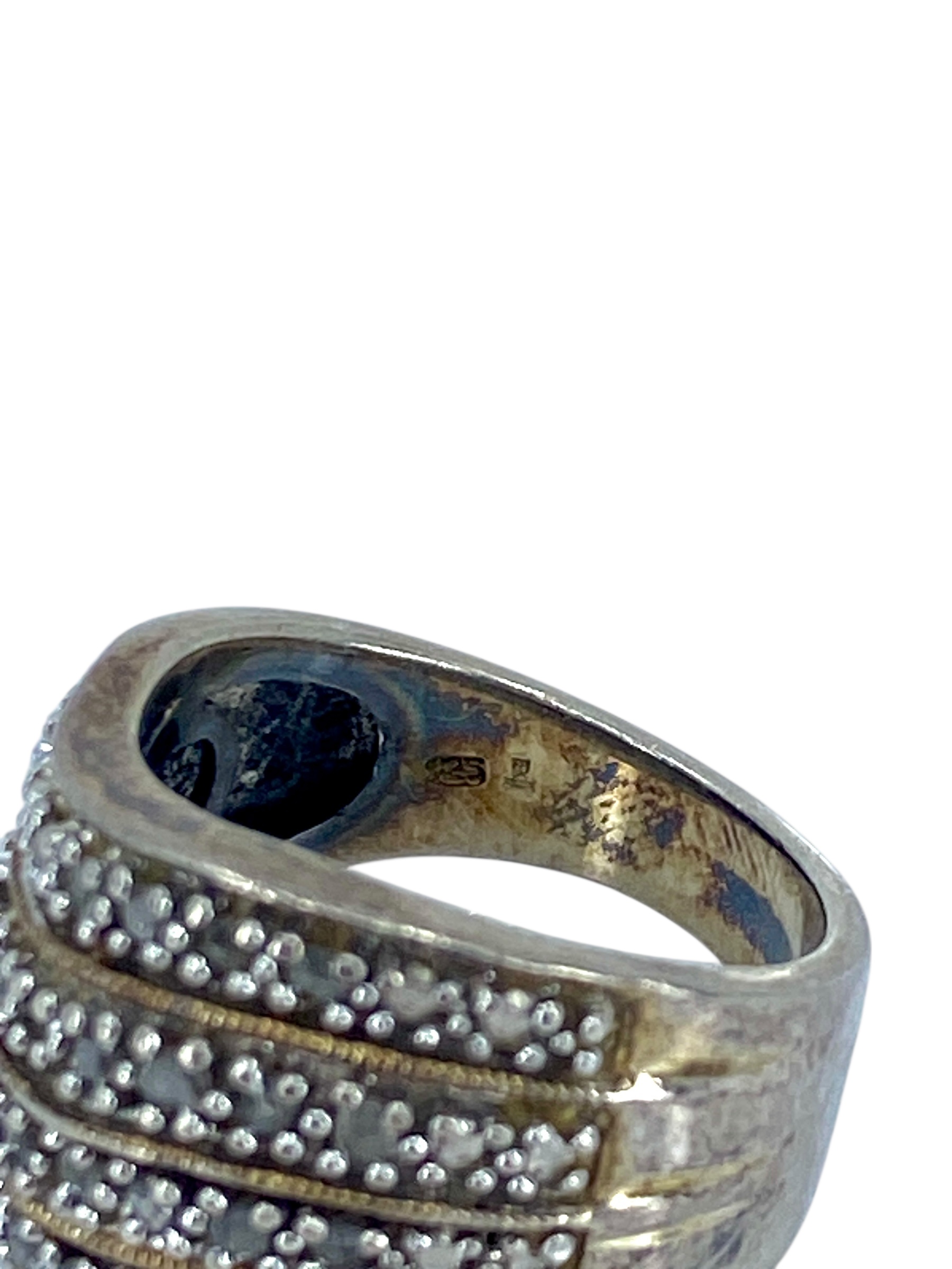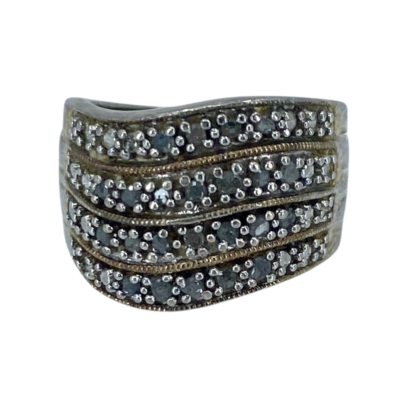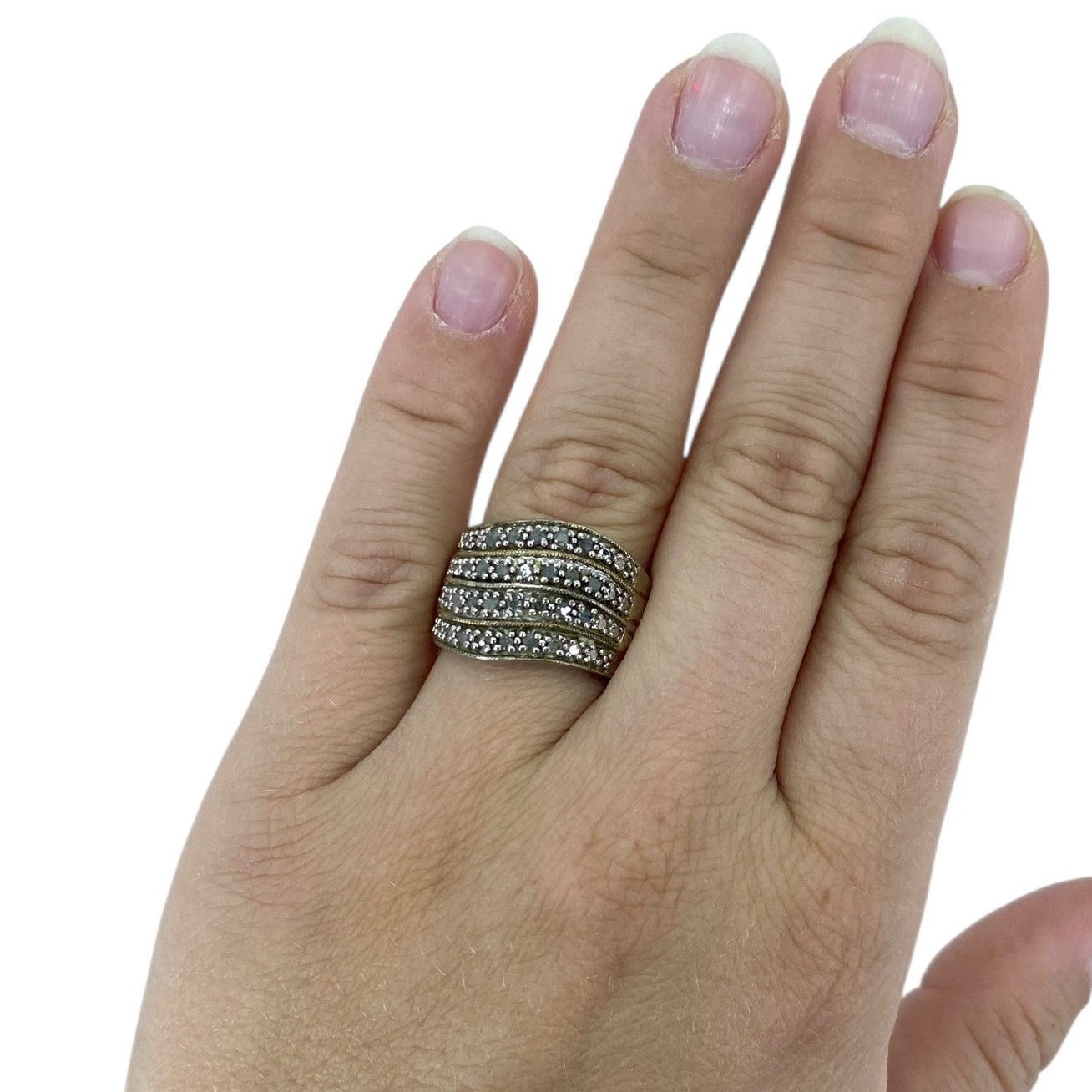 Sophisticated Diamond Gold Over & with Sterling Silver Signed Ring, sz 7.75, 7.62g, engraved “925” + hallmark