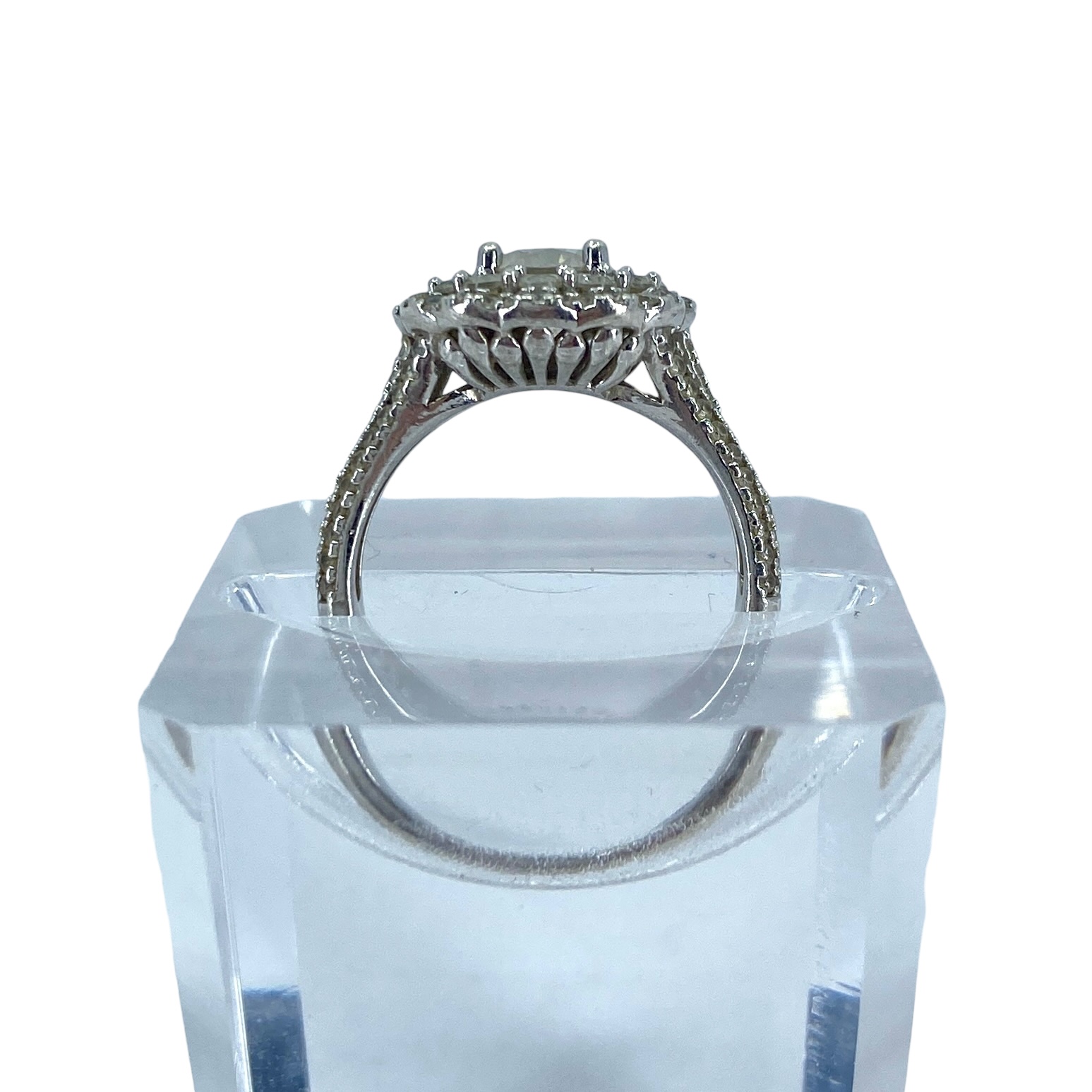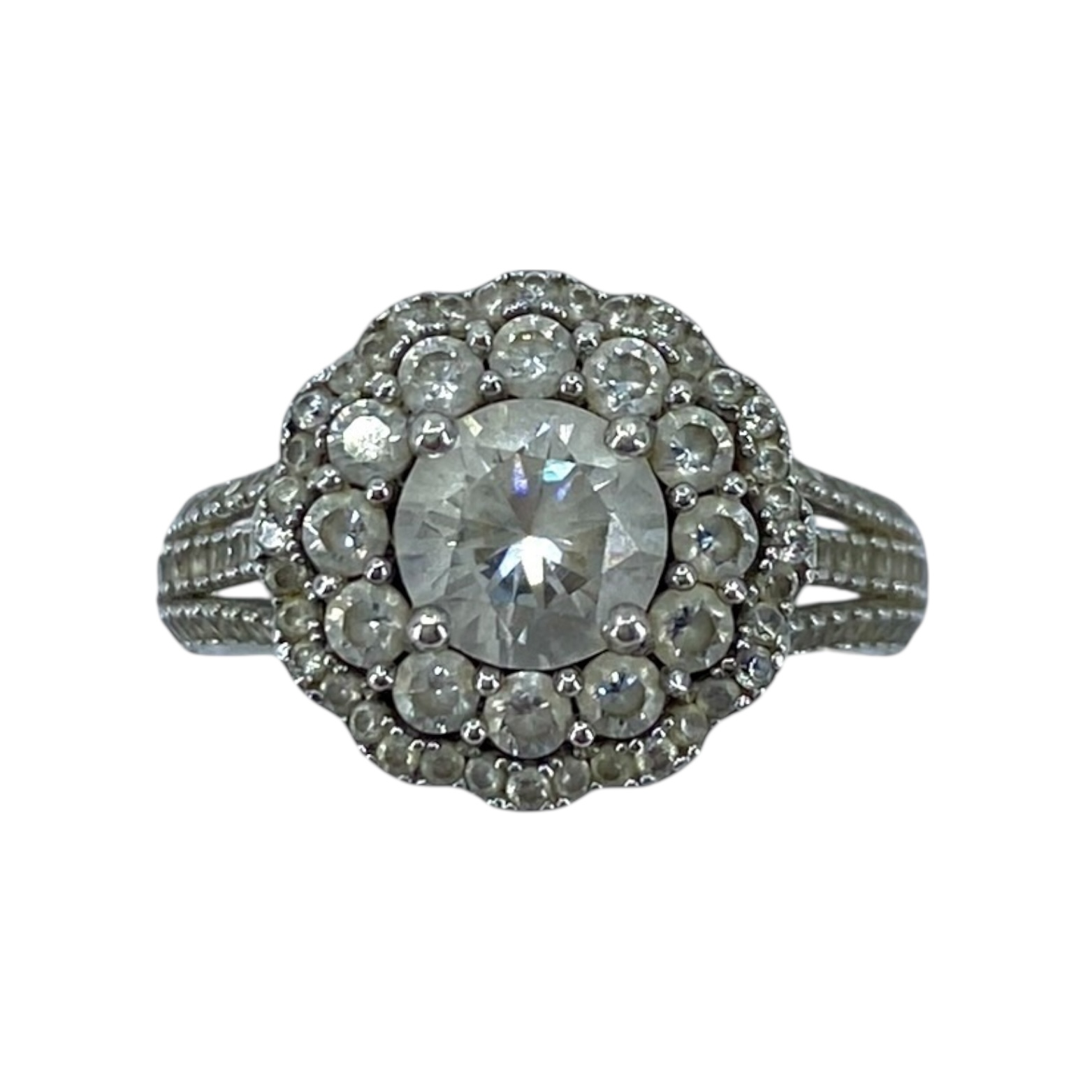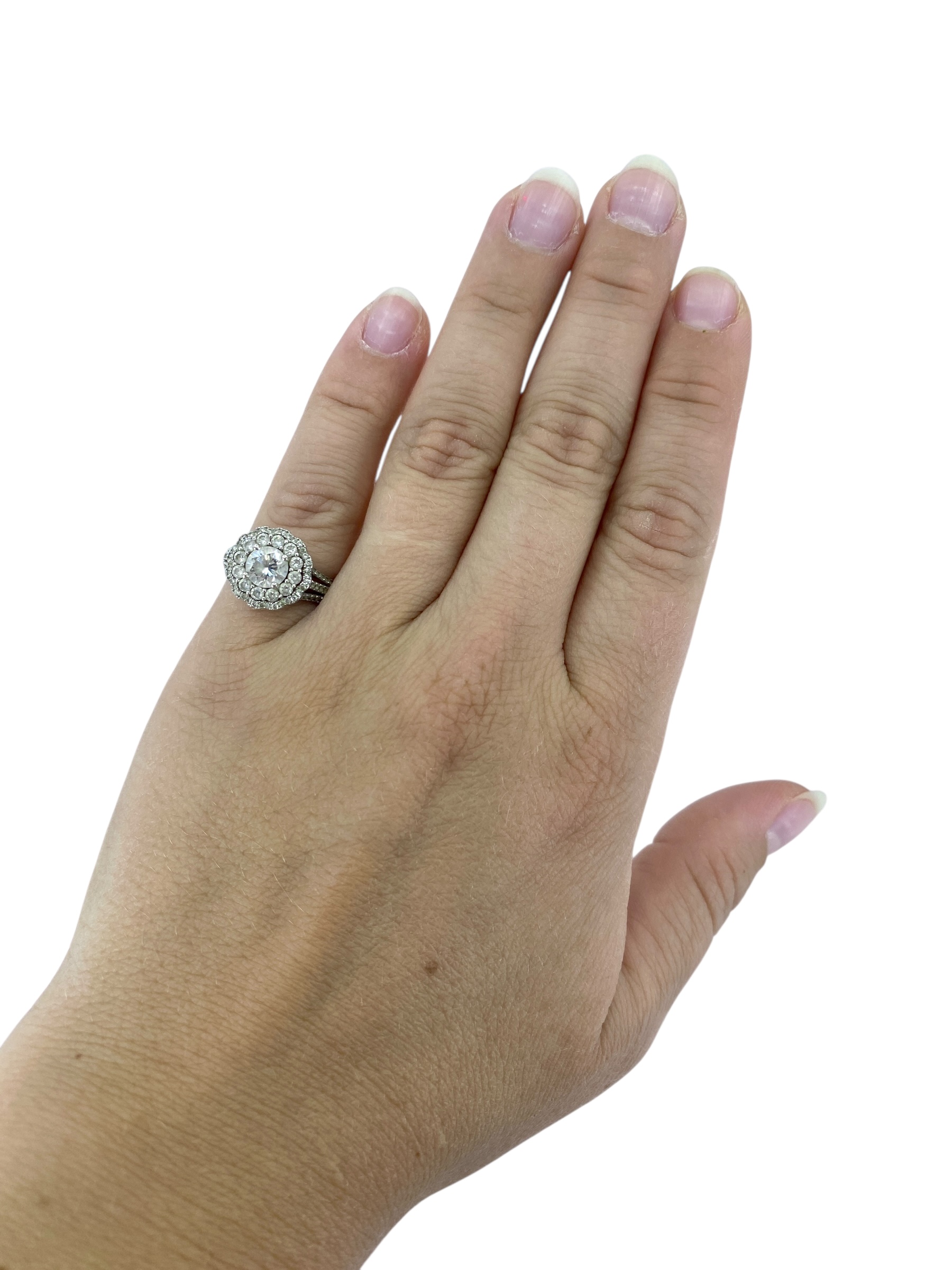 Tasteful Halo Set Rhinestone Sterling Silver Signed Ring, sz 6, 3.77g, Engraved “N 925 China”