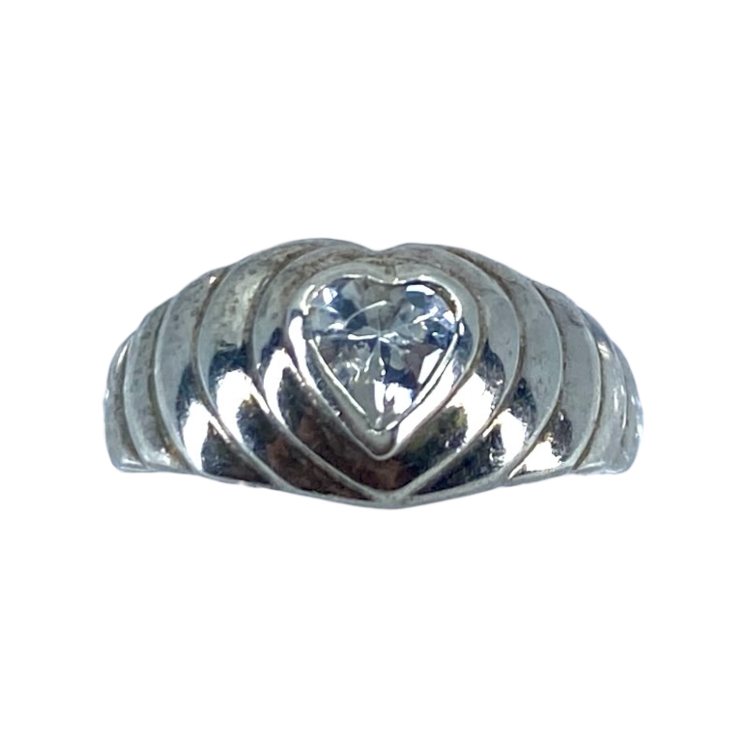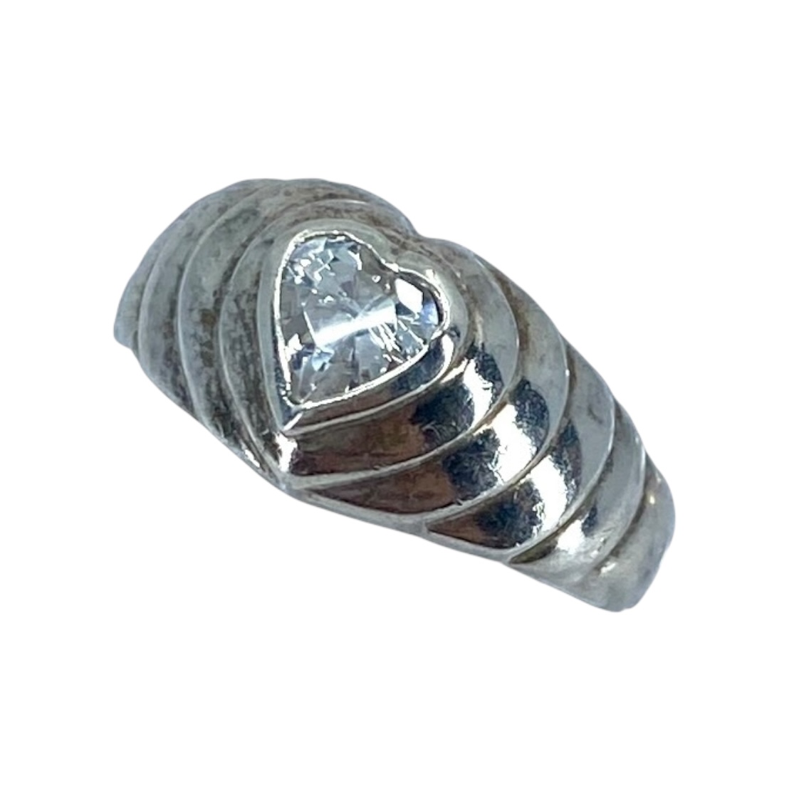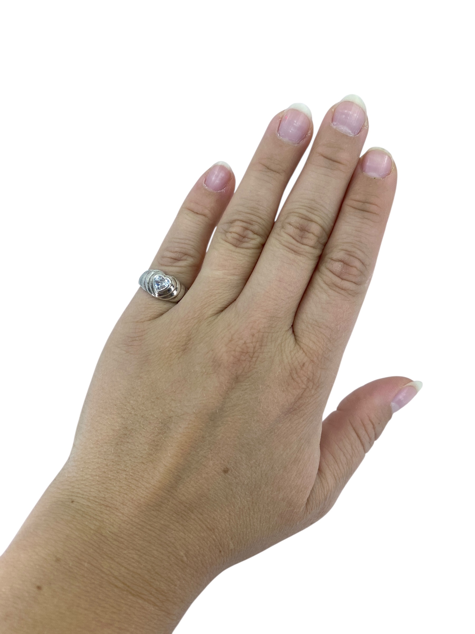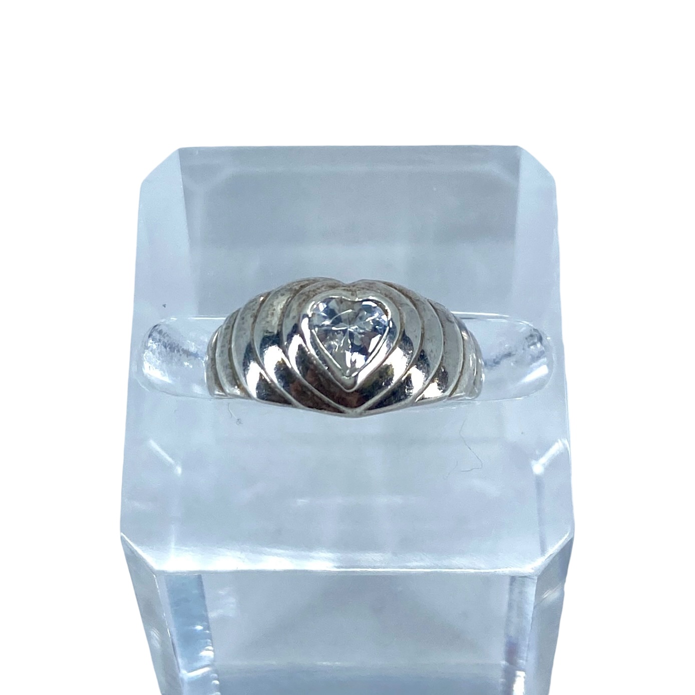 Youthful Tiered Sterling Silver Rhinestone Heart Ring, sz 5.75, 3.59g, Engraved “925 Thailand”
