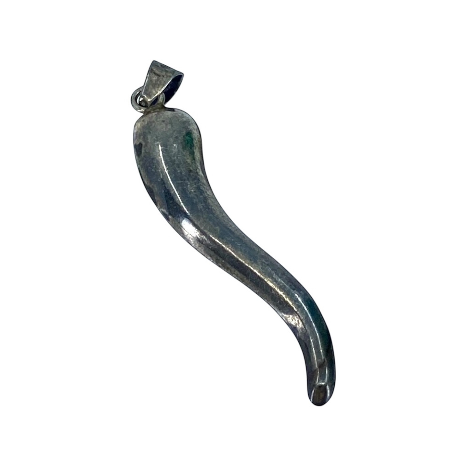 Vintage Italian Horn Sterling Silver Pendant, 2.23g, Engraved Hallmark