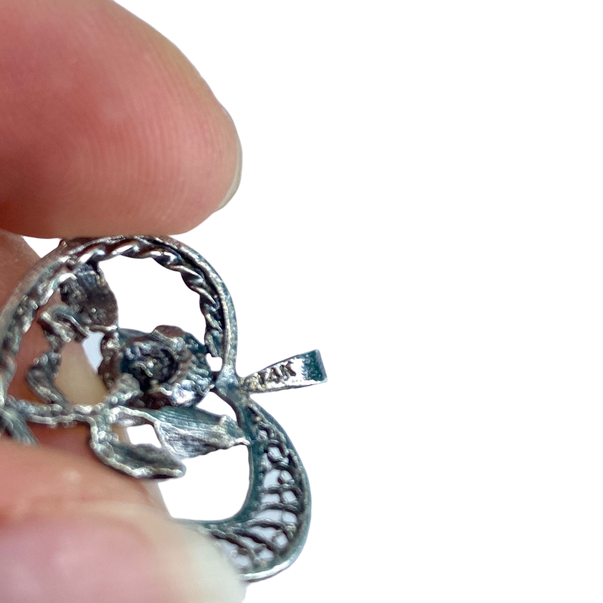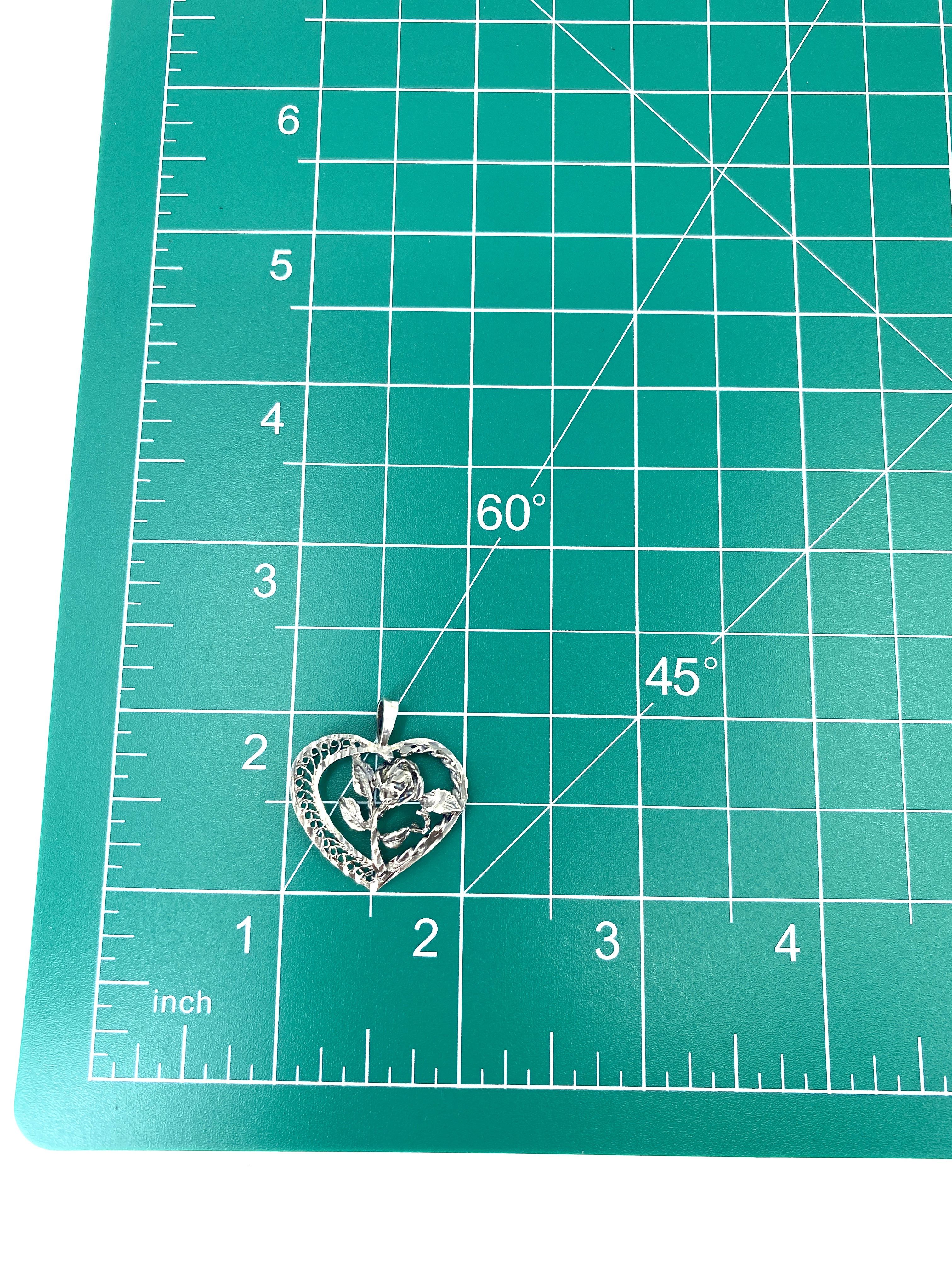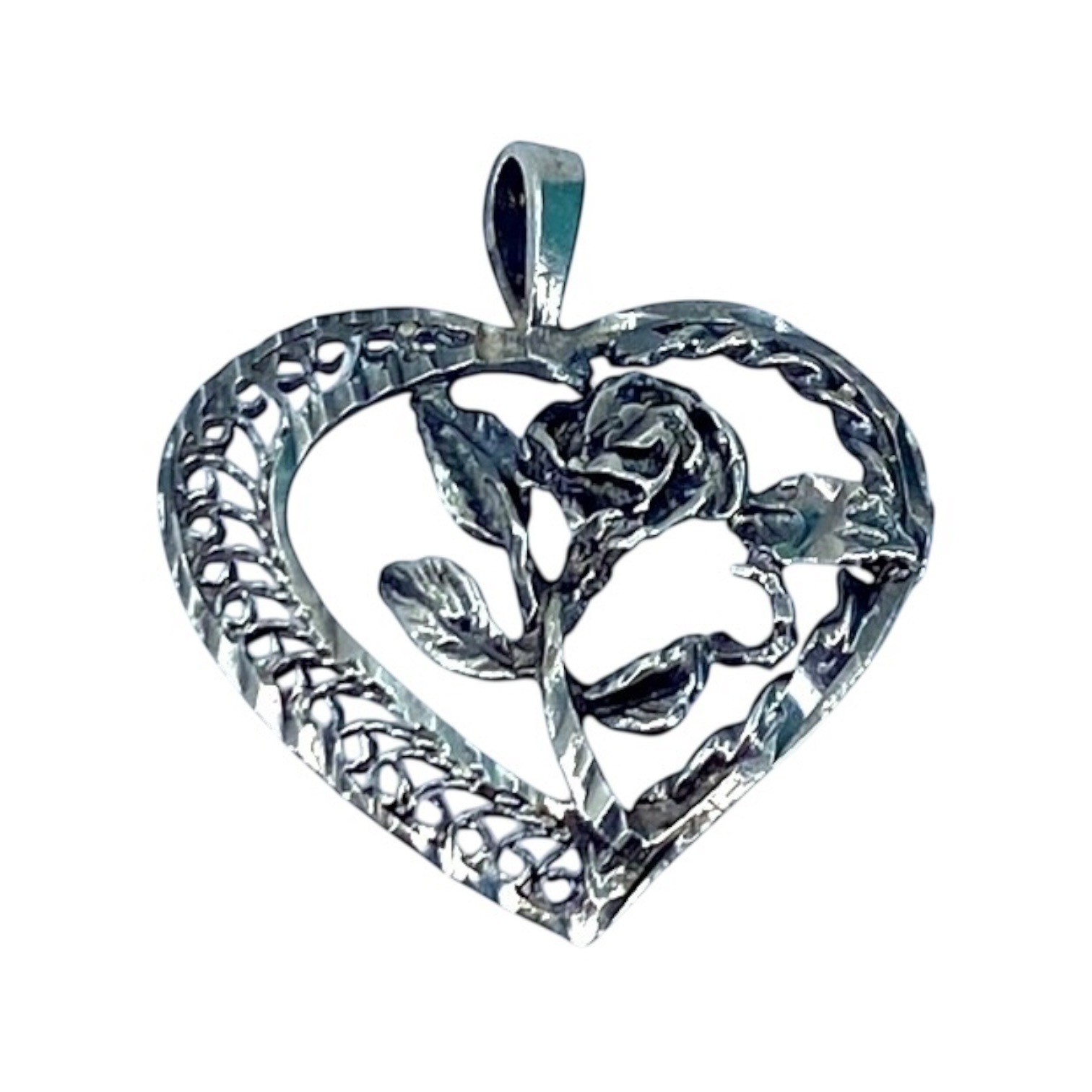 Vintage 14k Heart + Flower Sterling Silver Pendant, 2.08g, Engraved “14k”
