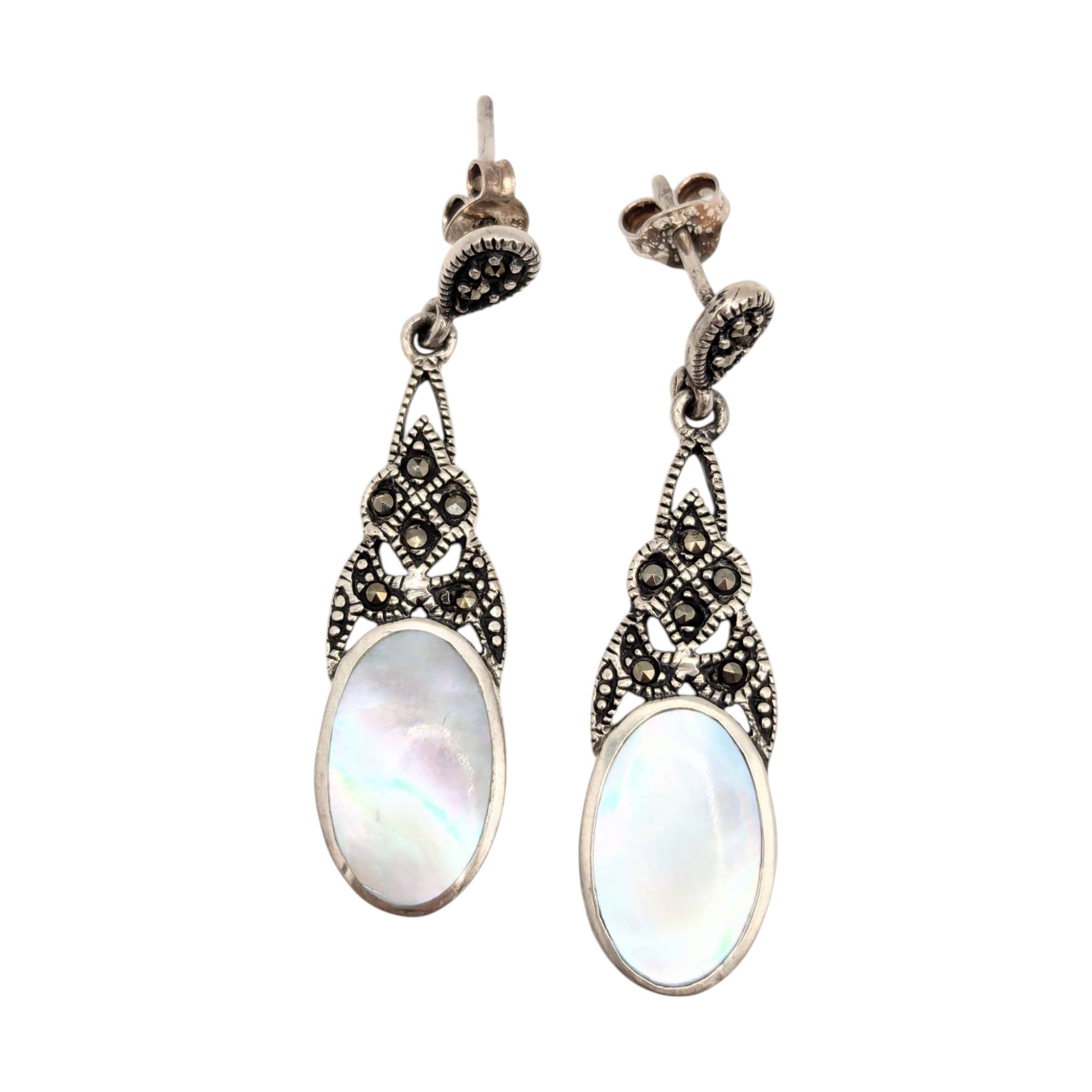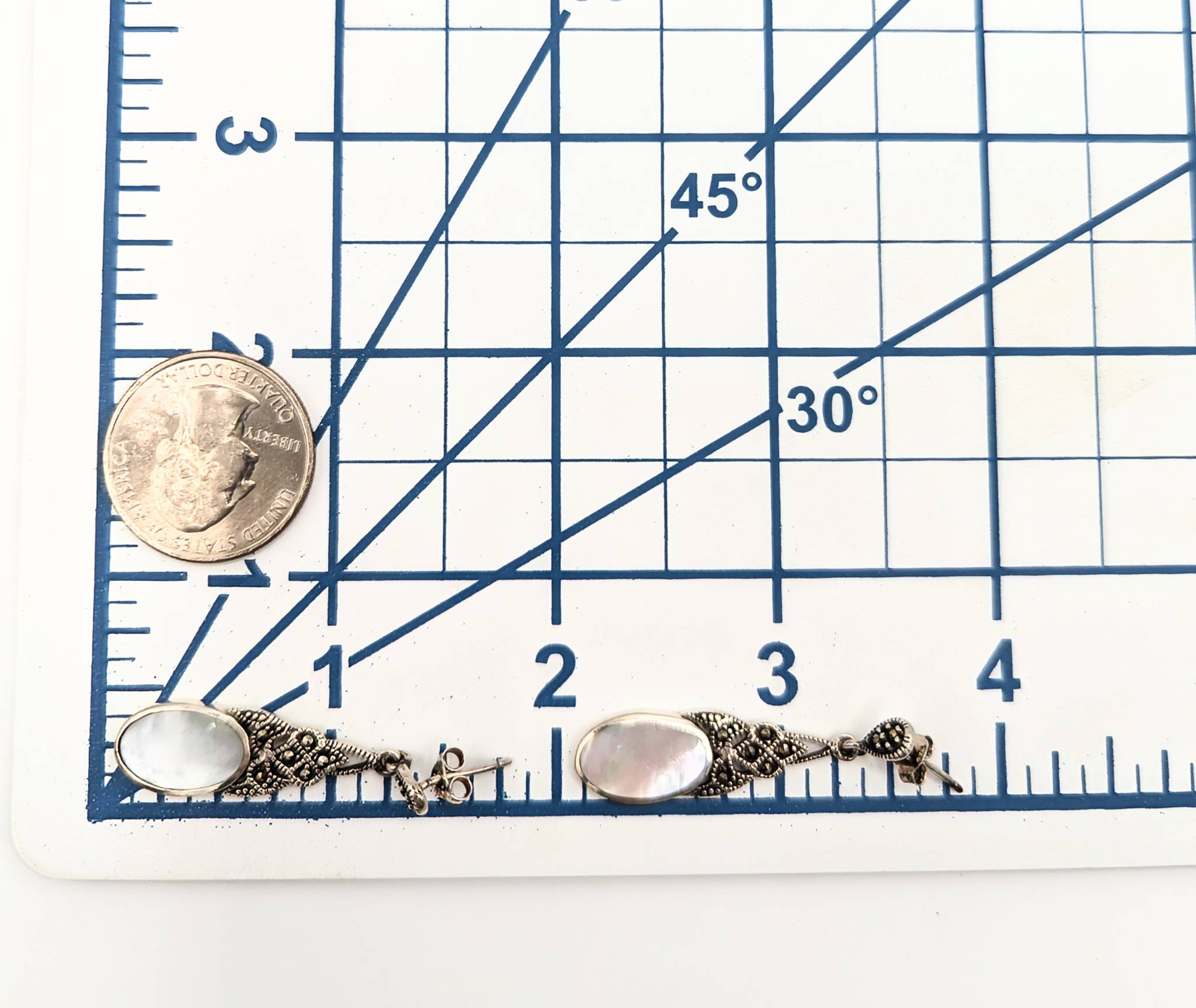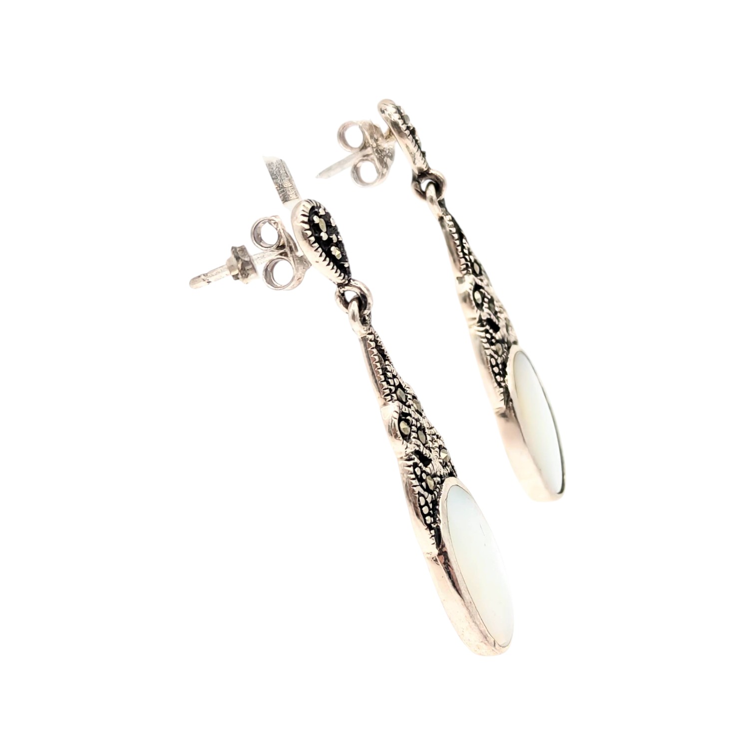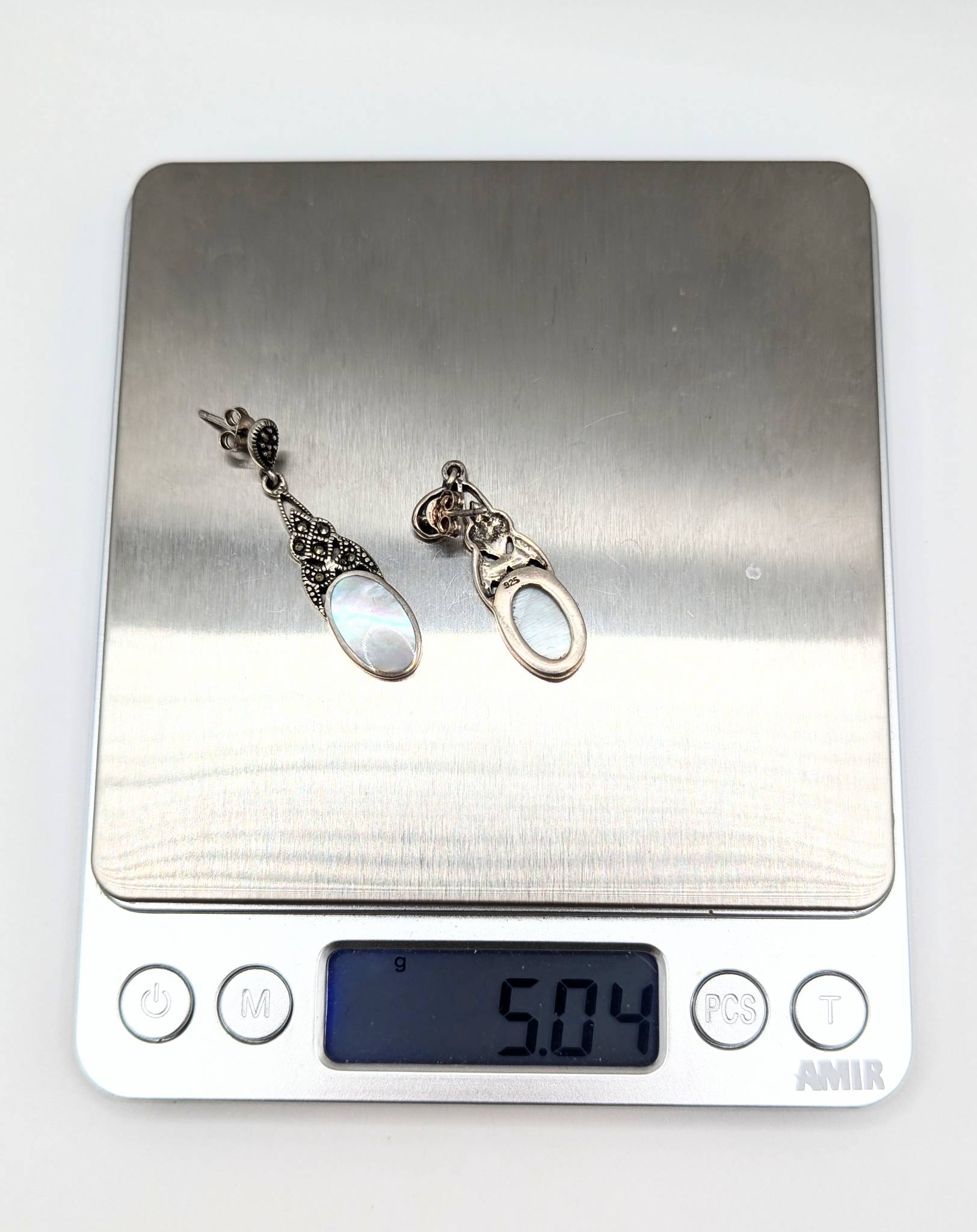 Sterling Marcasite and Mother of Pearl Dangle Earrings 5g