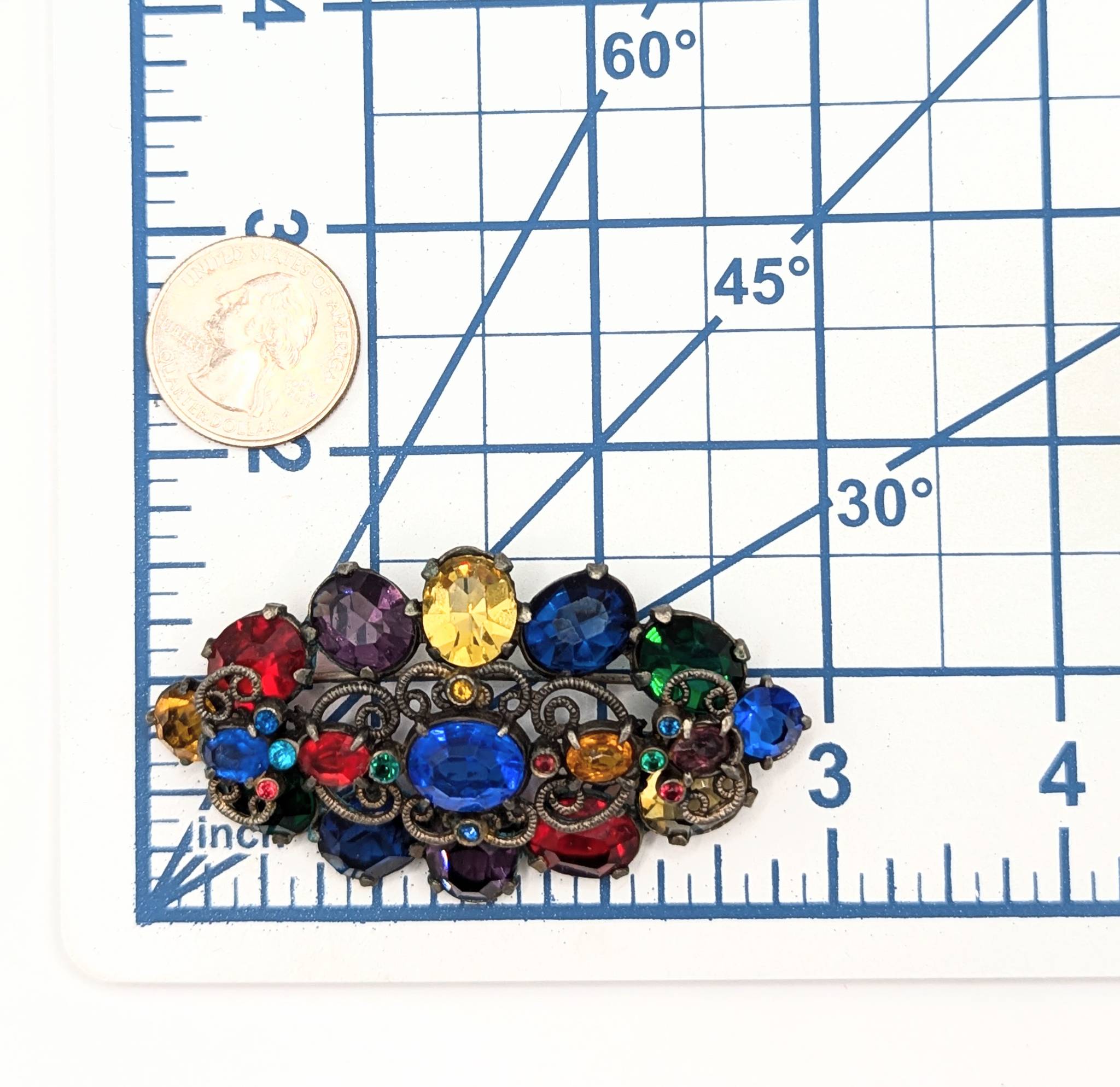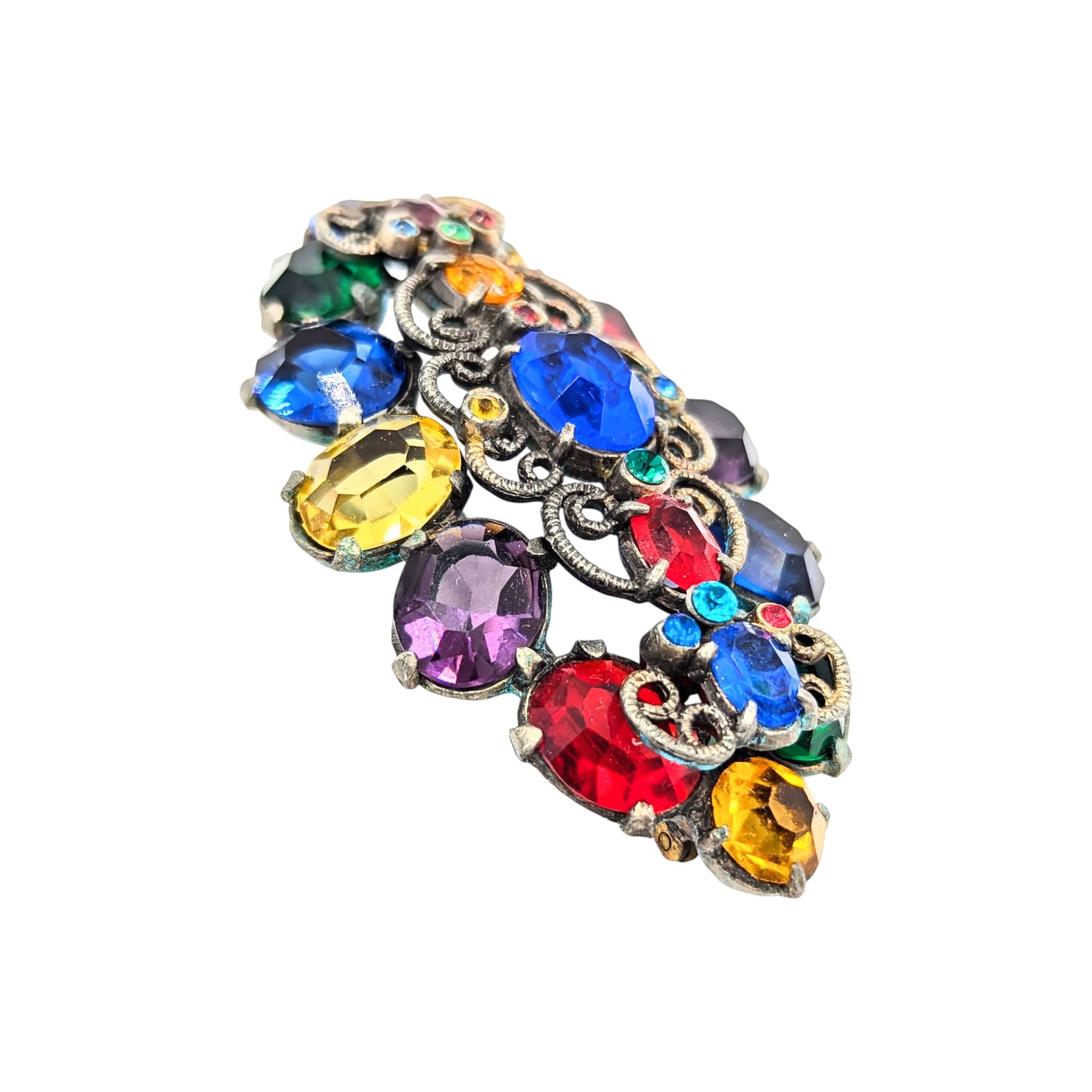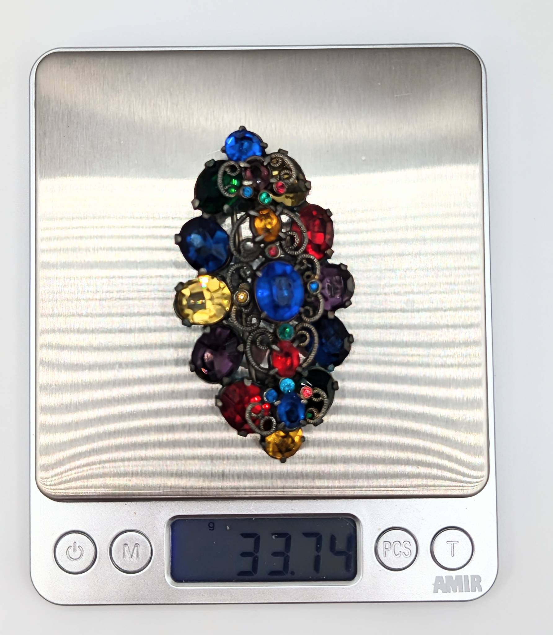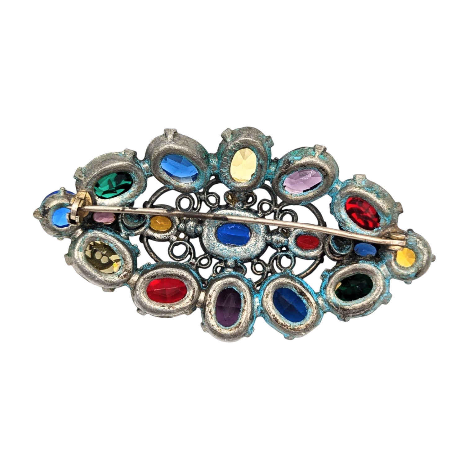 Base Metal with Multicolor Rhinestone Cluster Brooch 33.74g PAT PEND