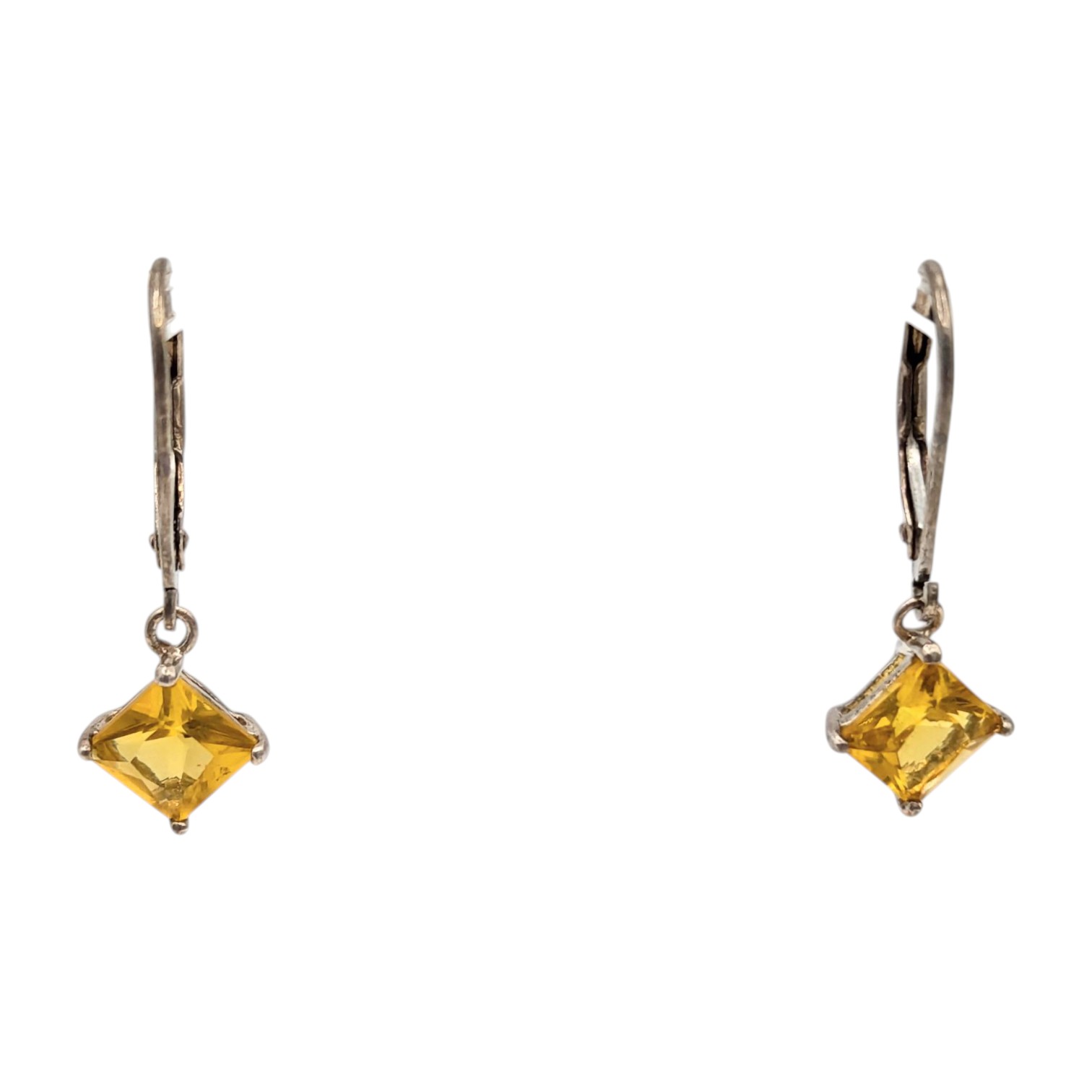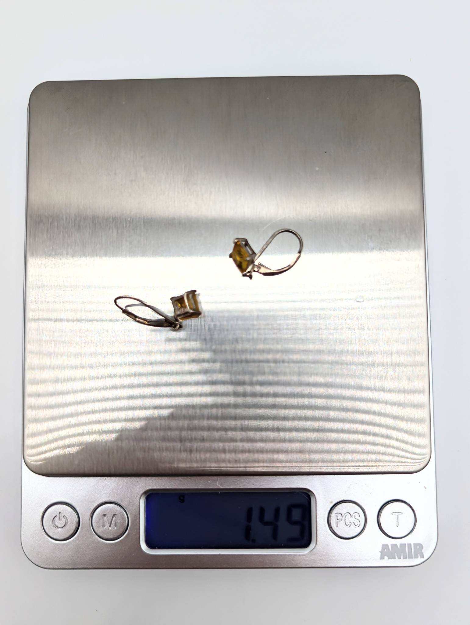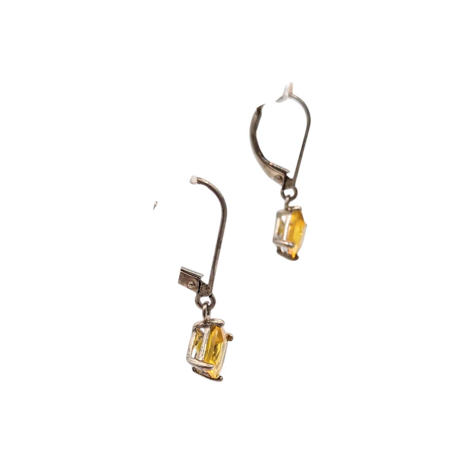 Sterling lever back Earrings with Yellow Rhinestone Accents 1.49g