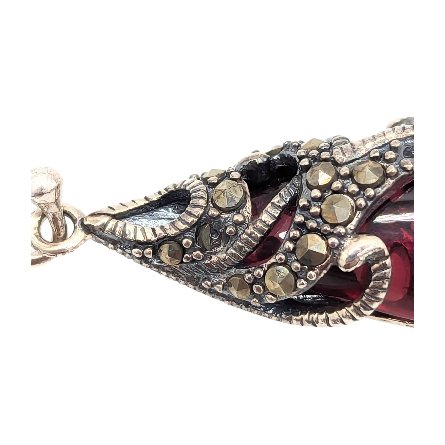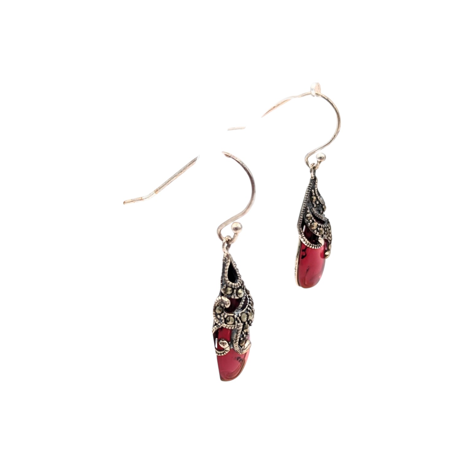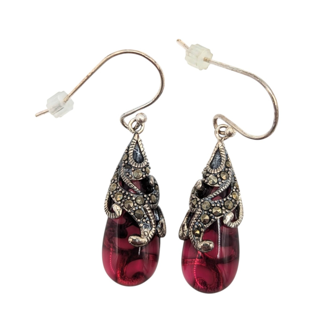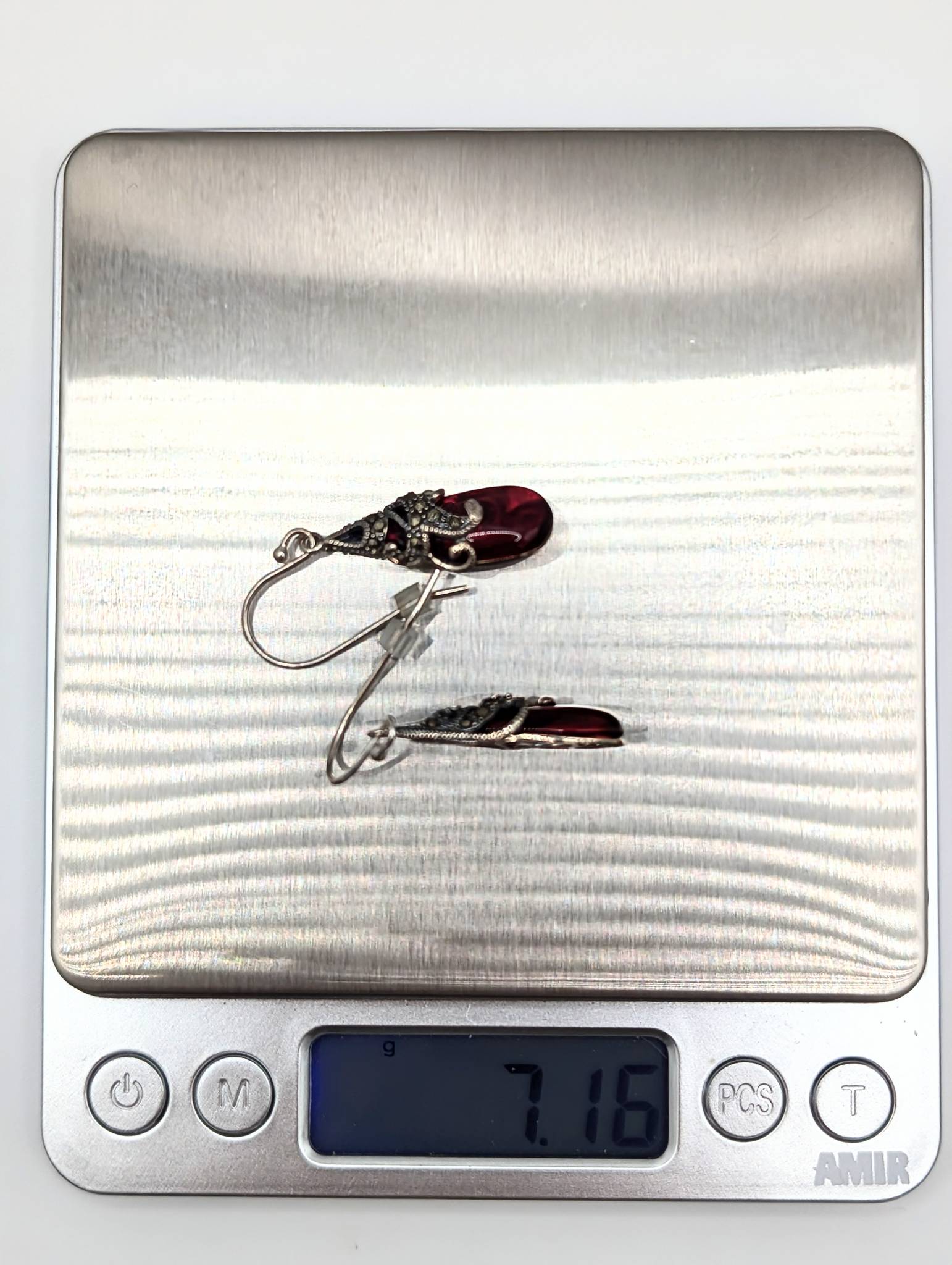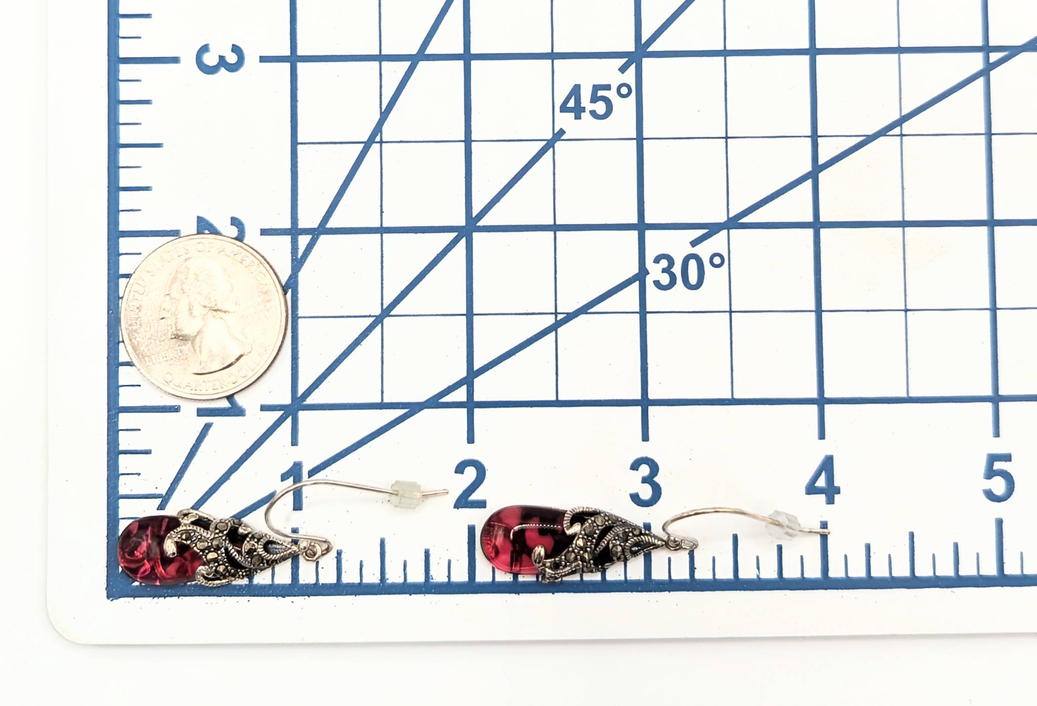 Sterling Marcasite Earrings With Red Stone Accents 7.16g