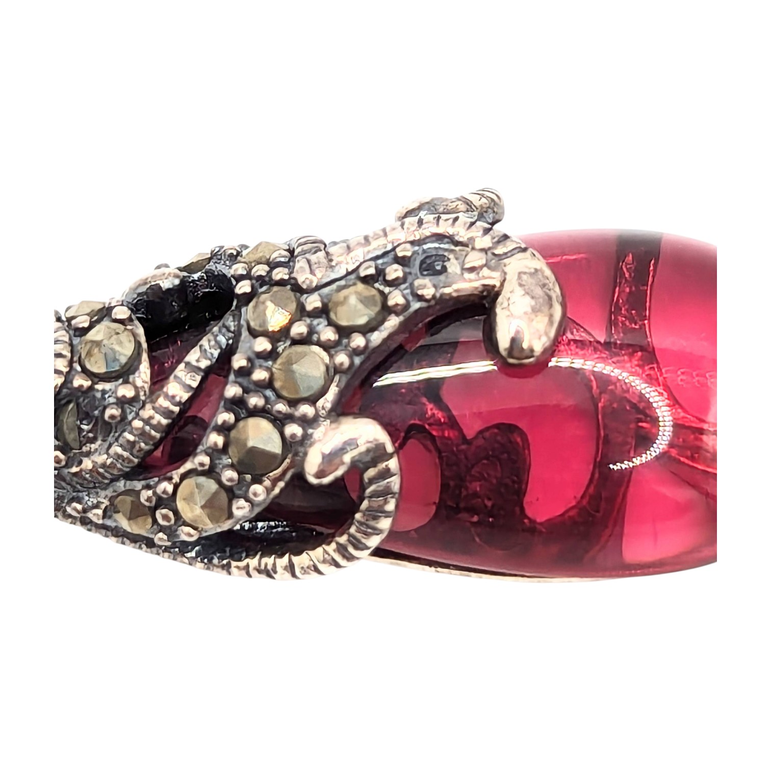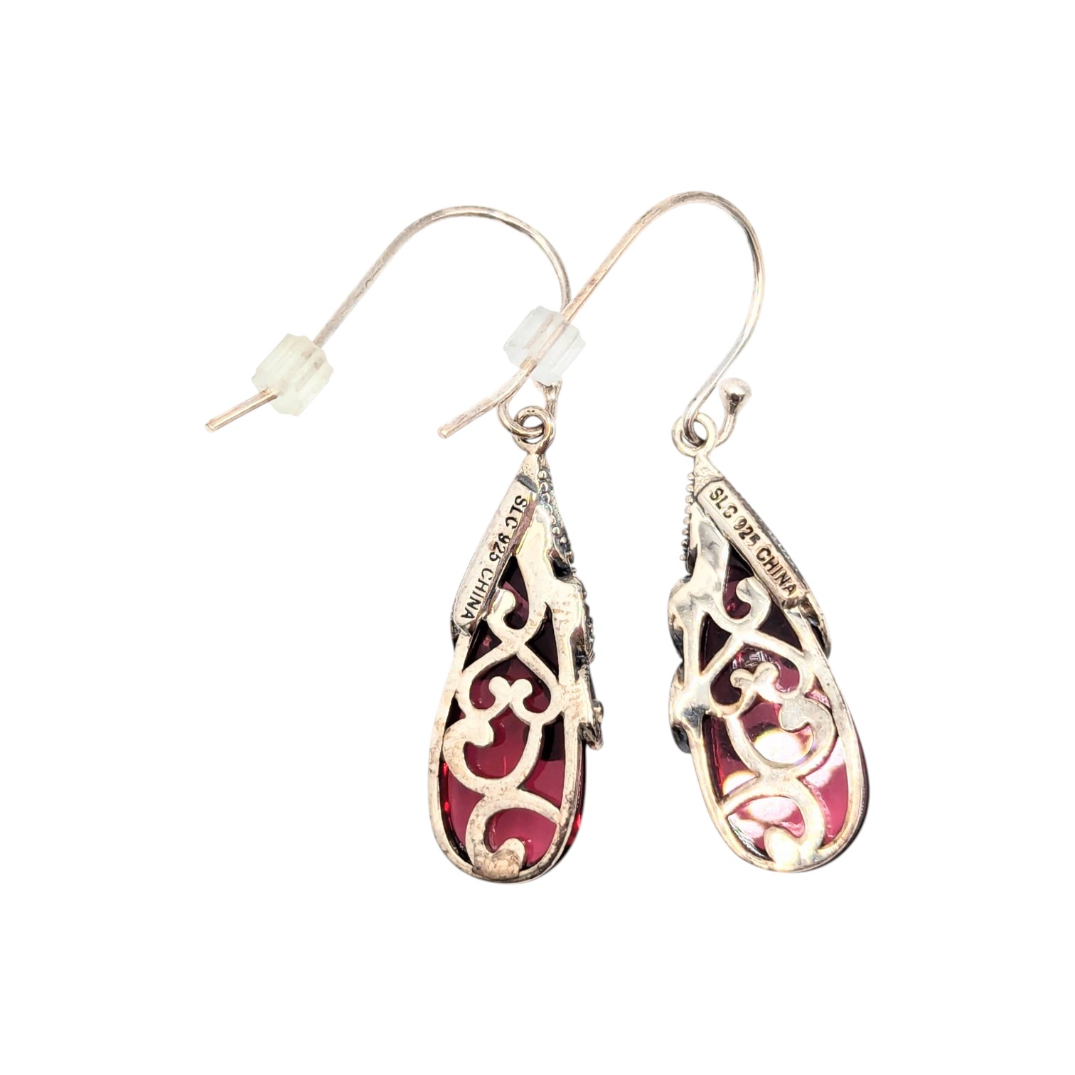 Sterling Marcasite Earrings With Red Stone Accents 7.16g SLC China Missing 2 stones