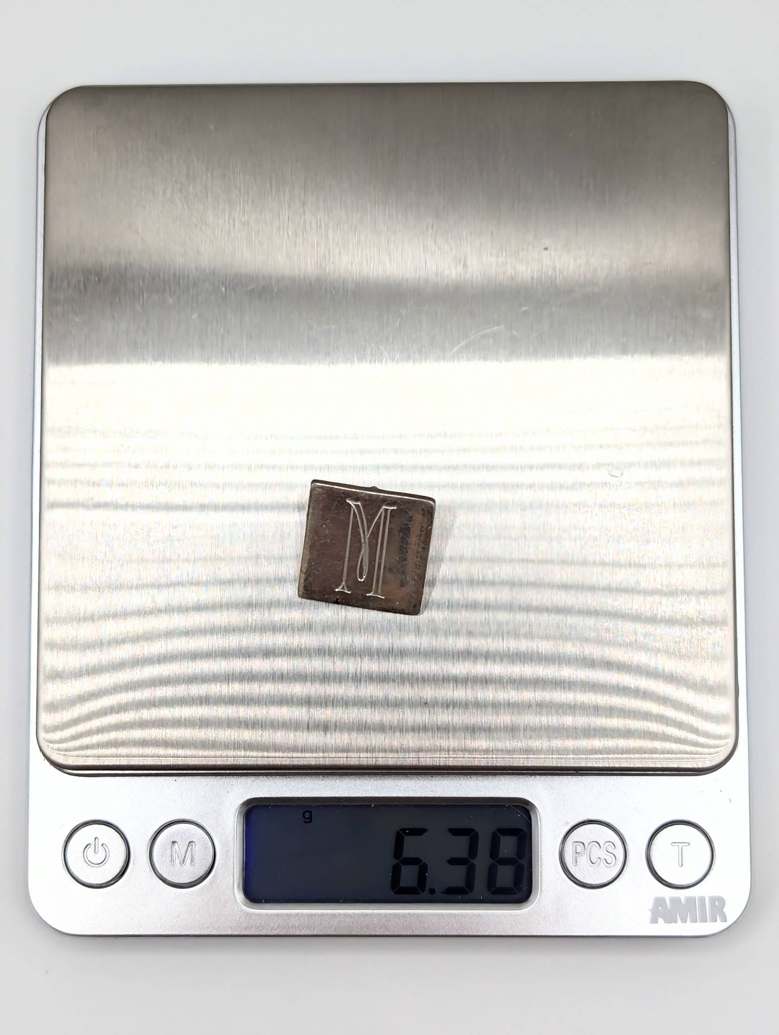 Sterling Square Pendant with ‘M’ Engraving 6.38g