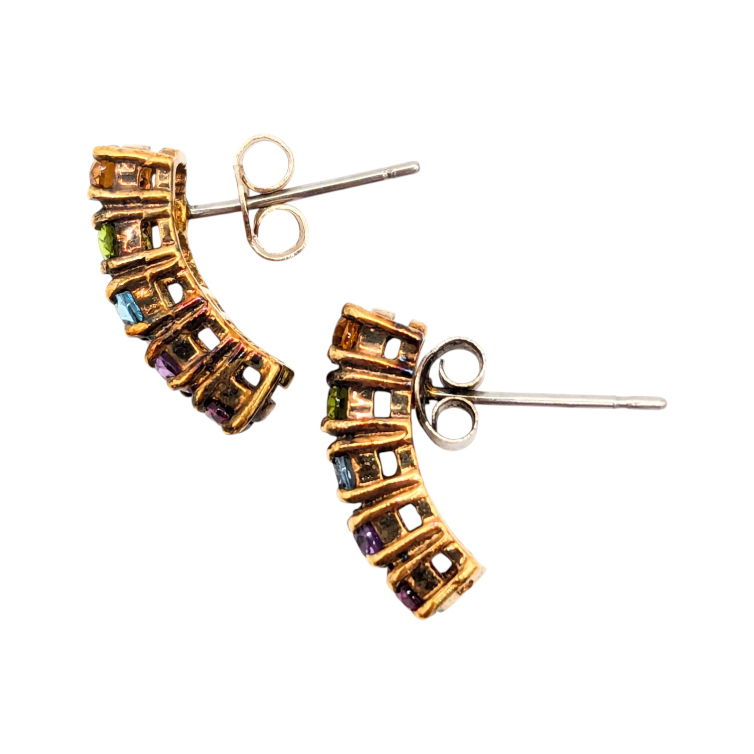 Gold-Over Sterling Earrings With Citrine, piriote, topaz, Amethyst, garnet2.74g