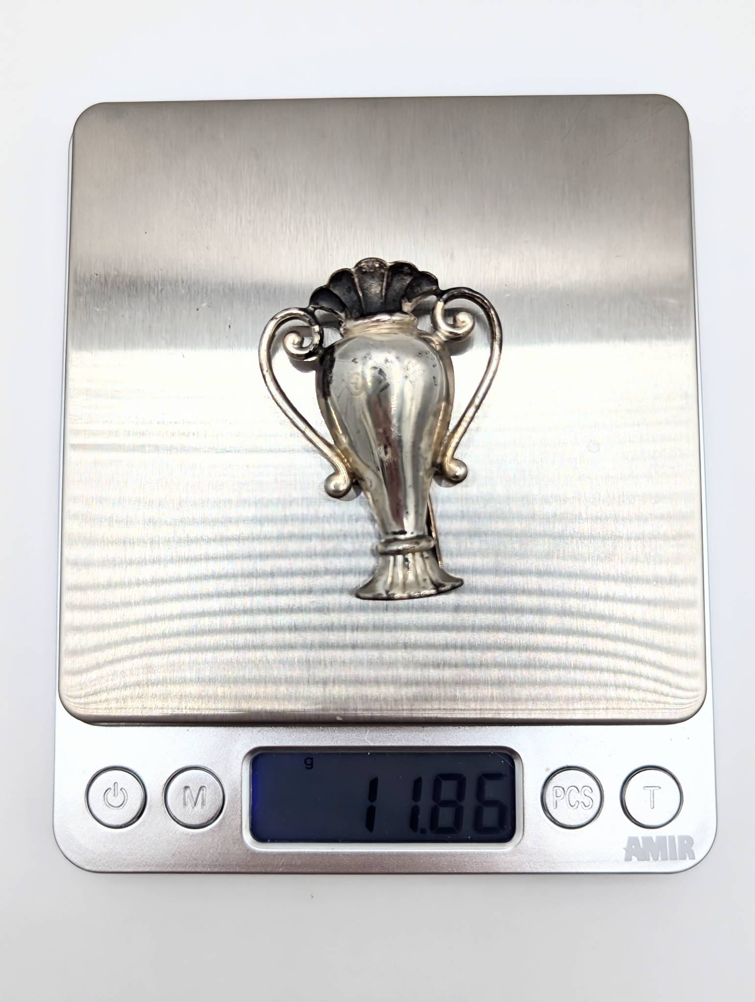 Sterling Trophy-Shaped Brooch Pin with Scroll Handles 11.86g