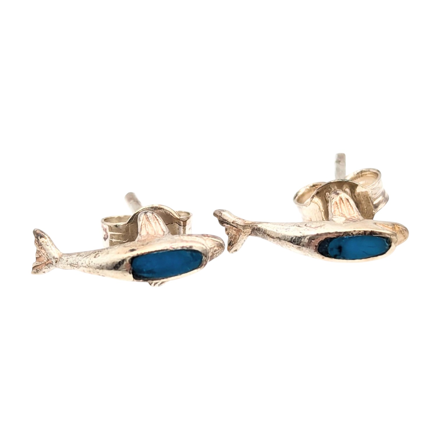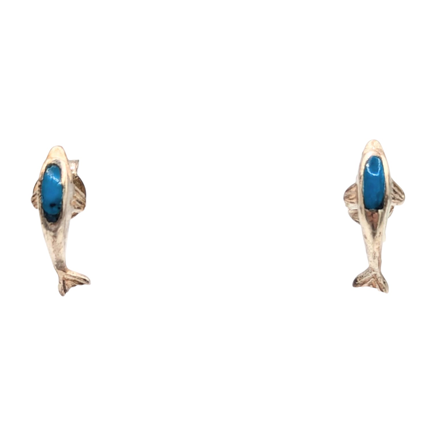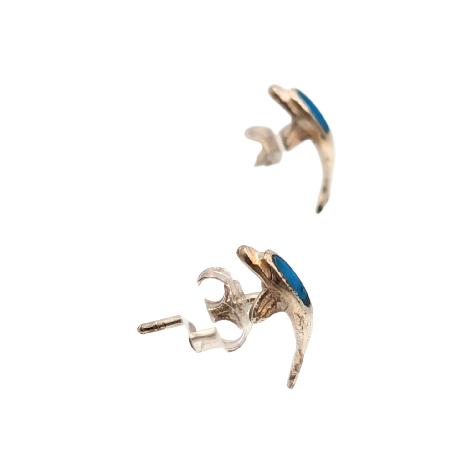 Sterling Dolphin Earrings with Blue Stone Inlays .97g