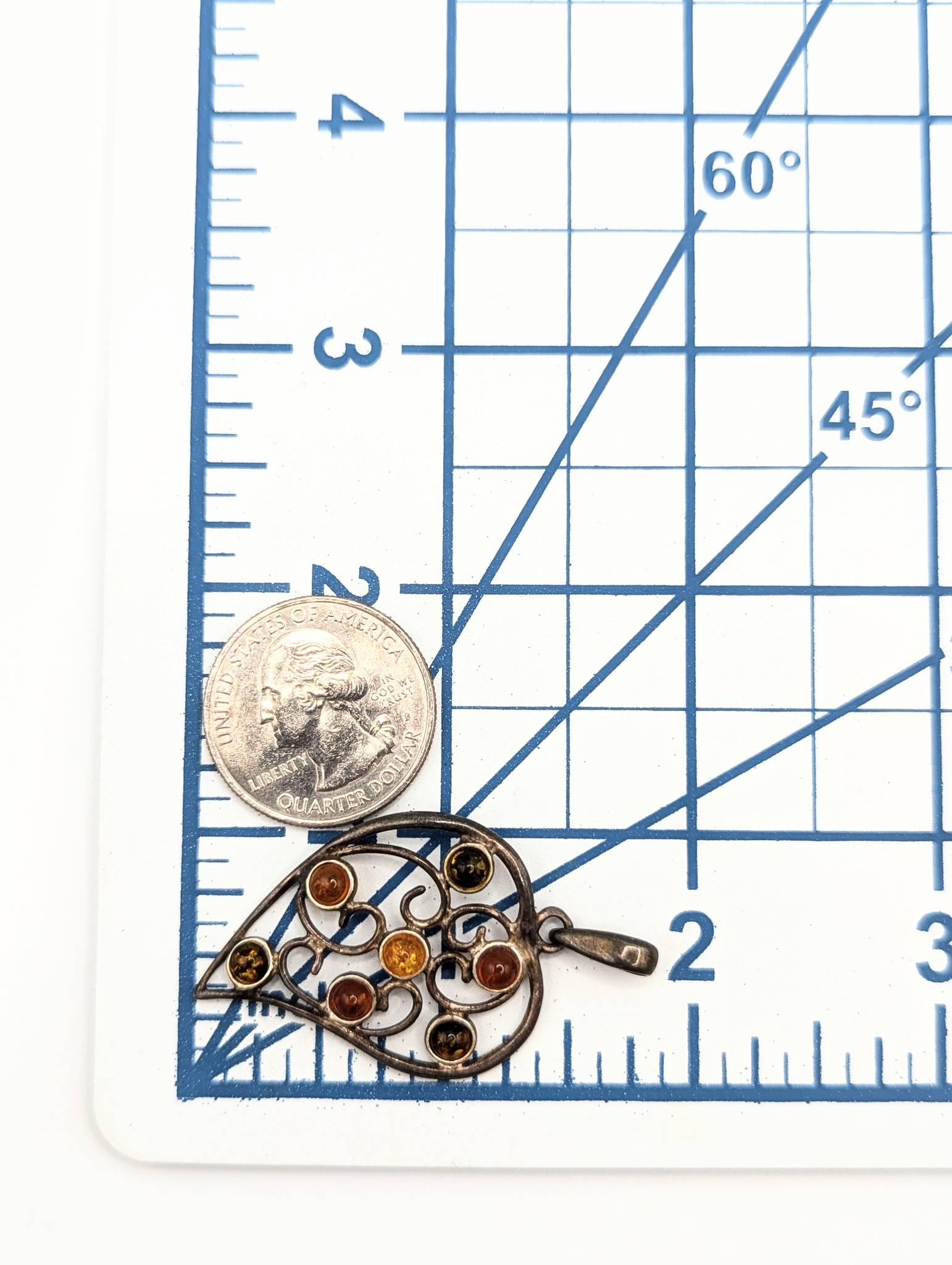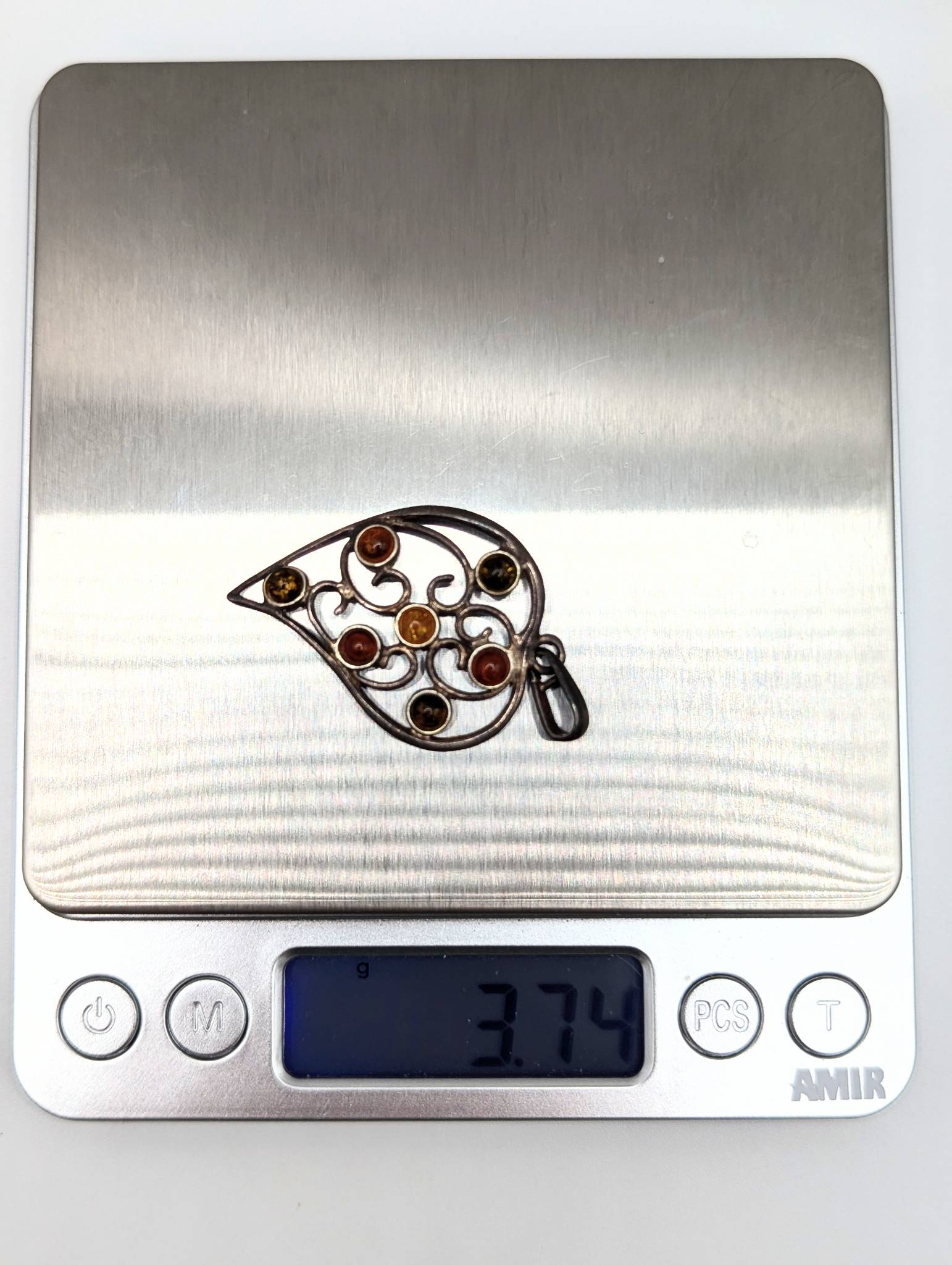 Sterling Amber Leaf Pendant 3.74g