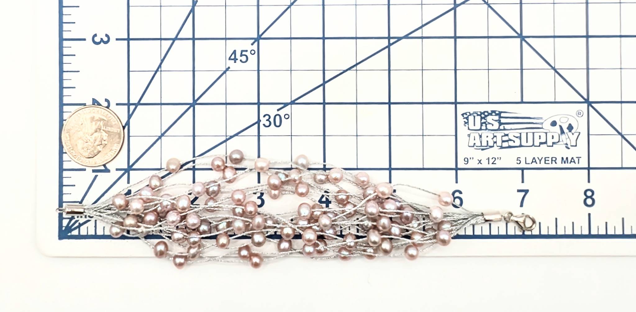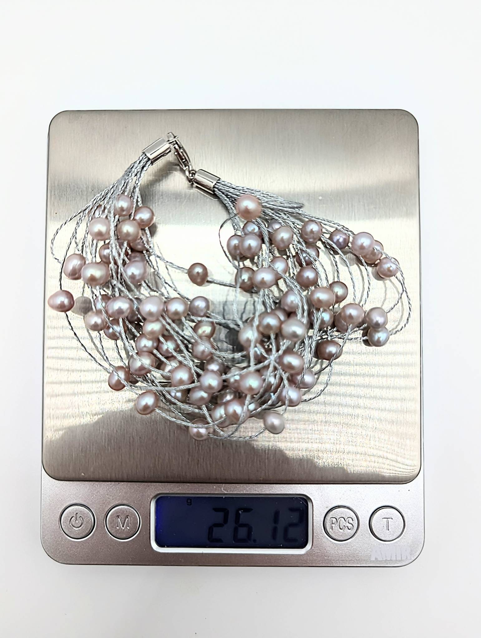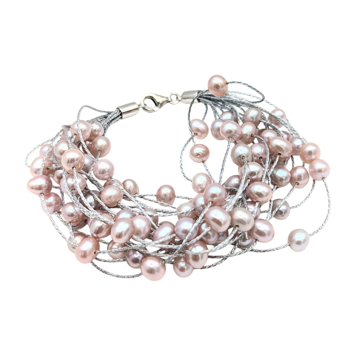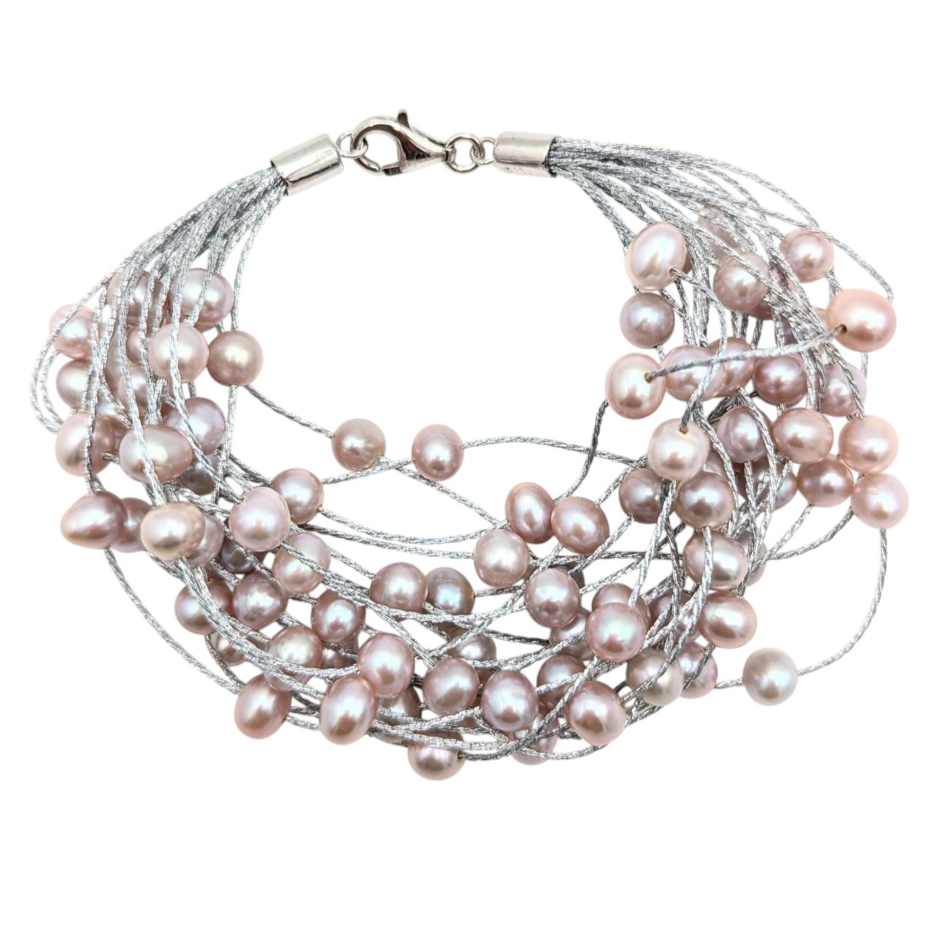 Sterling Multi-Strand pink Freshwater Pearl Statement Bracelet 26.12g