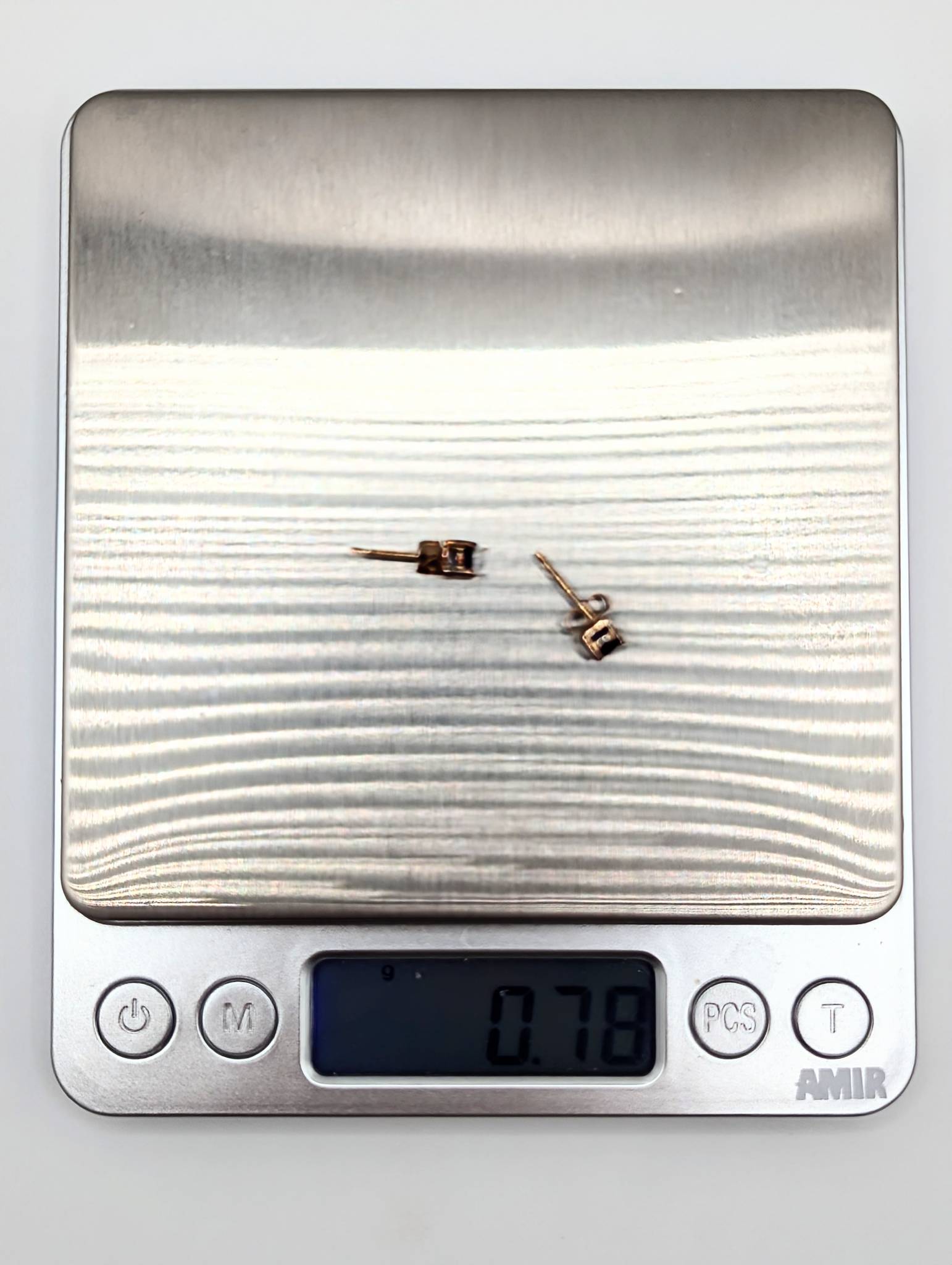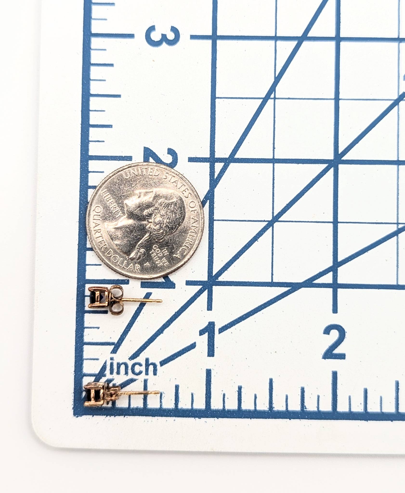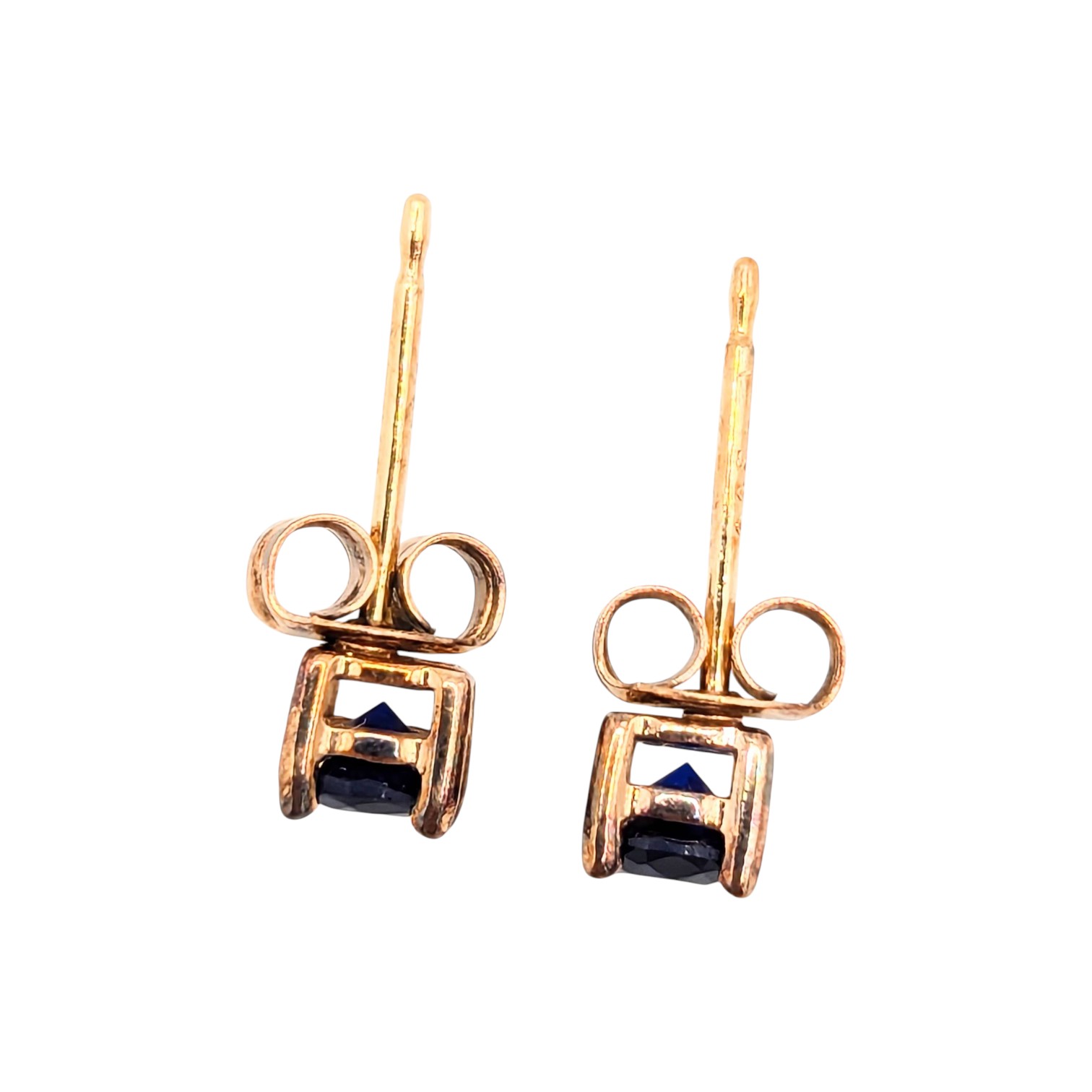 Sterling Gold Over Blue Rhinestone Stud Earrings .76g WM