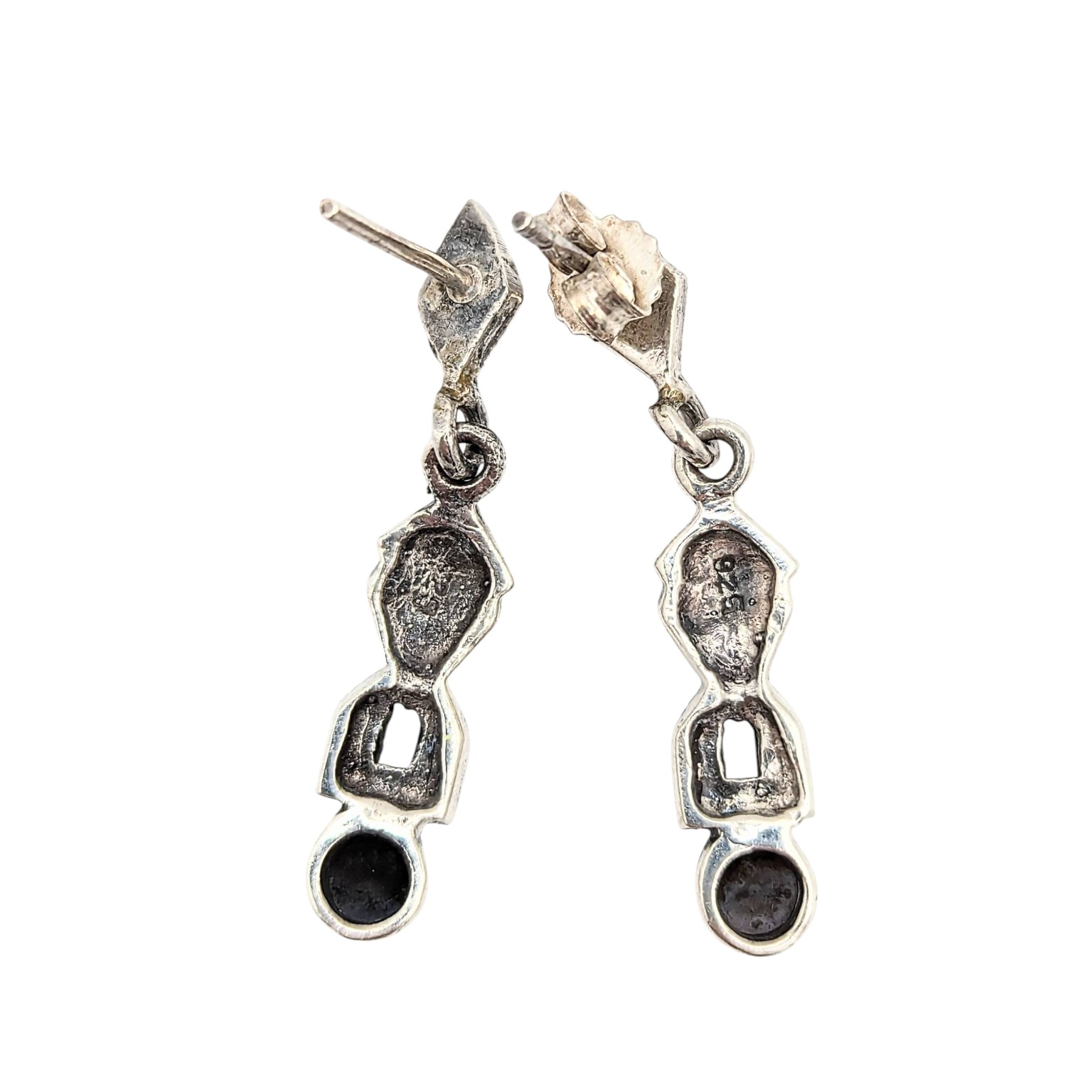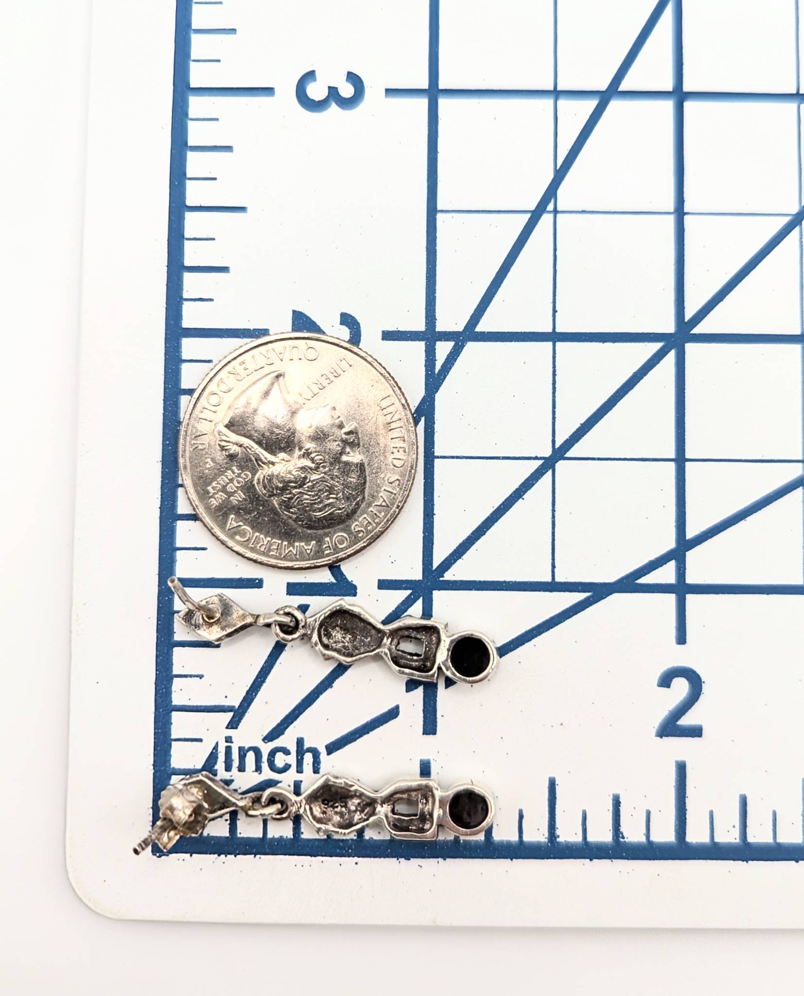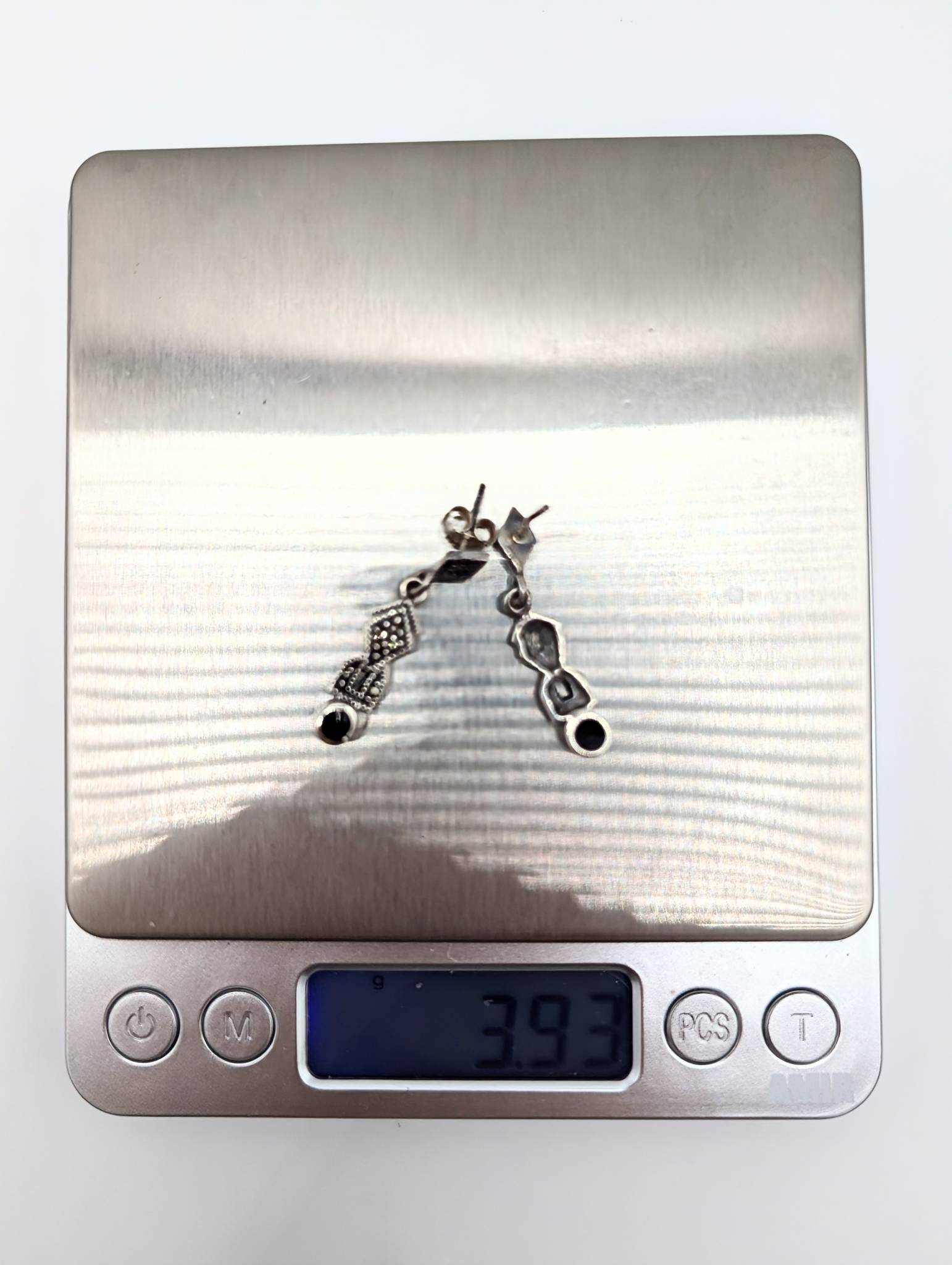 Sterling Marcasite and Black Onyx Drop Earrings 3.93g