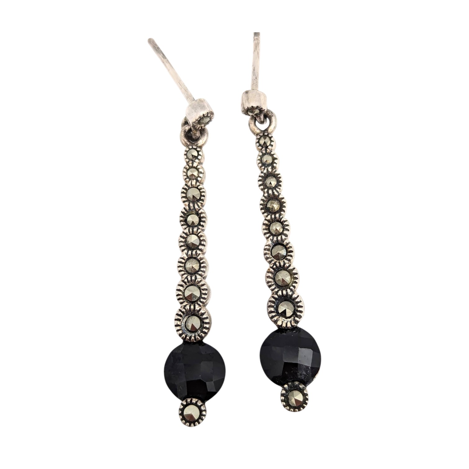 Sterling NF Marcasite drop Earrings 5.9g Thailand