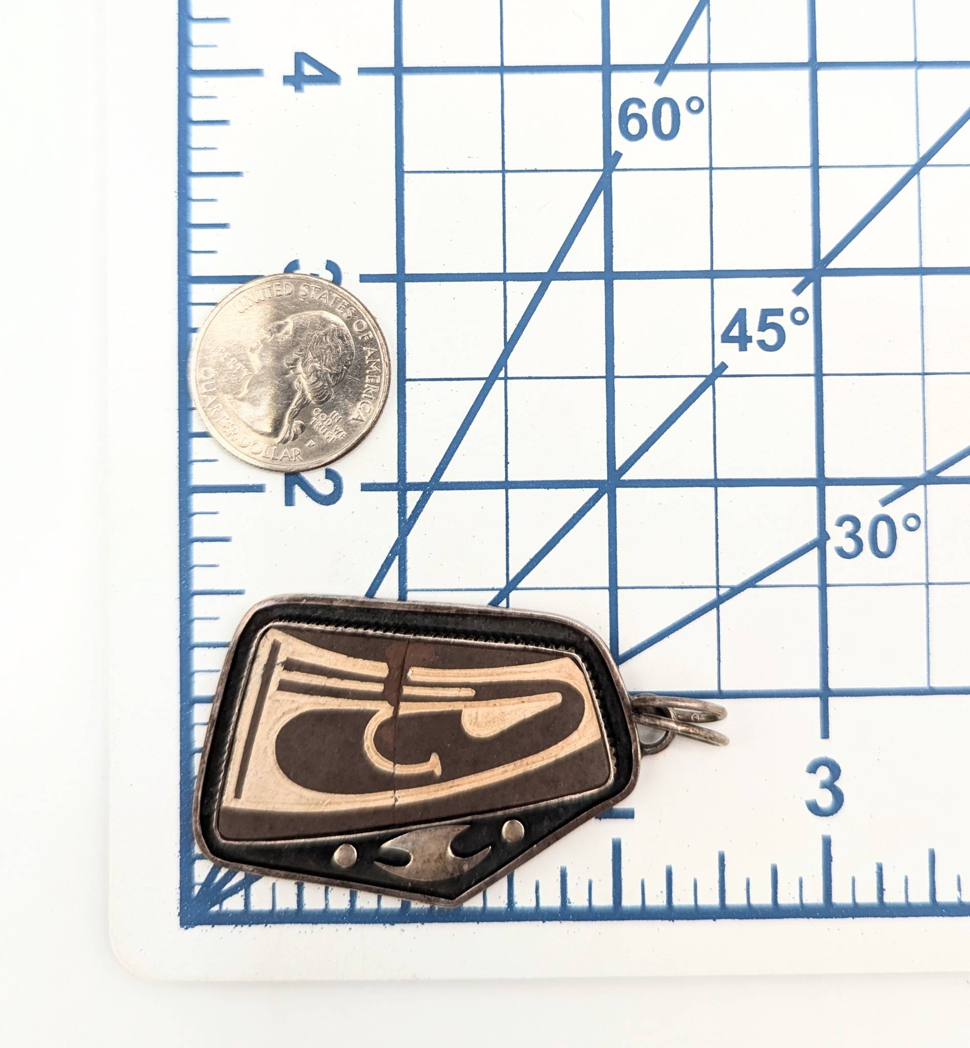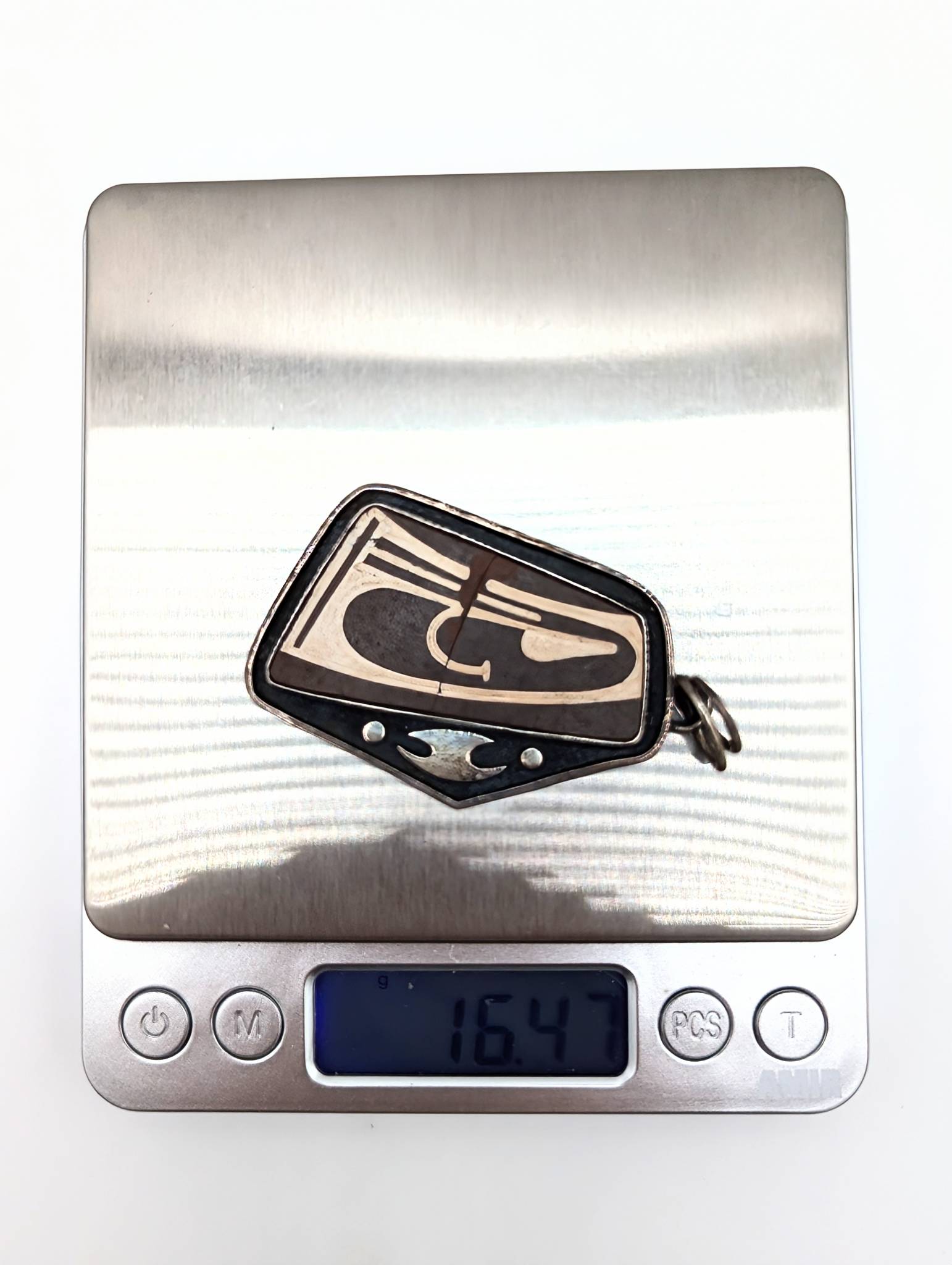 Sterling and Inlaid Pendant 16.47g Mo, ATB .95 with Broken Middle