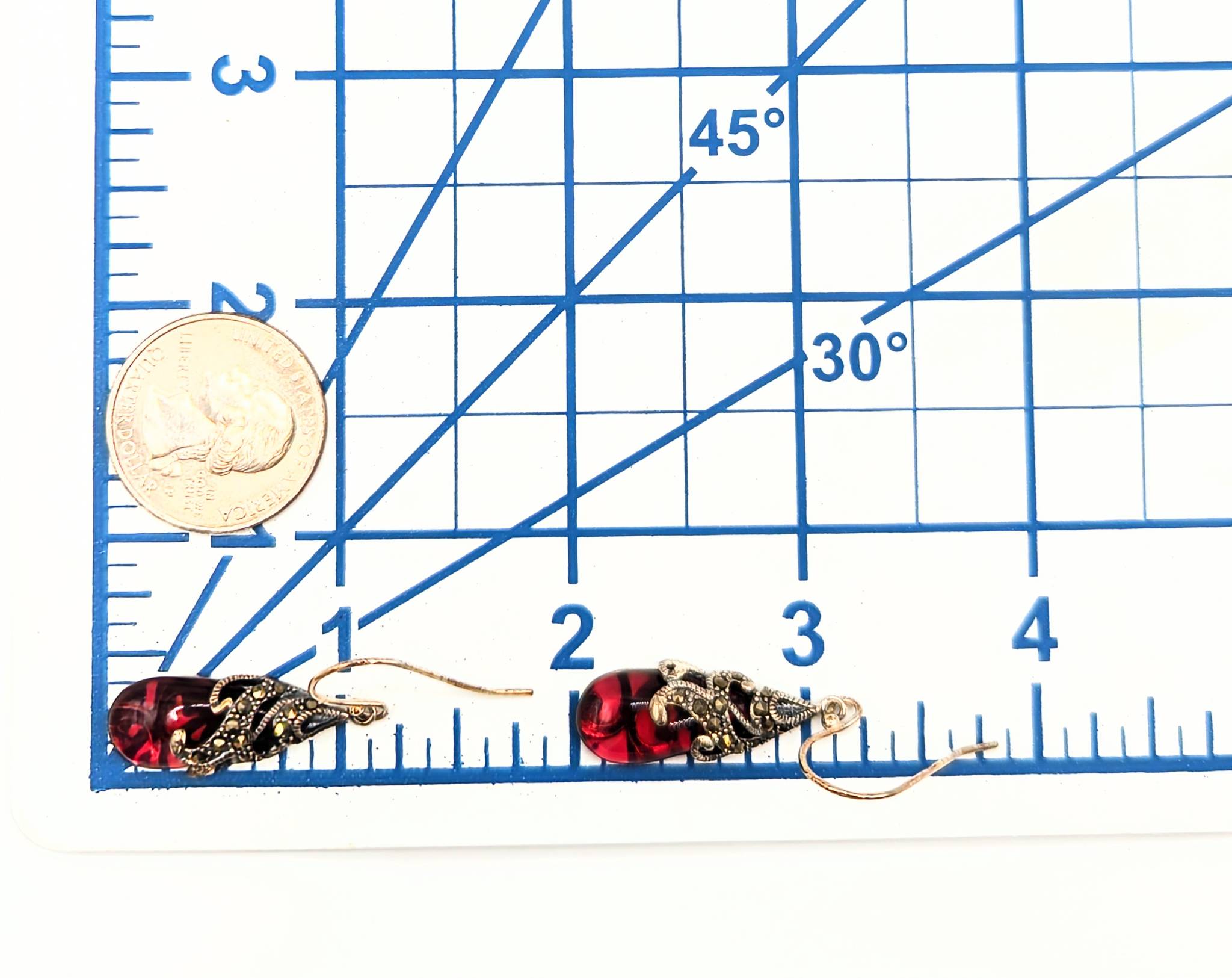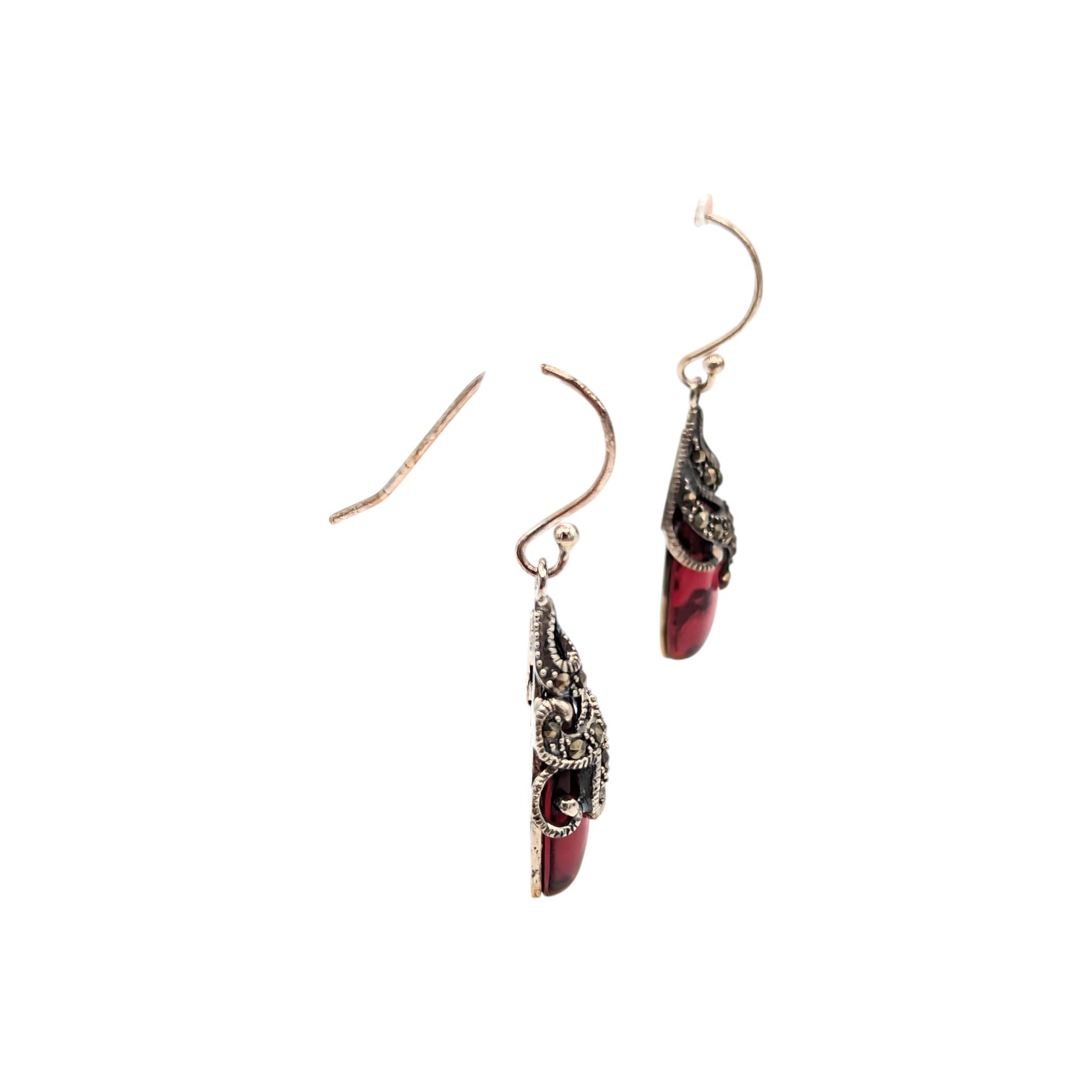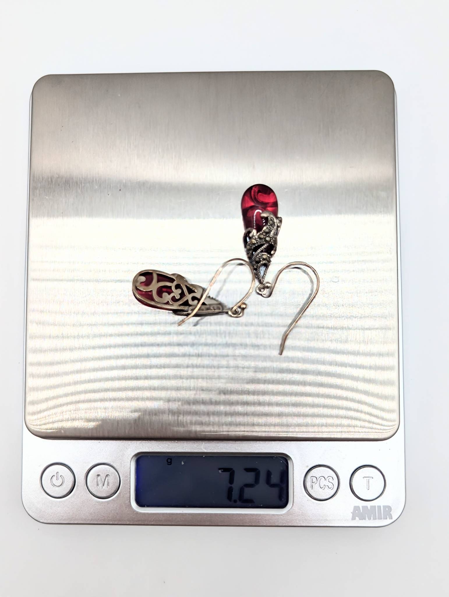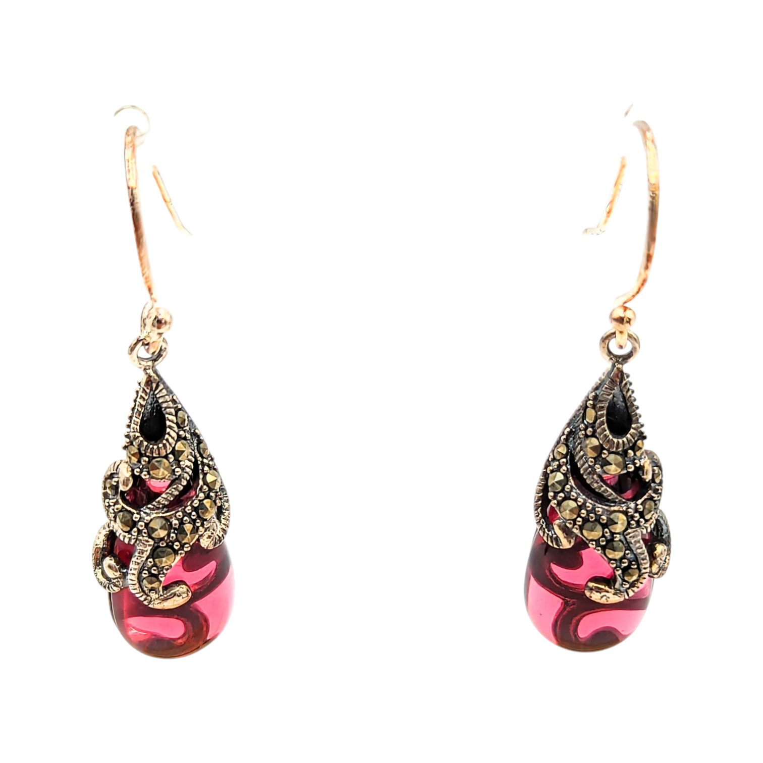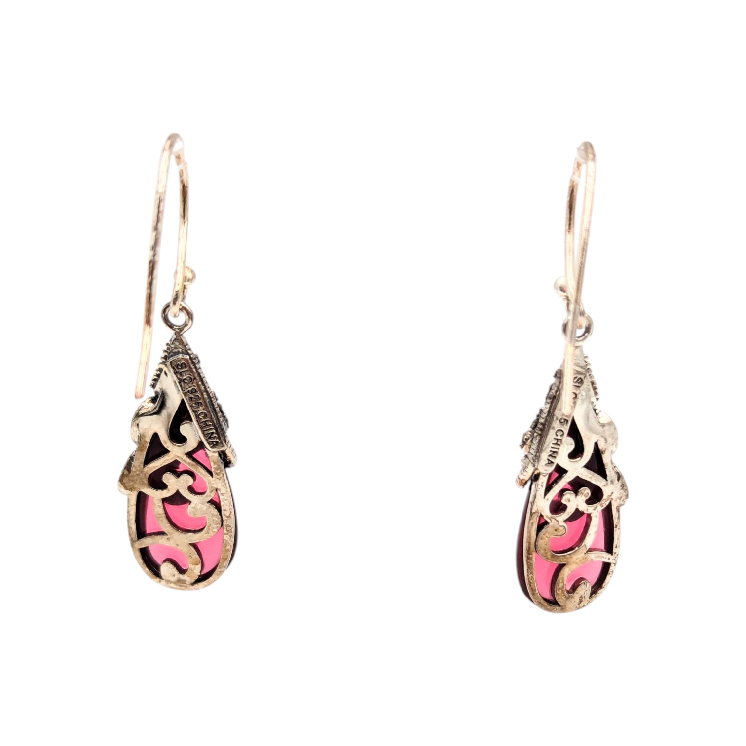 Sterling Marcasite wine colored Rhinestone Dangle Earrings 7.24g SLC China