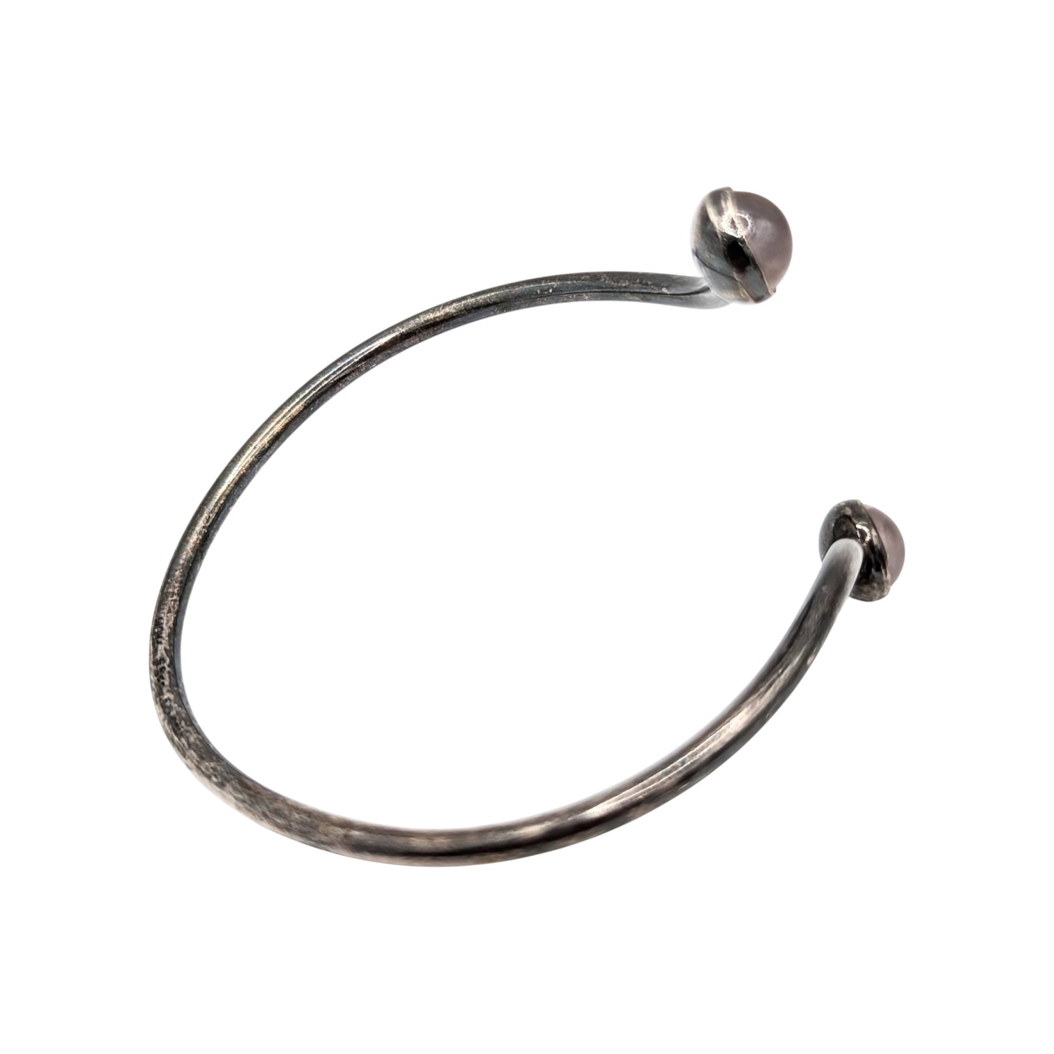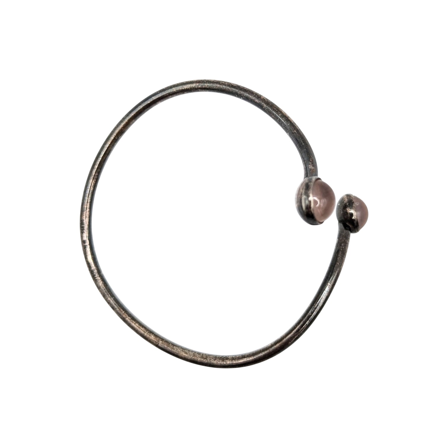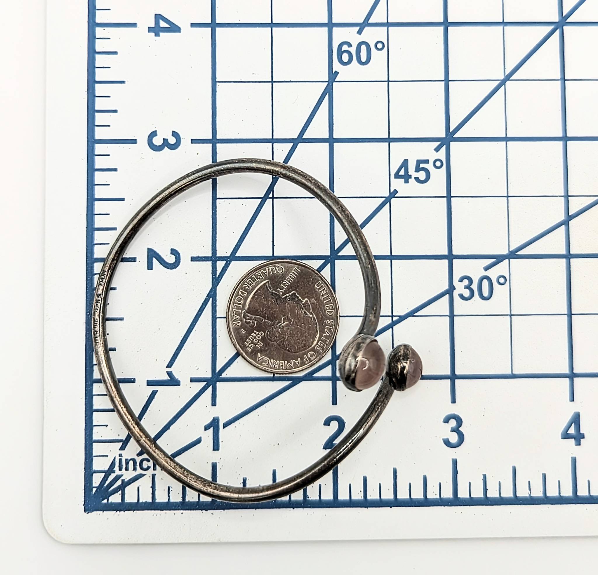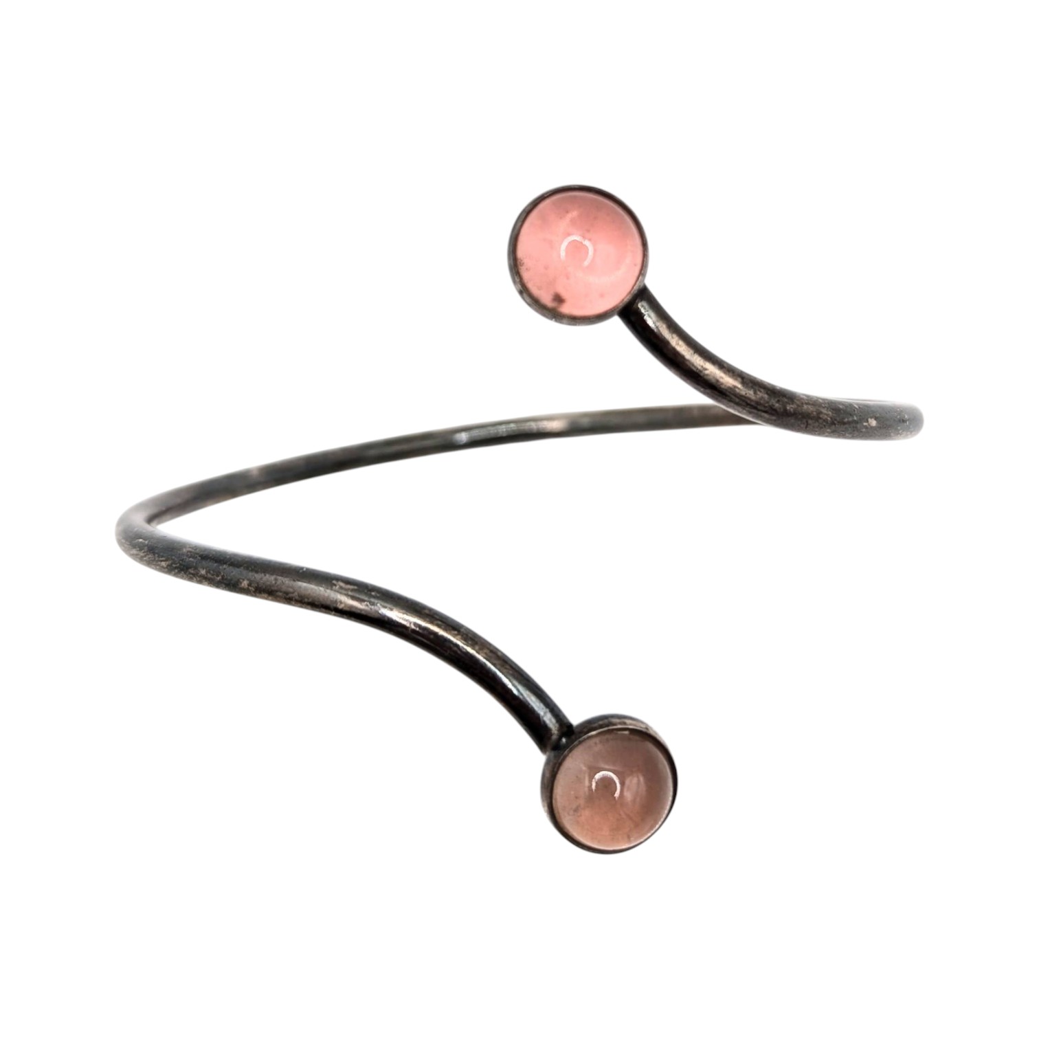 Sterling Open Cuff Bracelet with Pink Spinial Accents 17.35g
