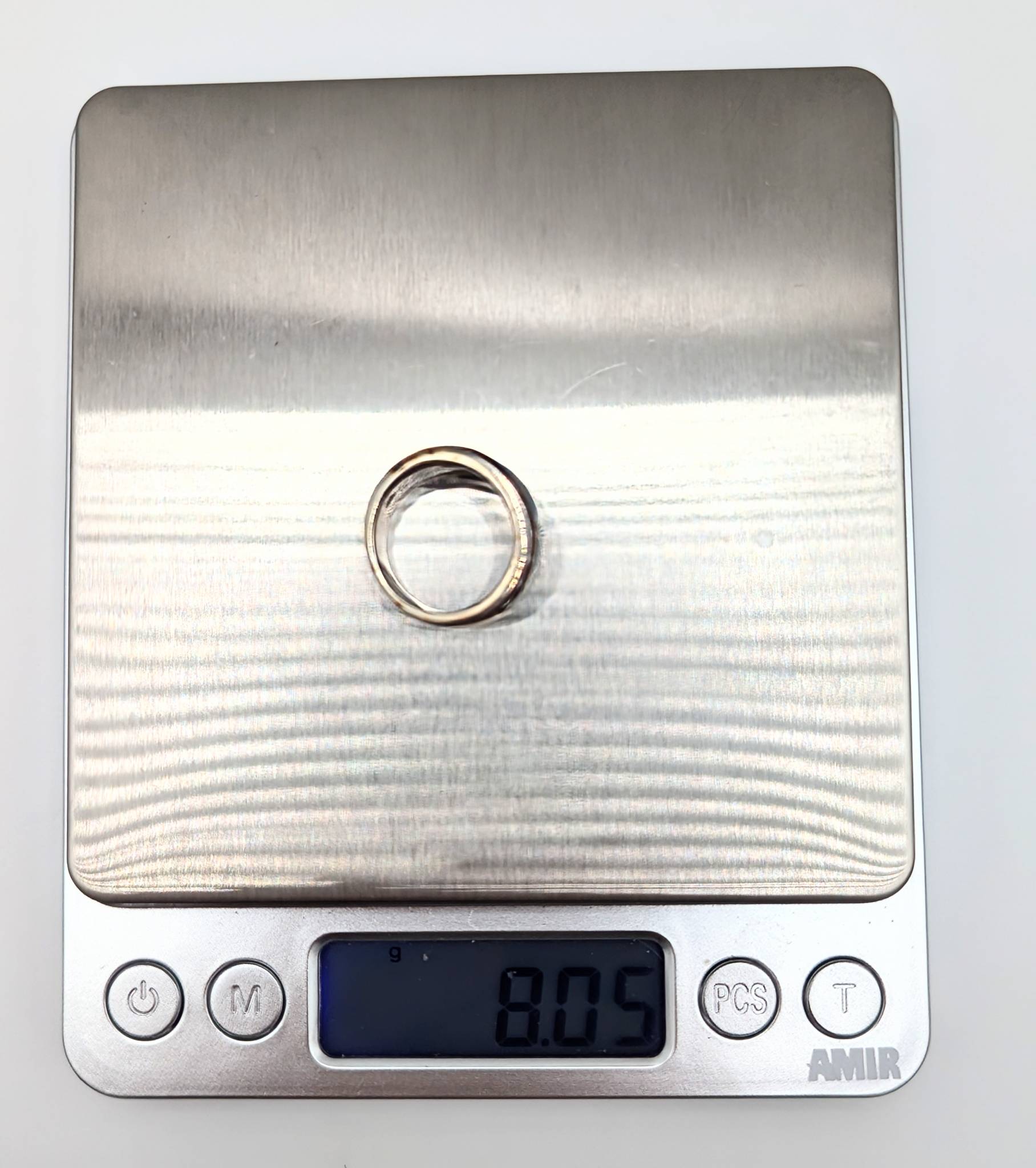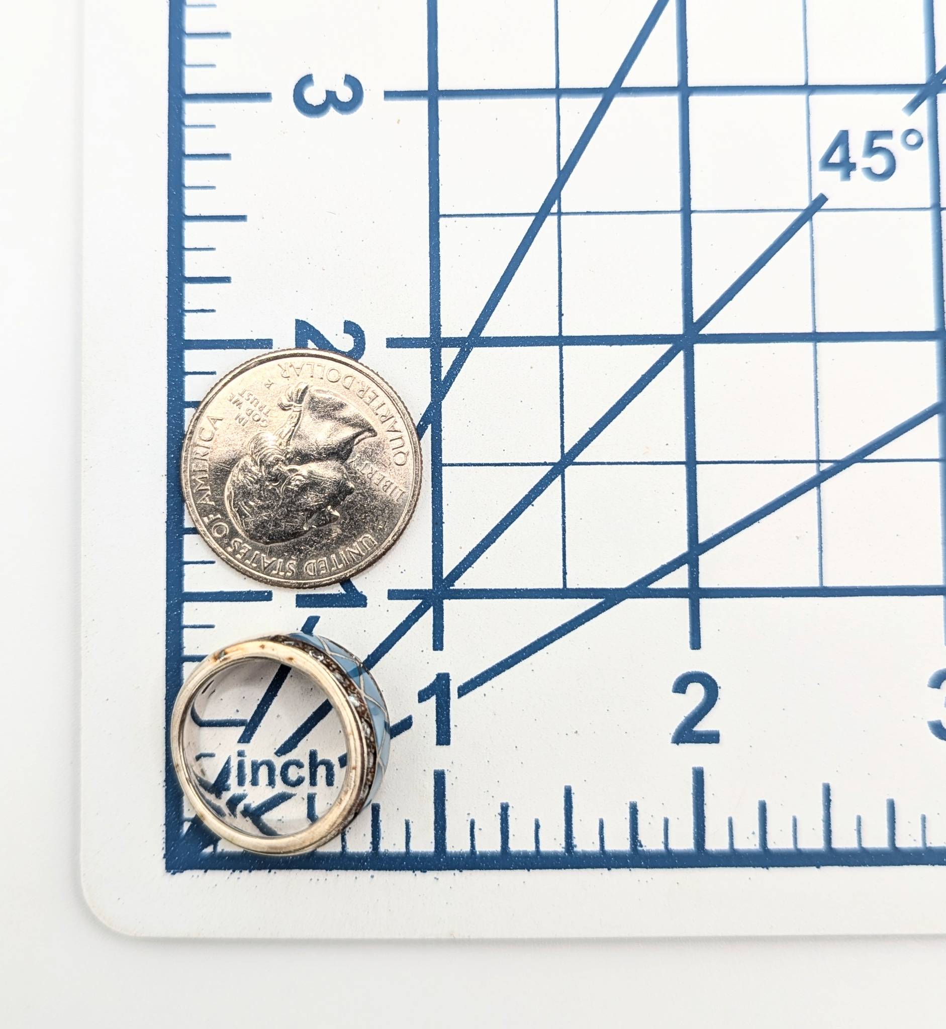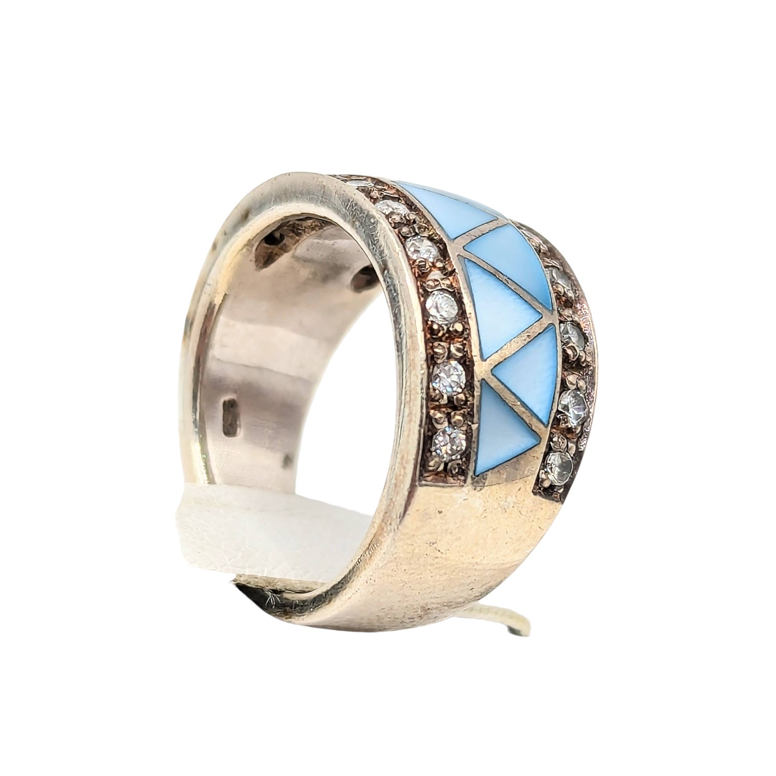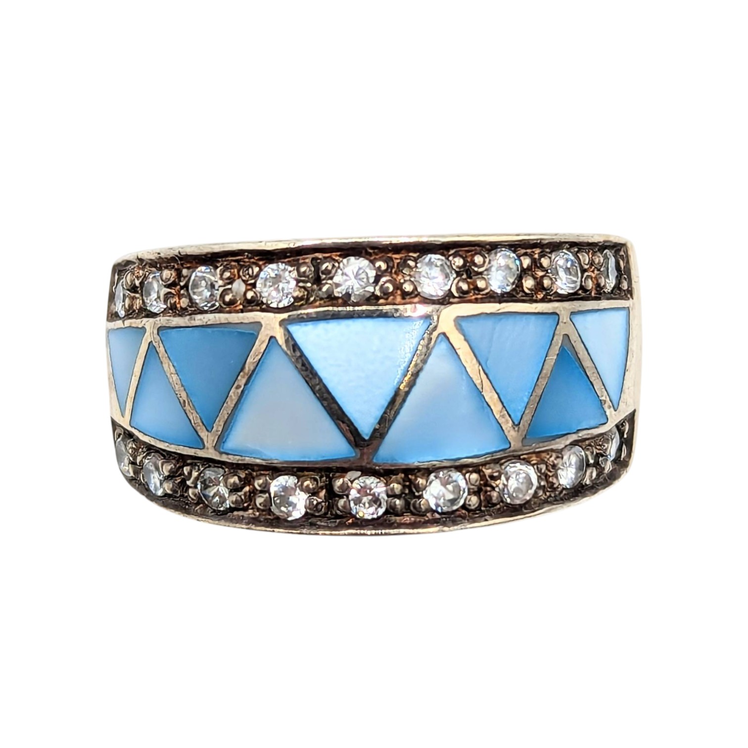Sterling Size 5.5 Clear Rhinestone with Blue Enamel Inlay Ring 8.05g