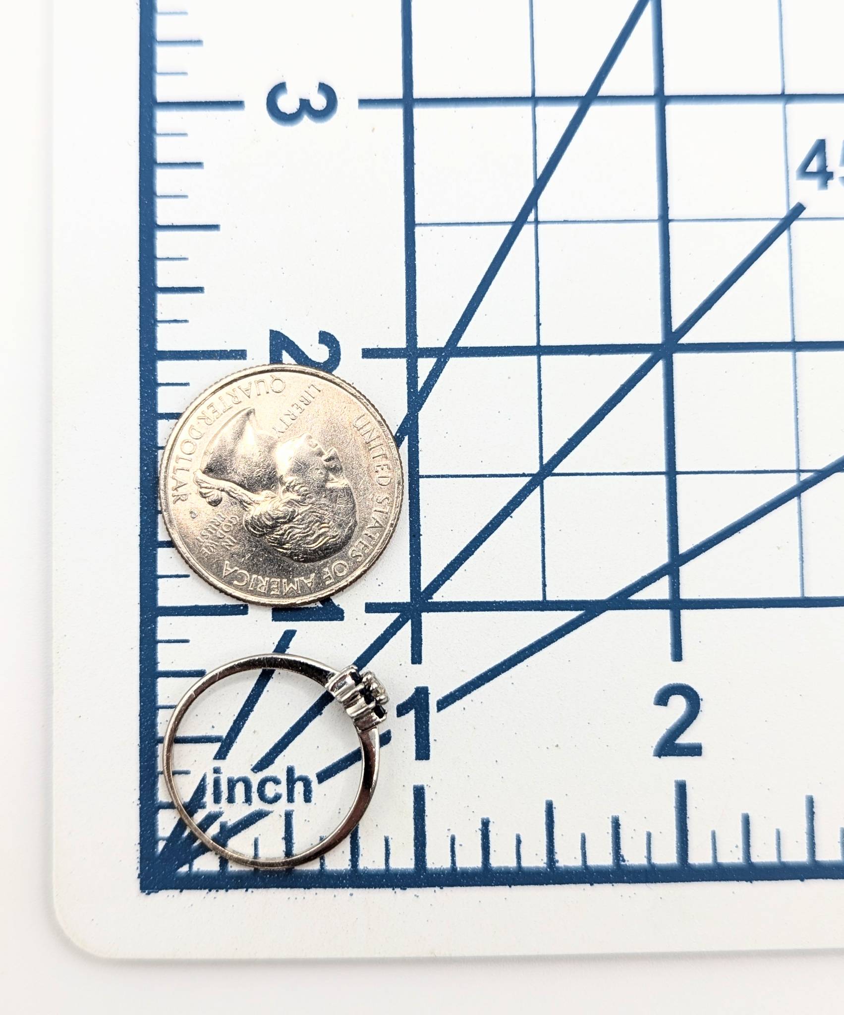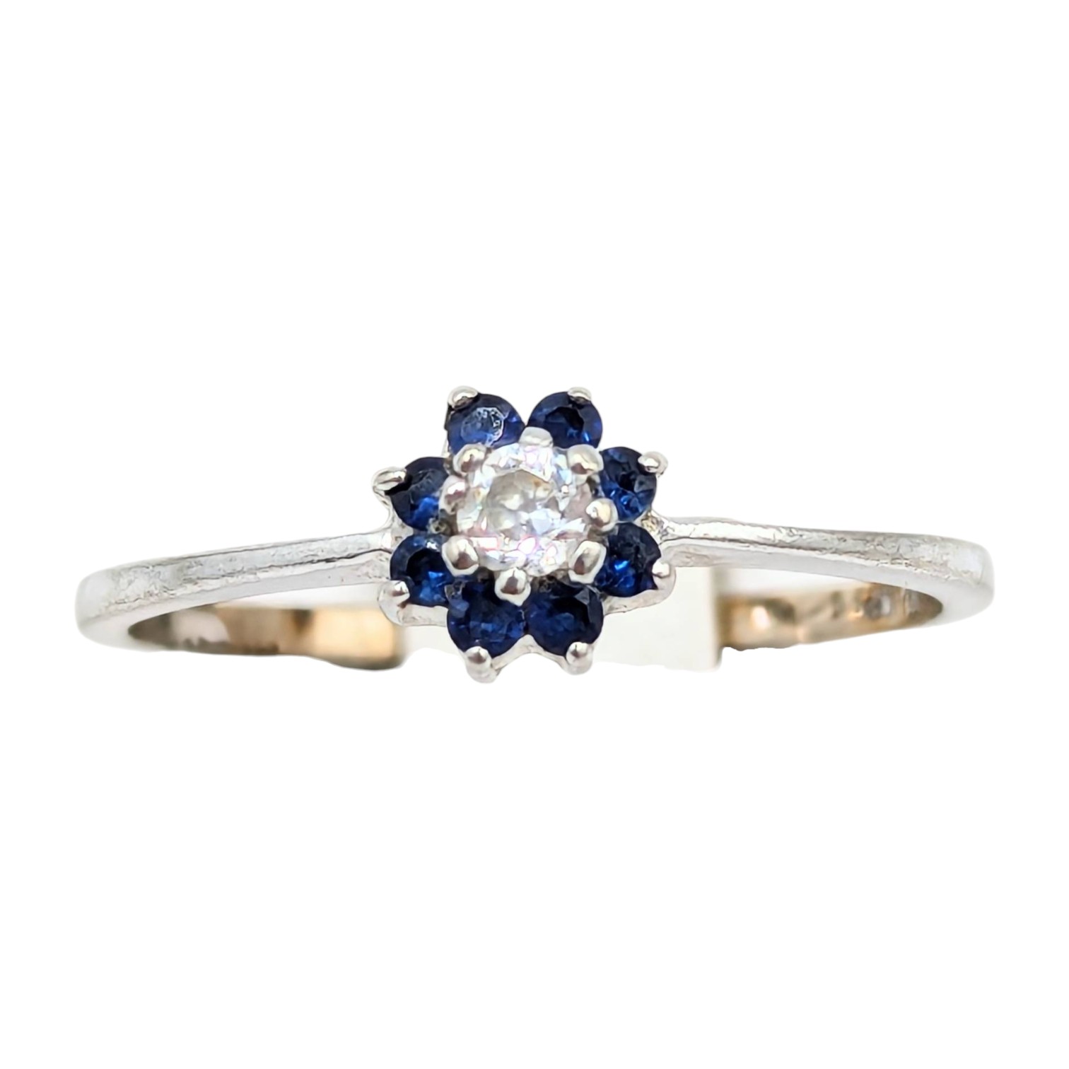 Sterling Ring With Dark Blue Topaz and Clear Stone, Size 8 1.21g China