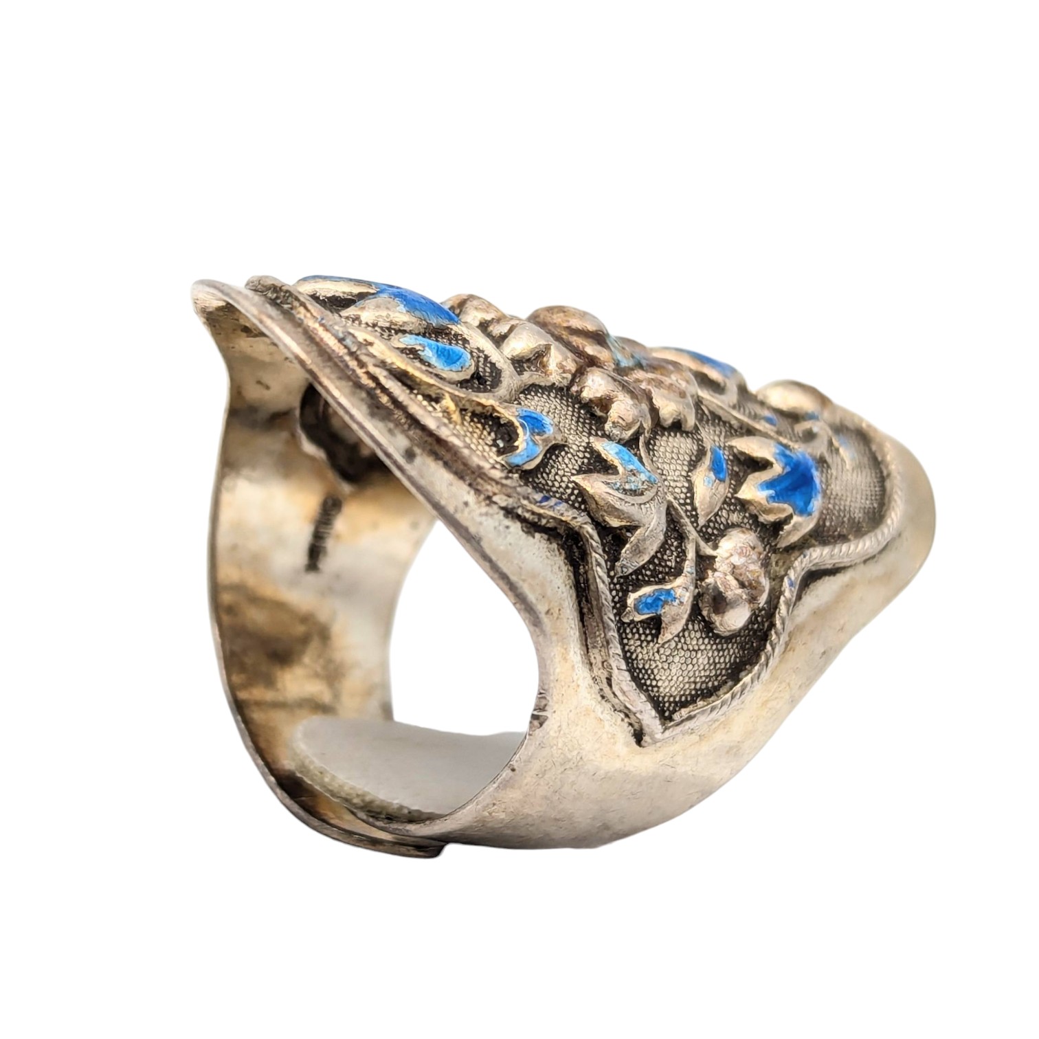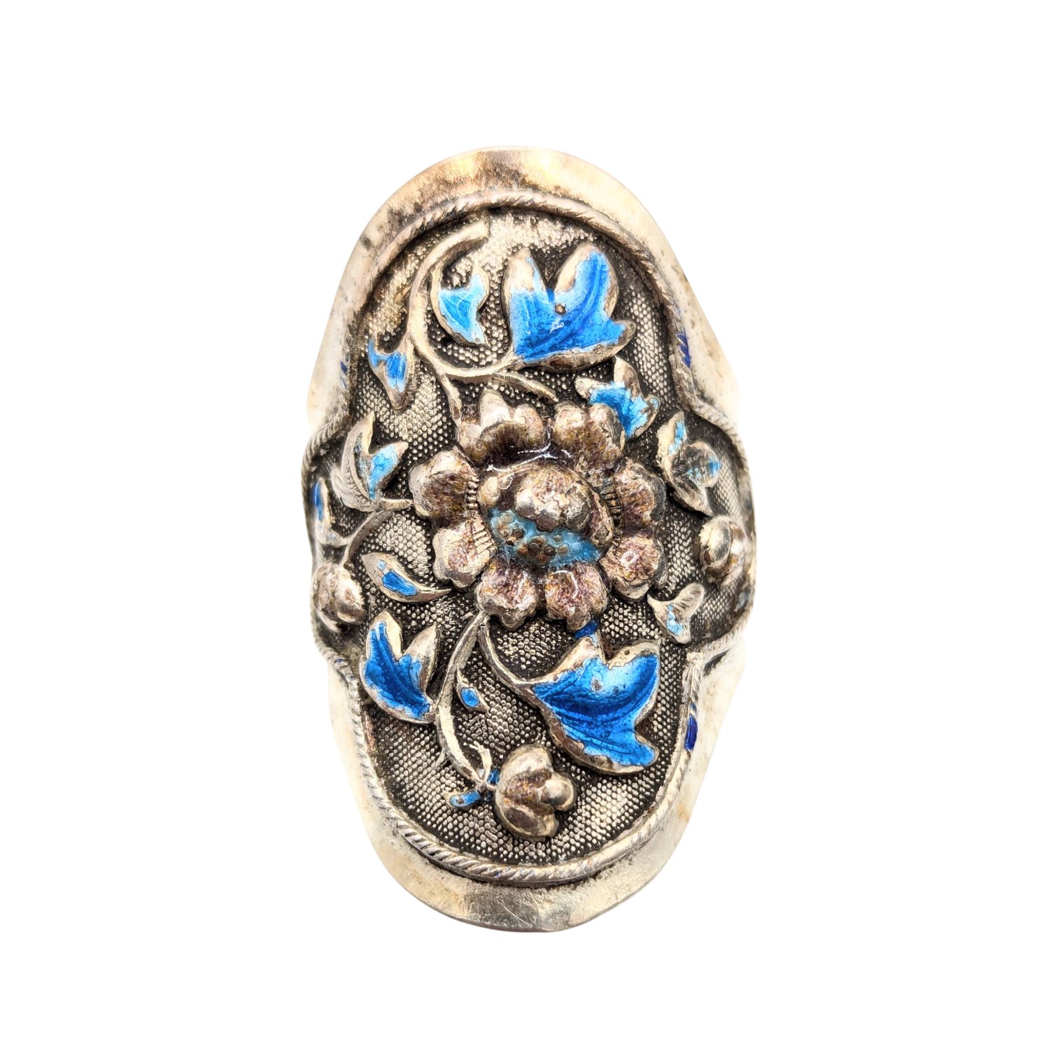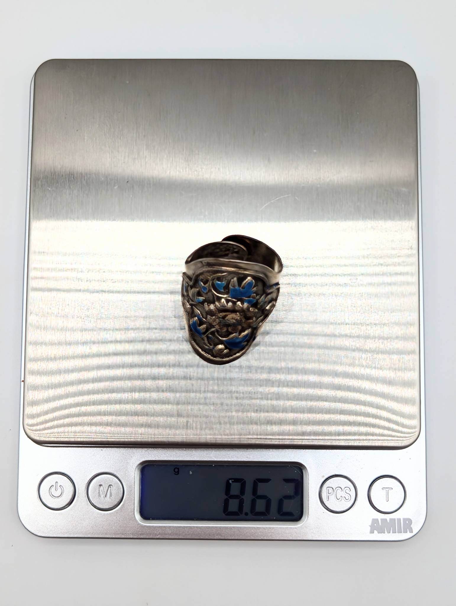 Sterling Adjustable Floral Design with blue Accents, Size 9.5, 8.62g