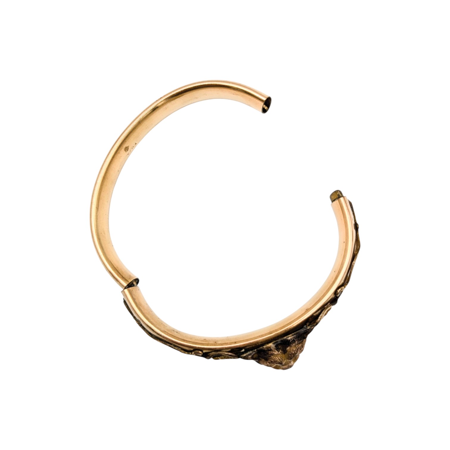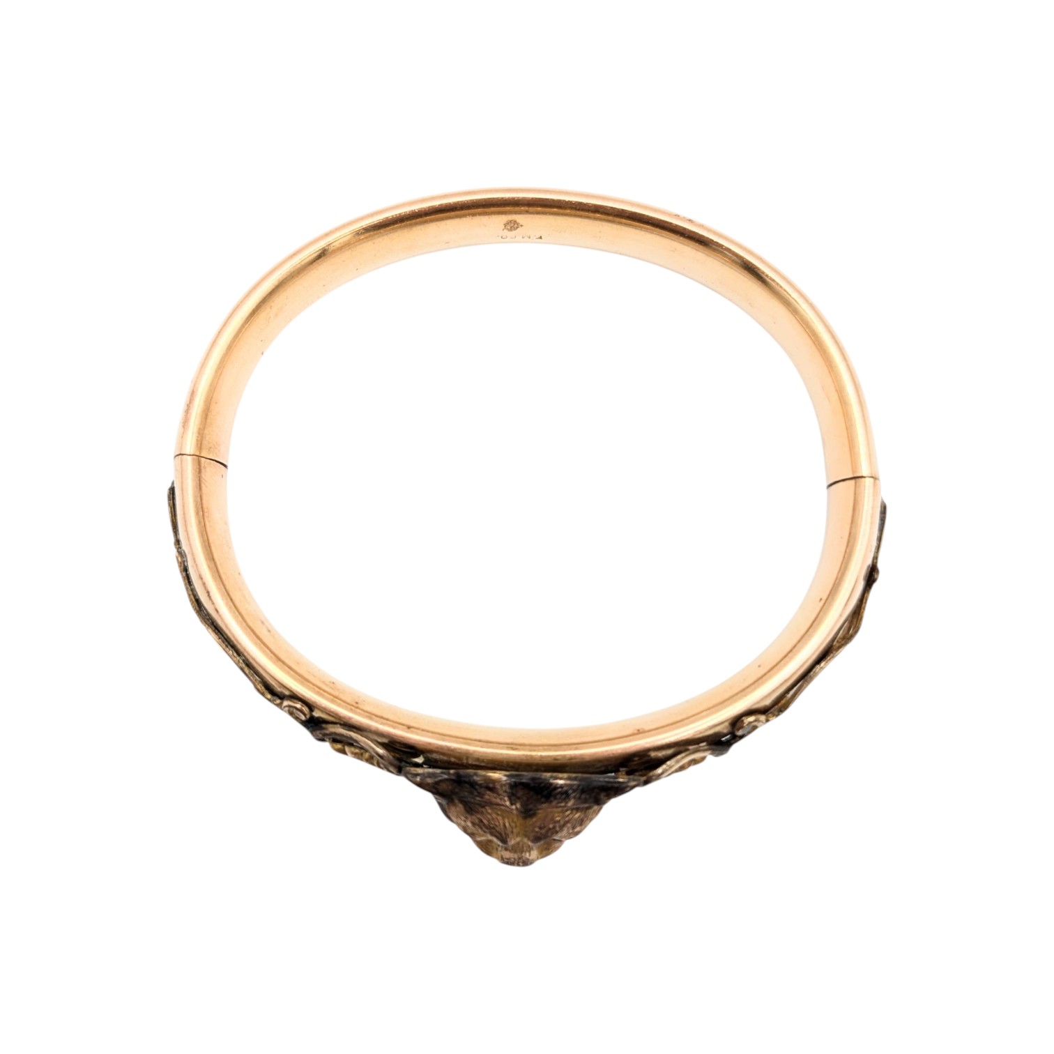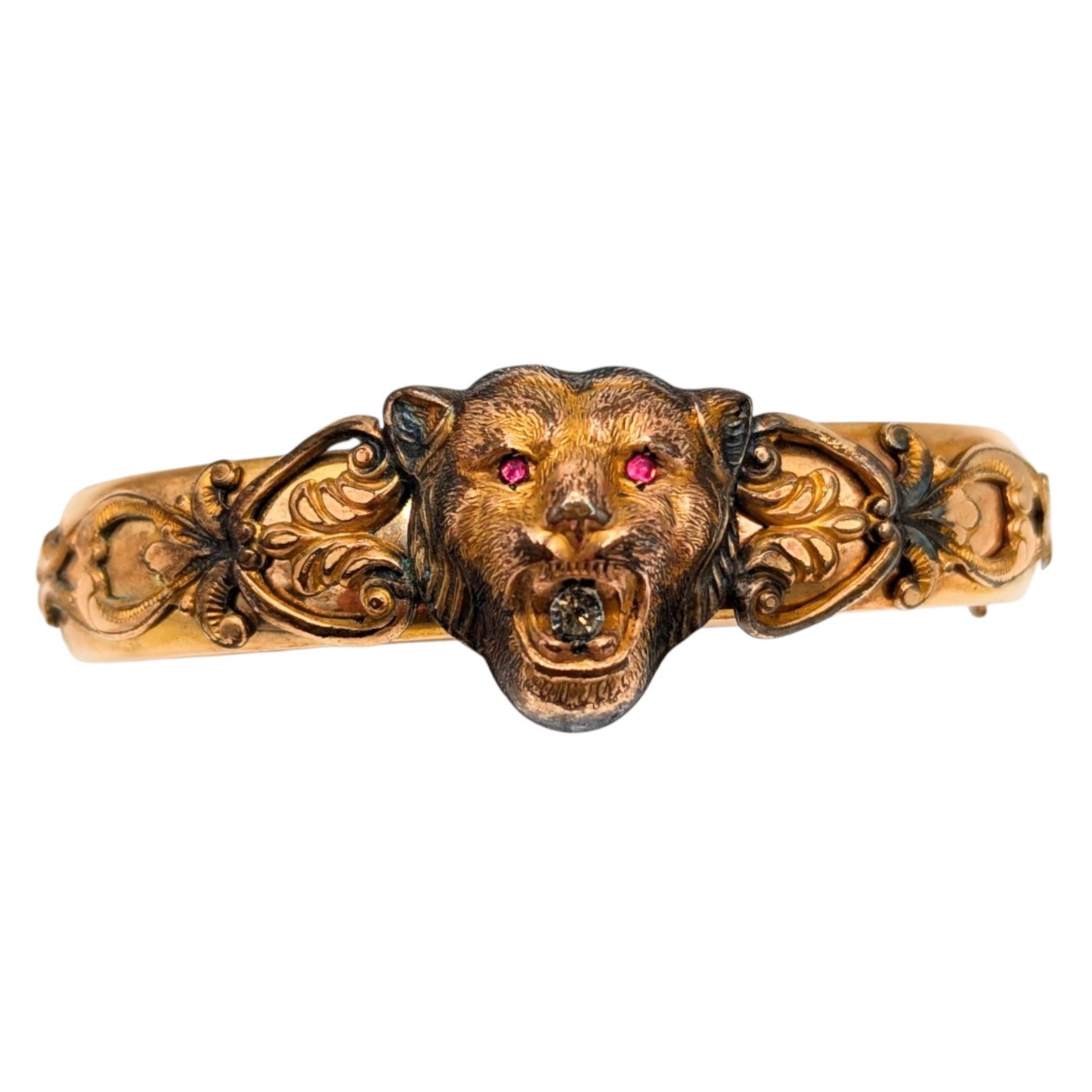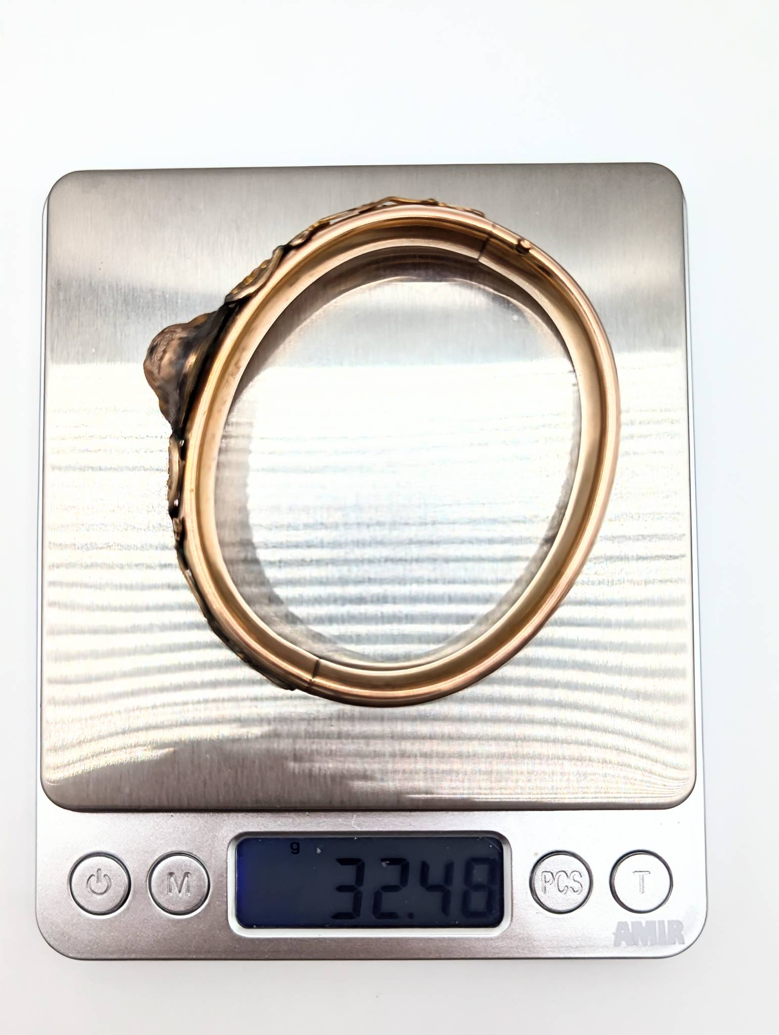 Vintage FMCO Gold Fill Lion Head Rhinestone Bangle 32.48g