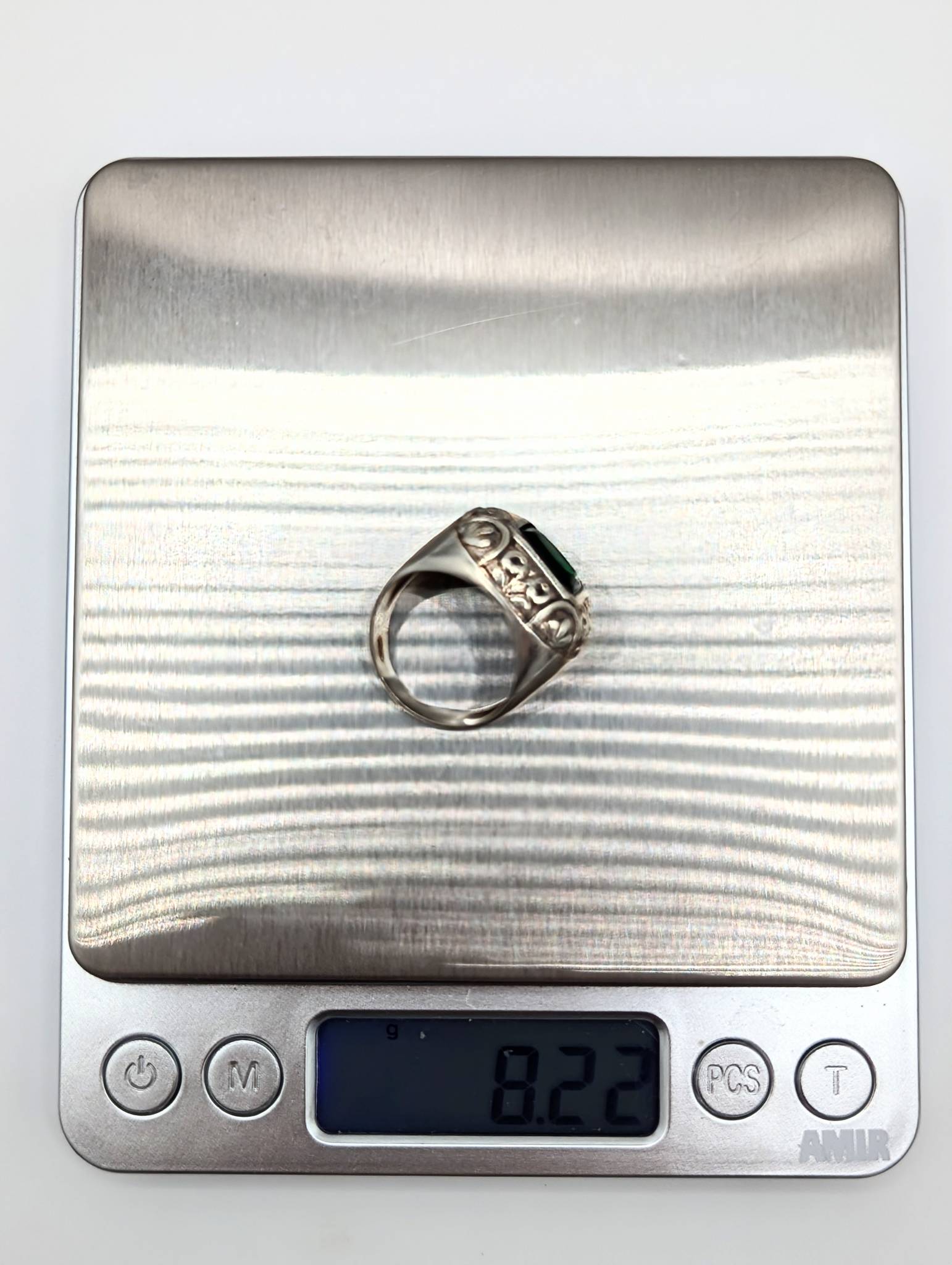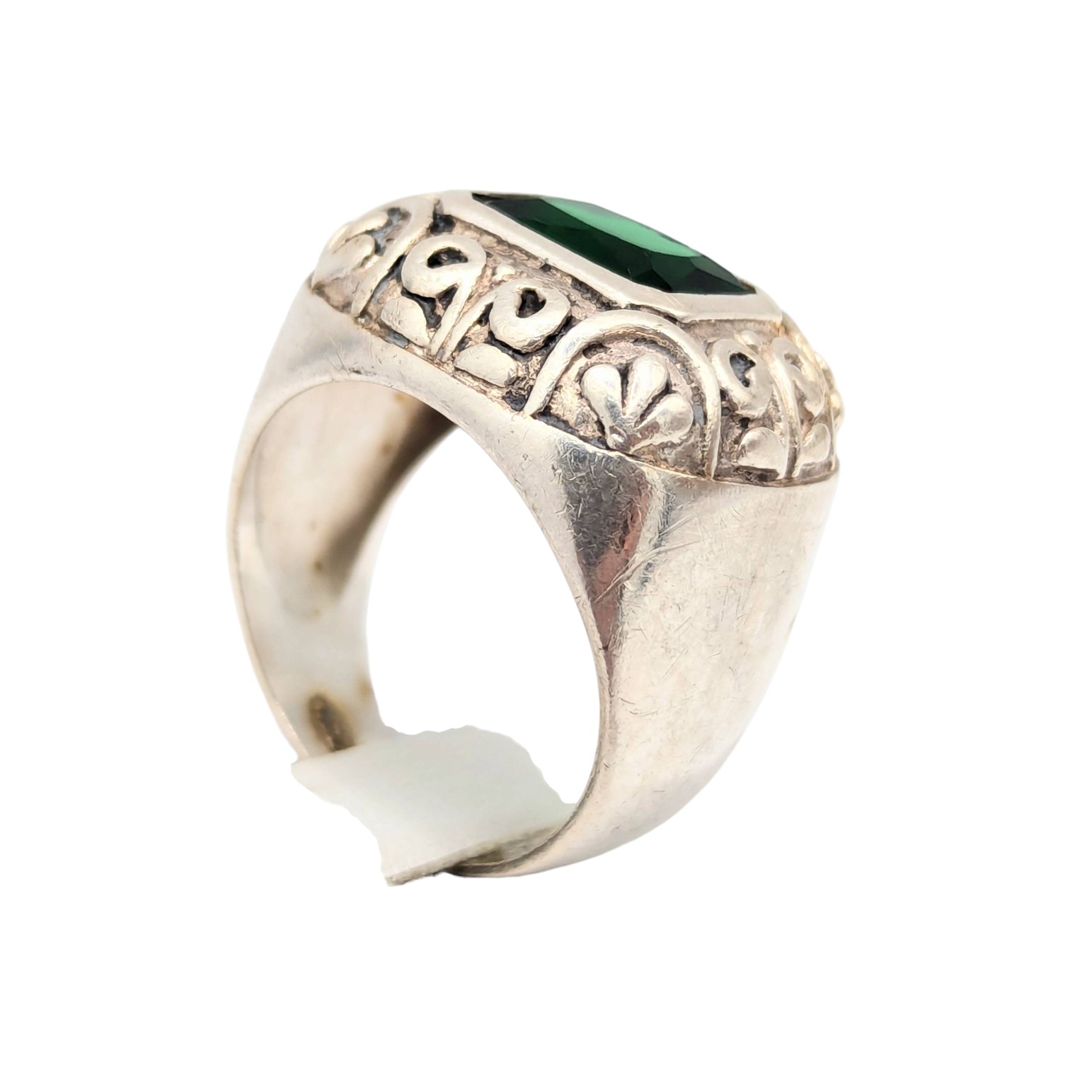 Sterling Ring With Green Rhinestone, Size 7.5, 8.22g