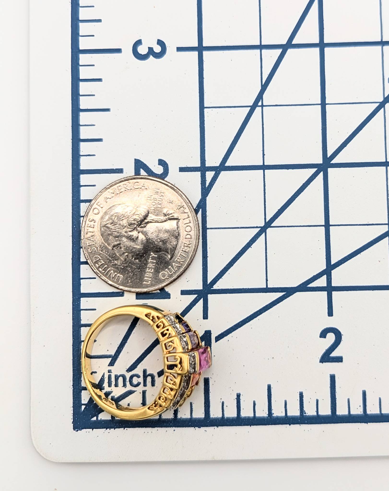 Sterling Gold over Spinel, Topaz, Rubies Multicolor Gemstones sz 8, 6.22g UTC China