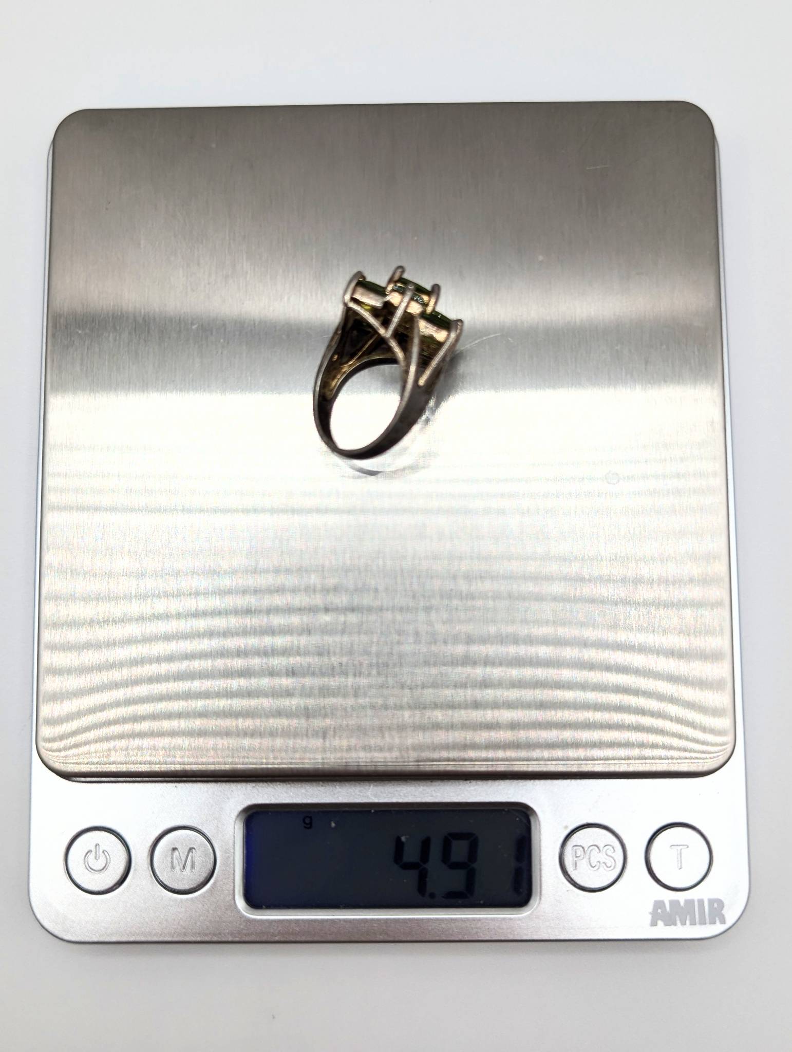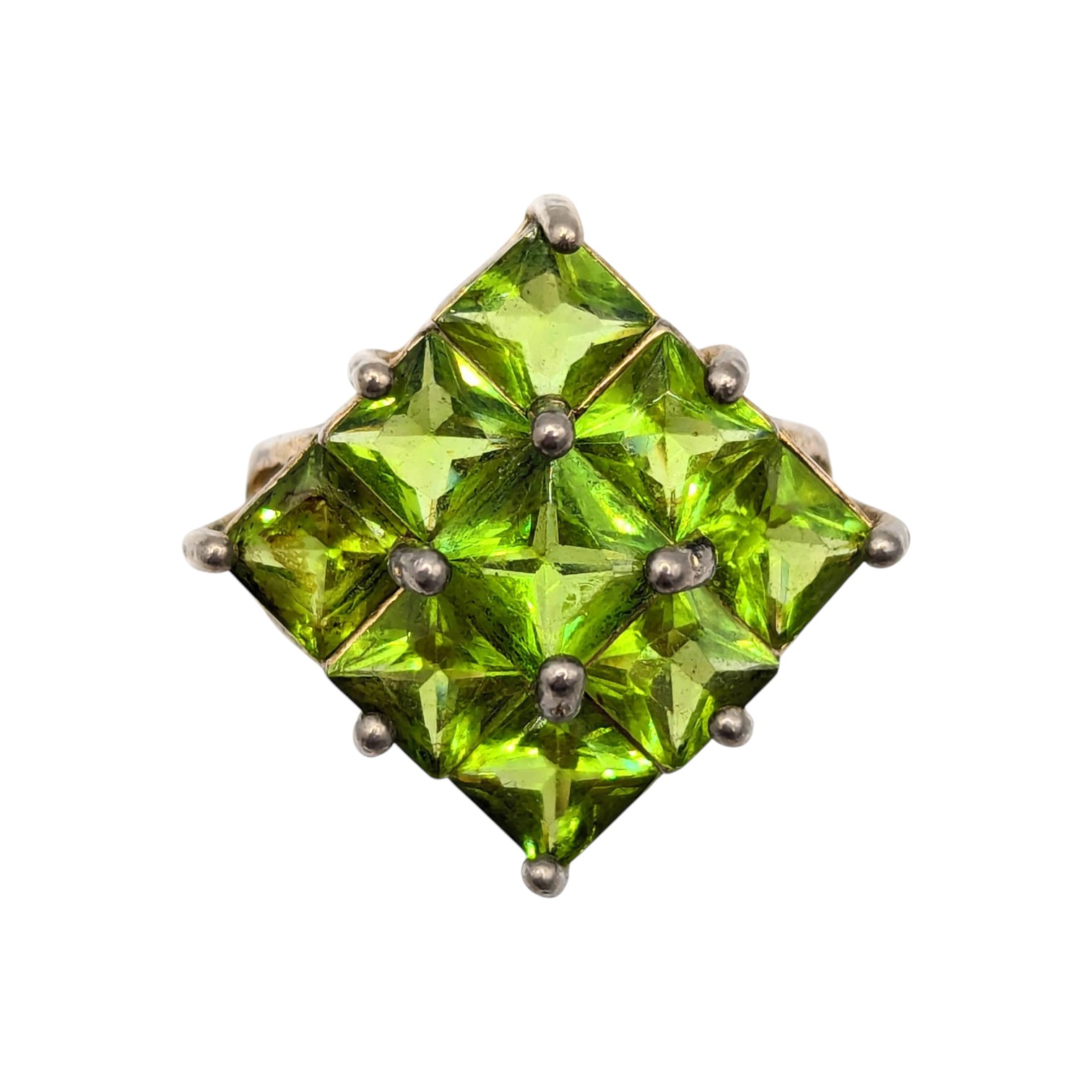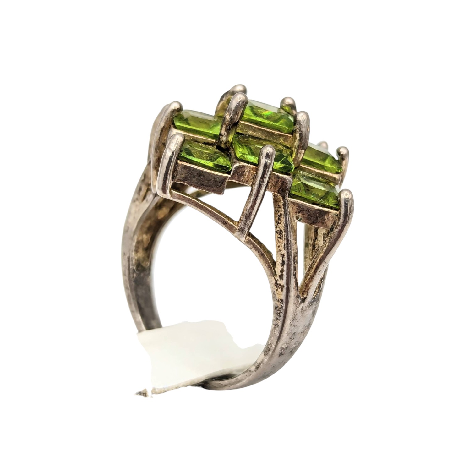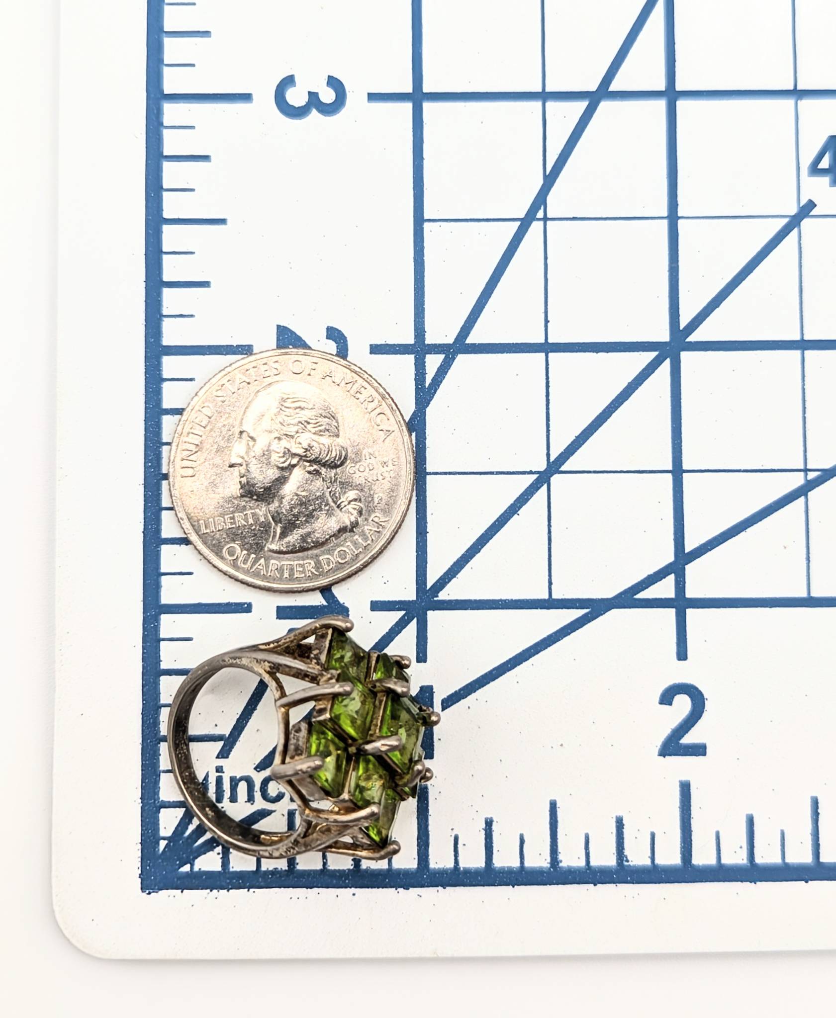 Sterling Green Rhinestone Cluster Ring, Size 6, 4.91g