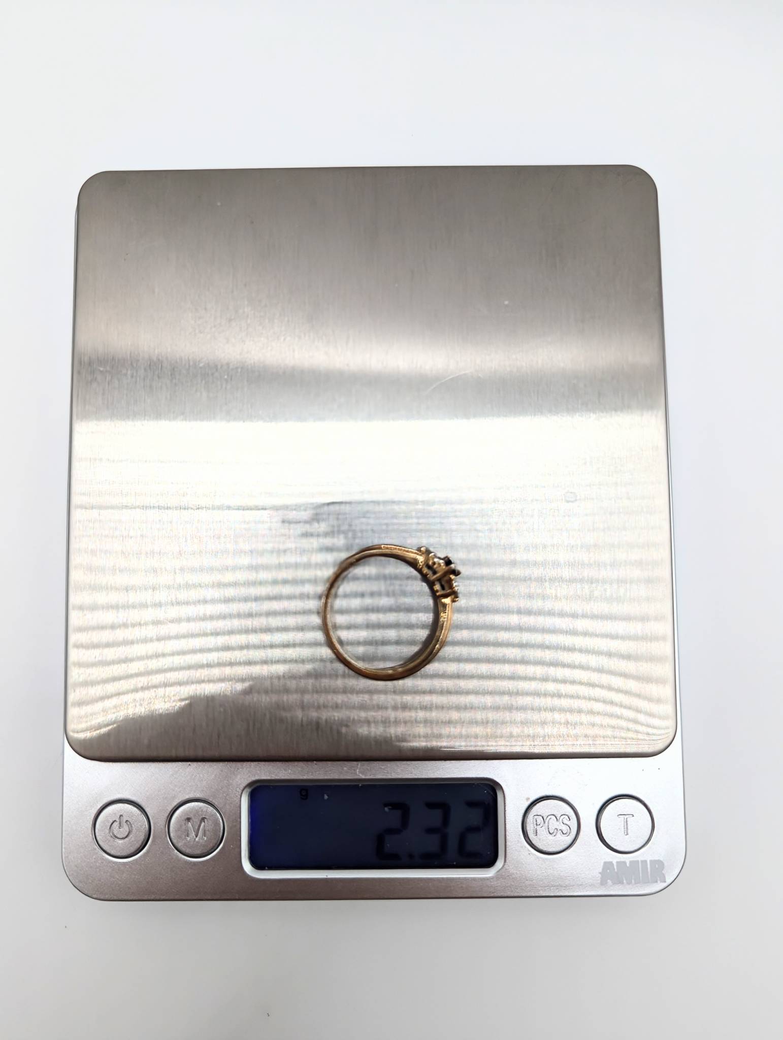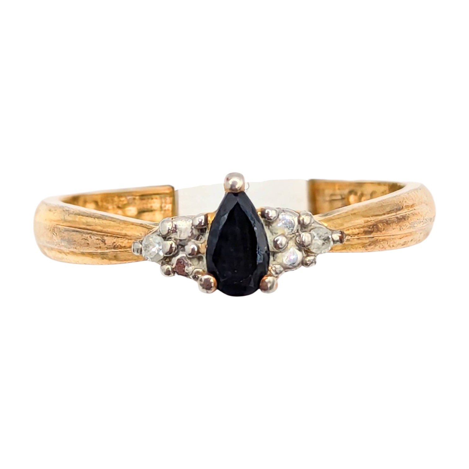 Sterling Gold over Size 7.5 Ring with Sapphire and Diamonds 2.32g China