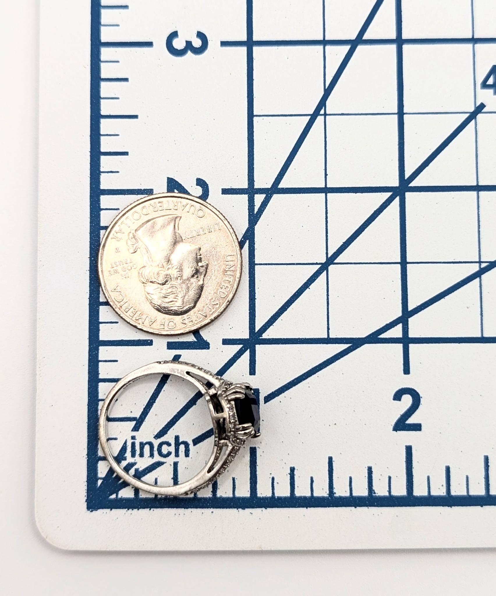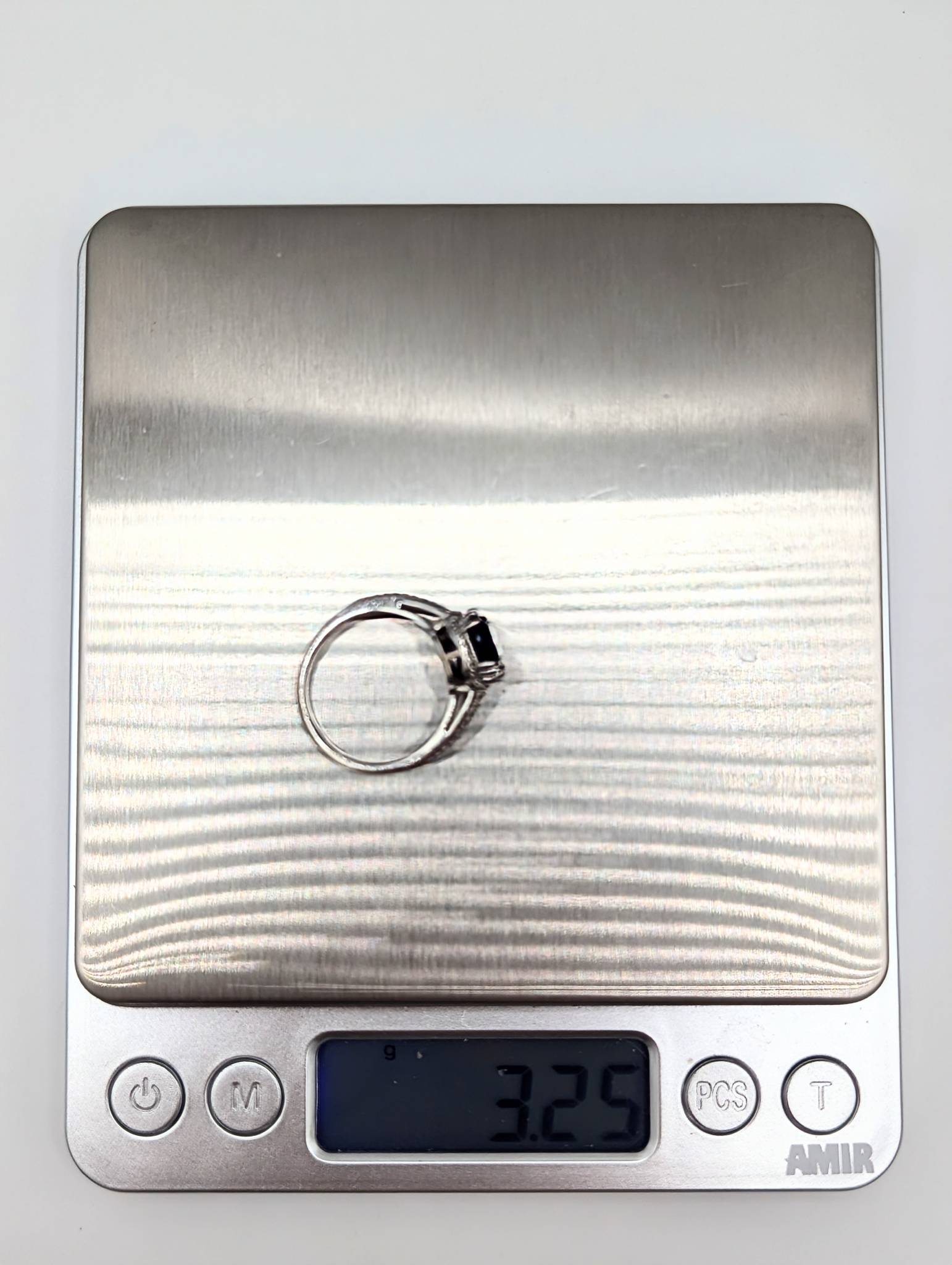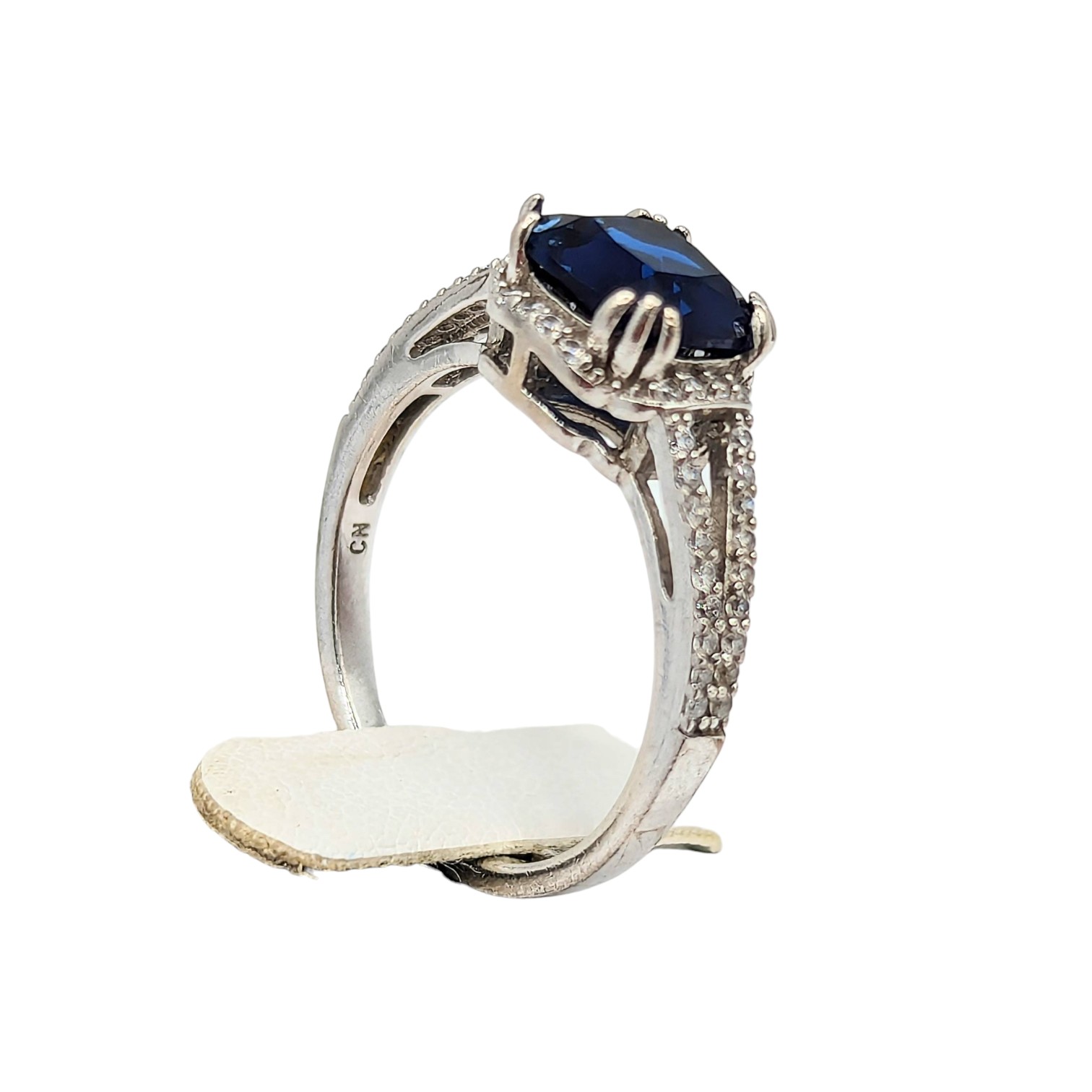 Sterling Blue Rhinestone with Clear Rhinestones surrounding Ring Size 7.25, 3.25g,