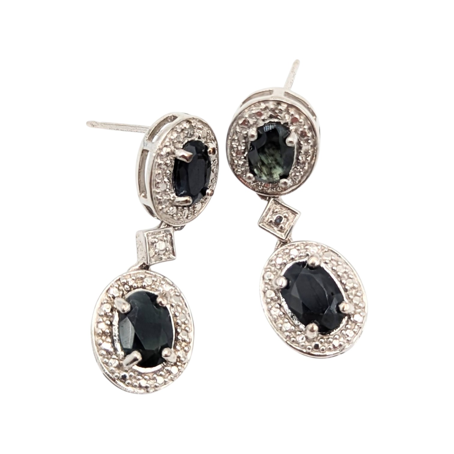 Sterling Dark Blue Sapphire S Drop Earrings 4.6g