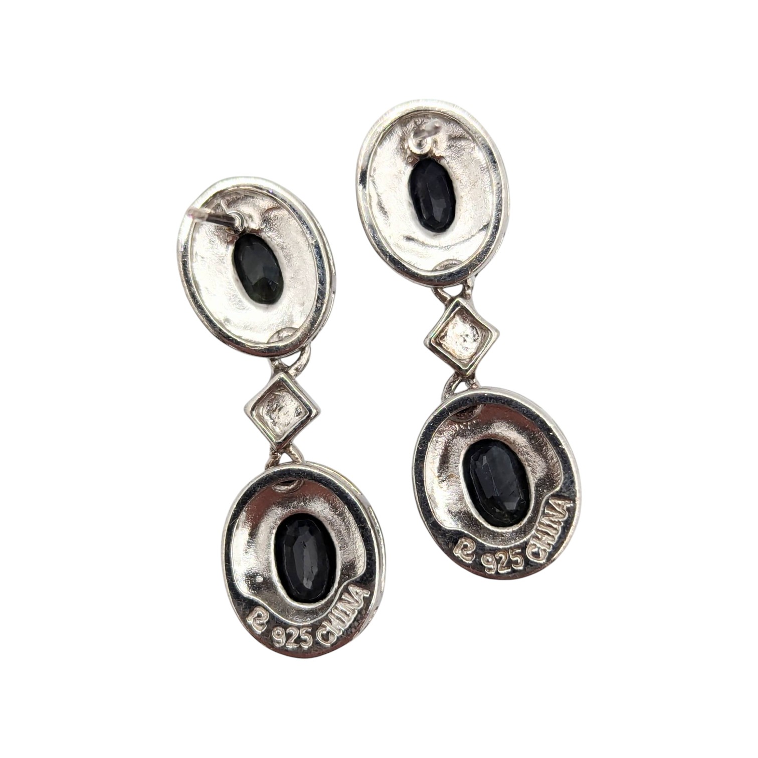 Sterling Dark Blue Sapphire S Drop Earrings 4.6g China no backs