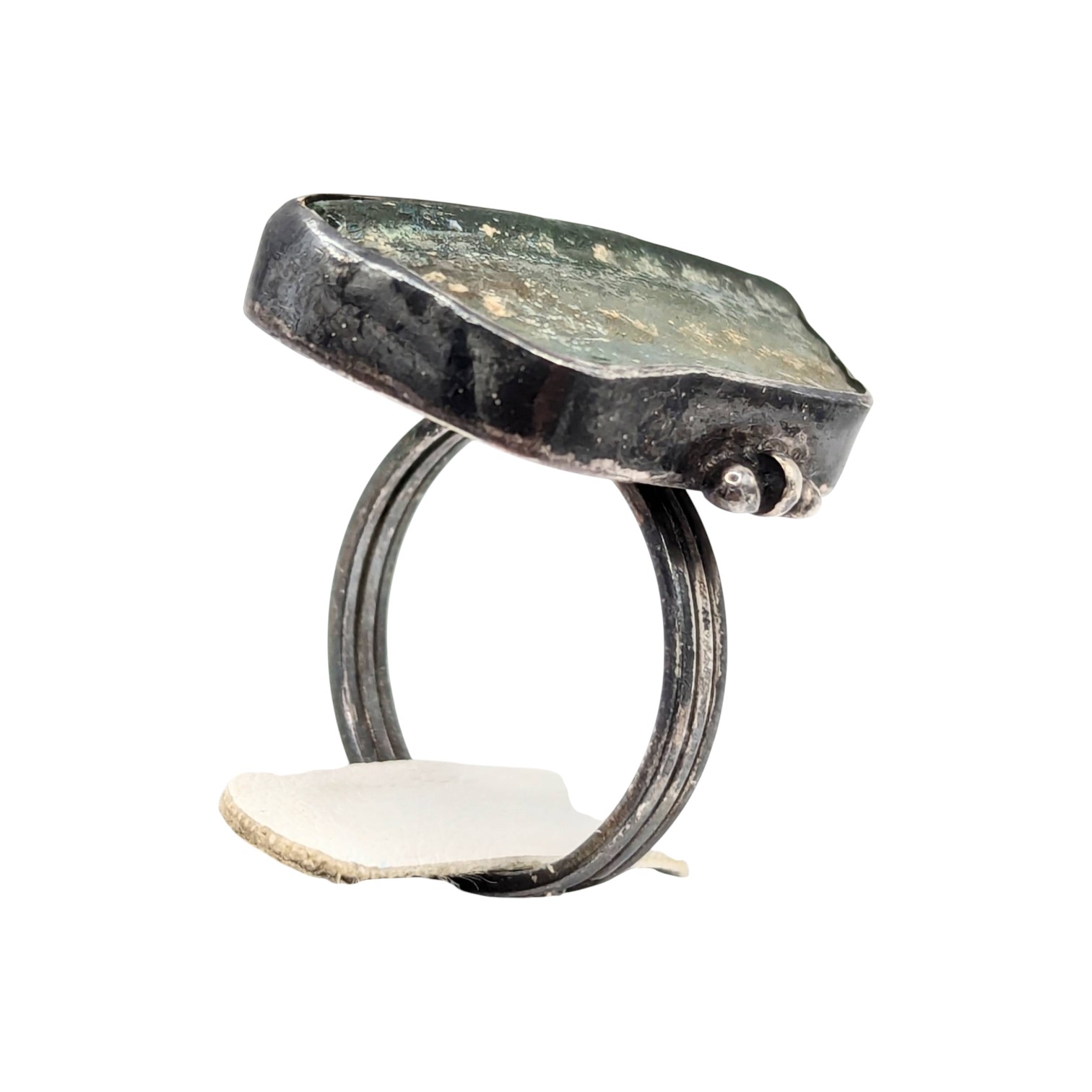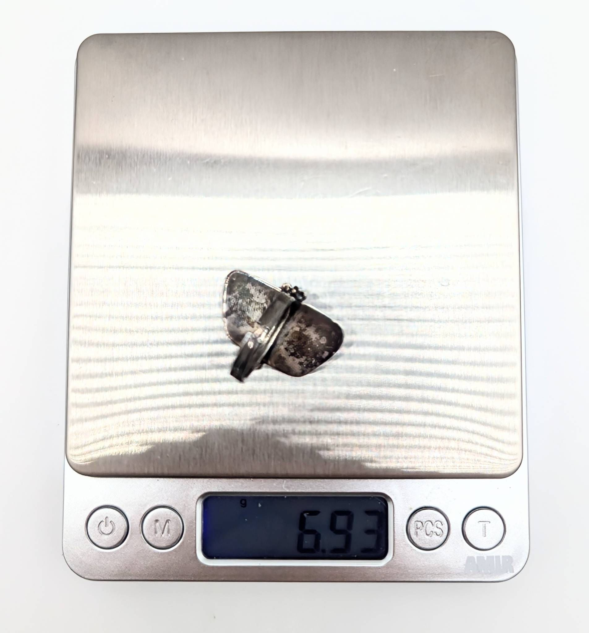 Sterling Adjustable Ring Raw Stone and Sterling SZ 6.75, 6.93g