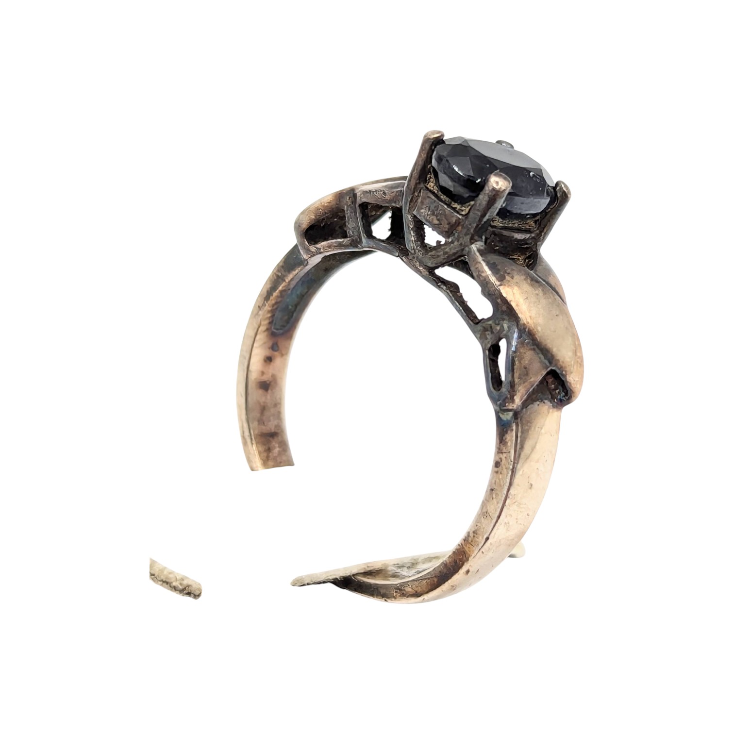 Sterling Sapphire Ring in Size 5.25 with Unique Band Design