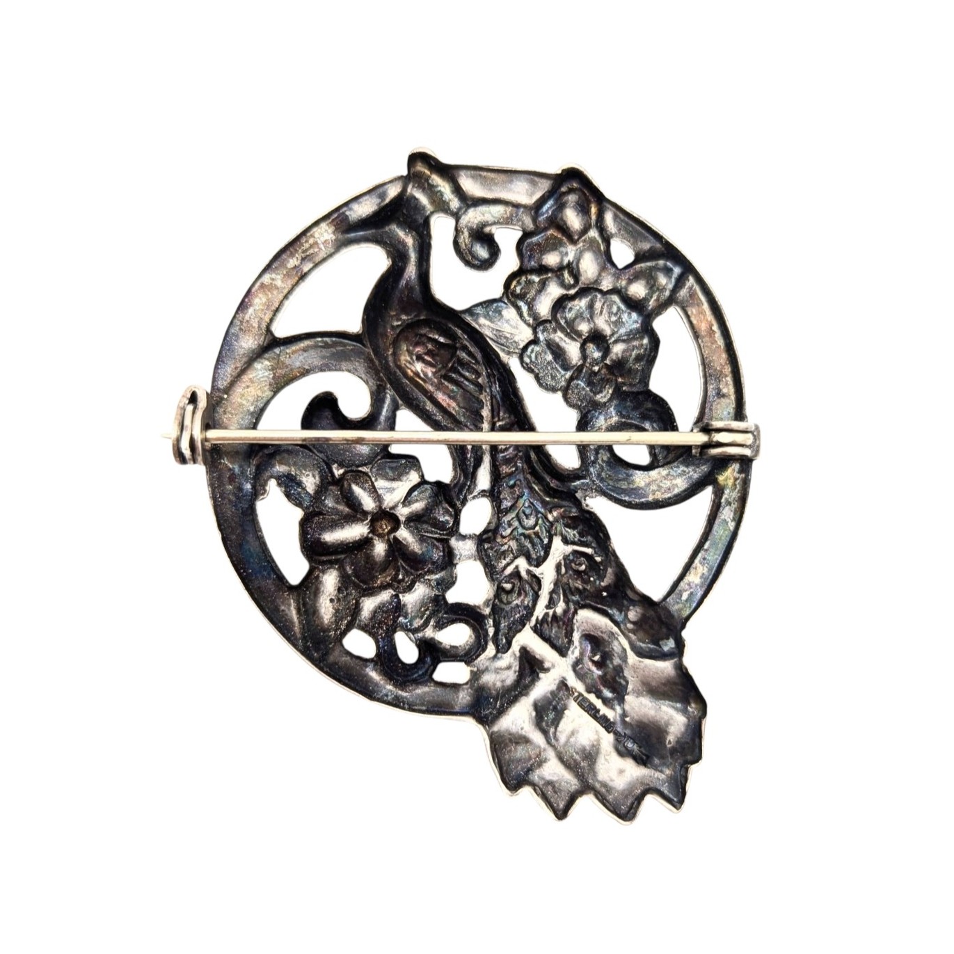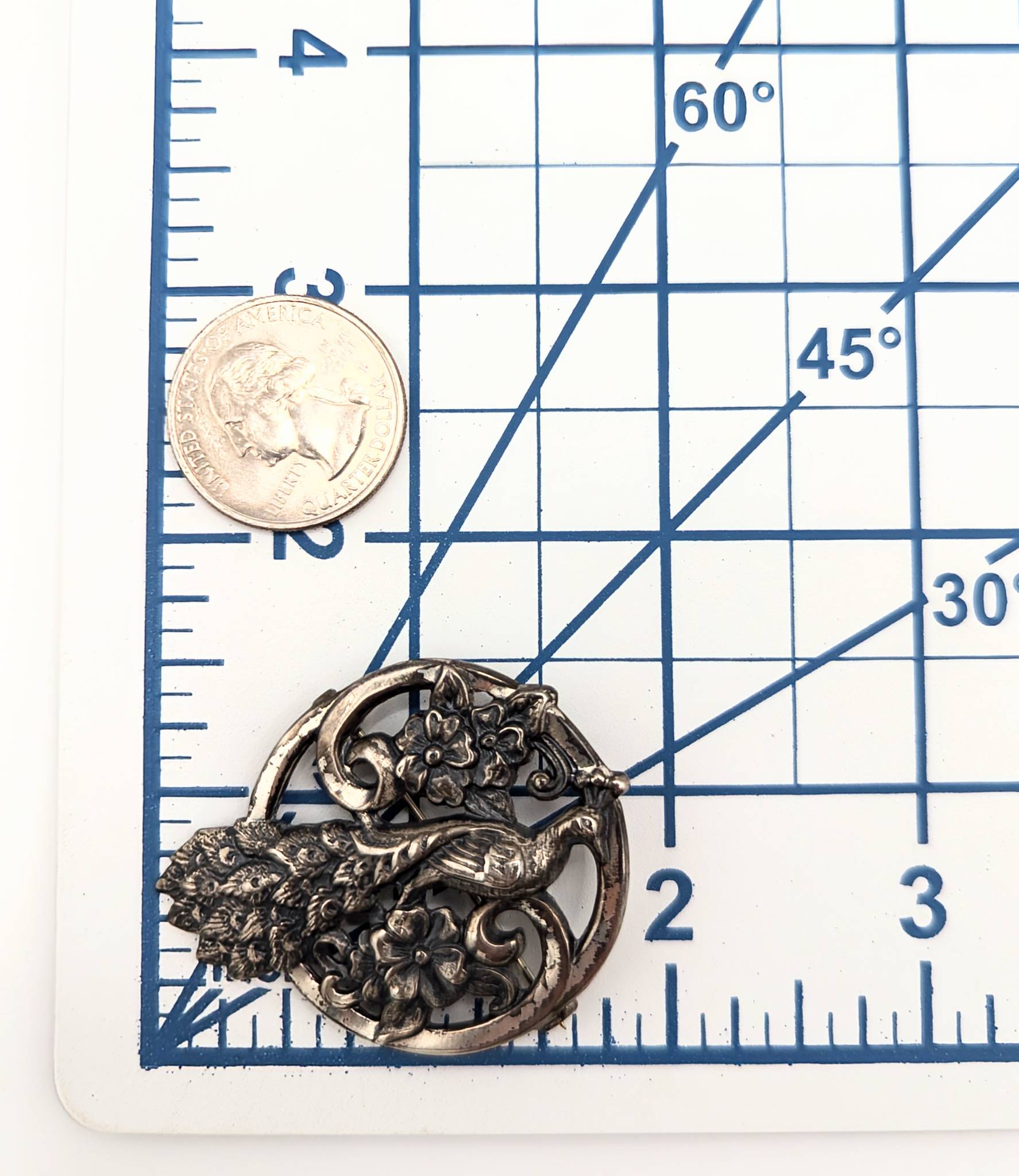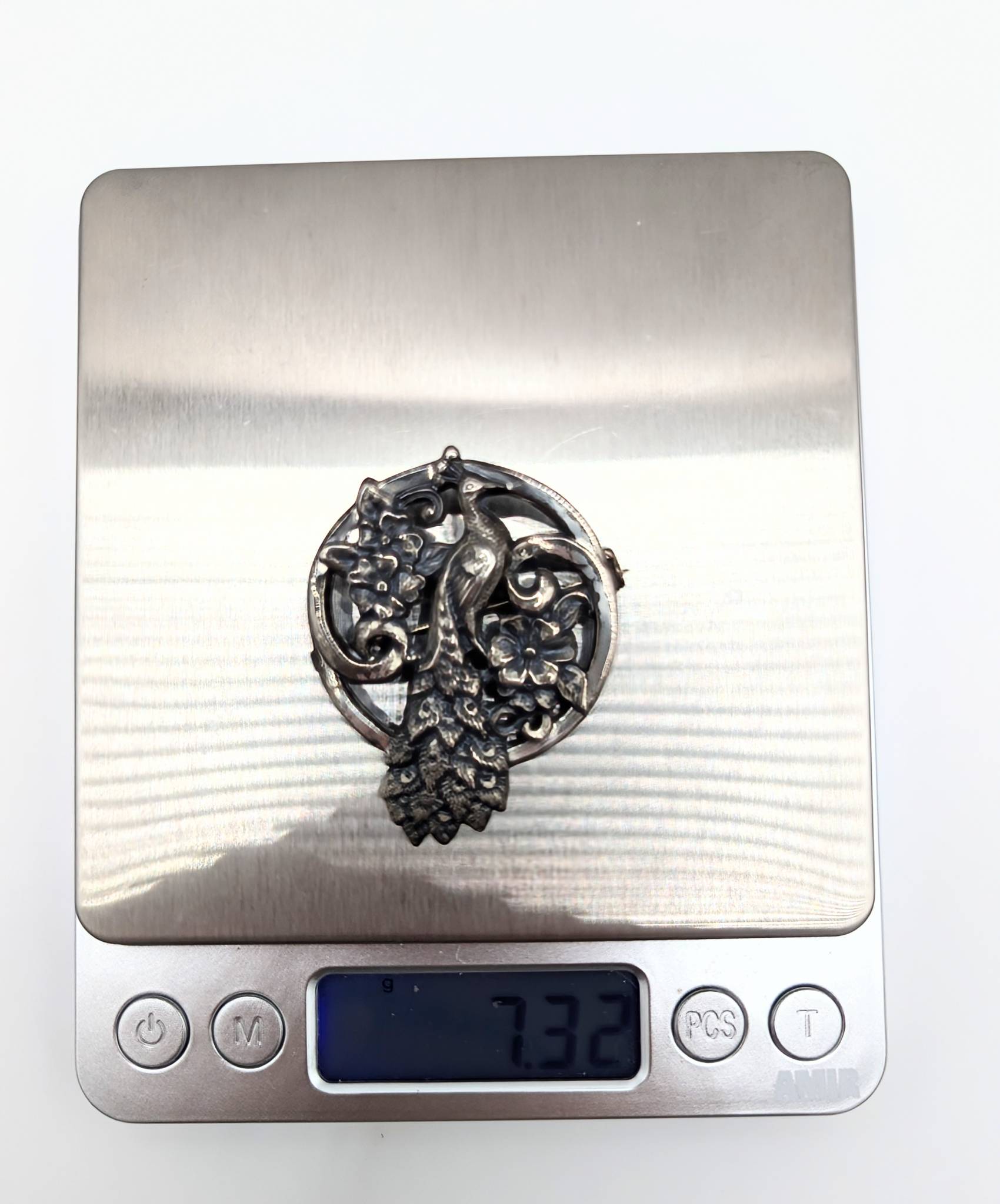 Sterling Peacock and Floral Motif Brooch 7.32g