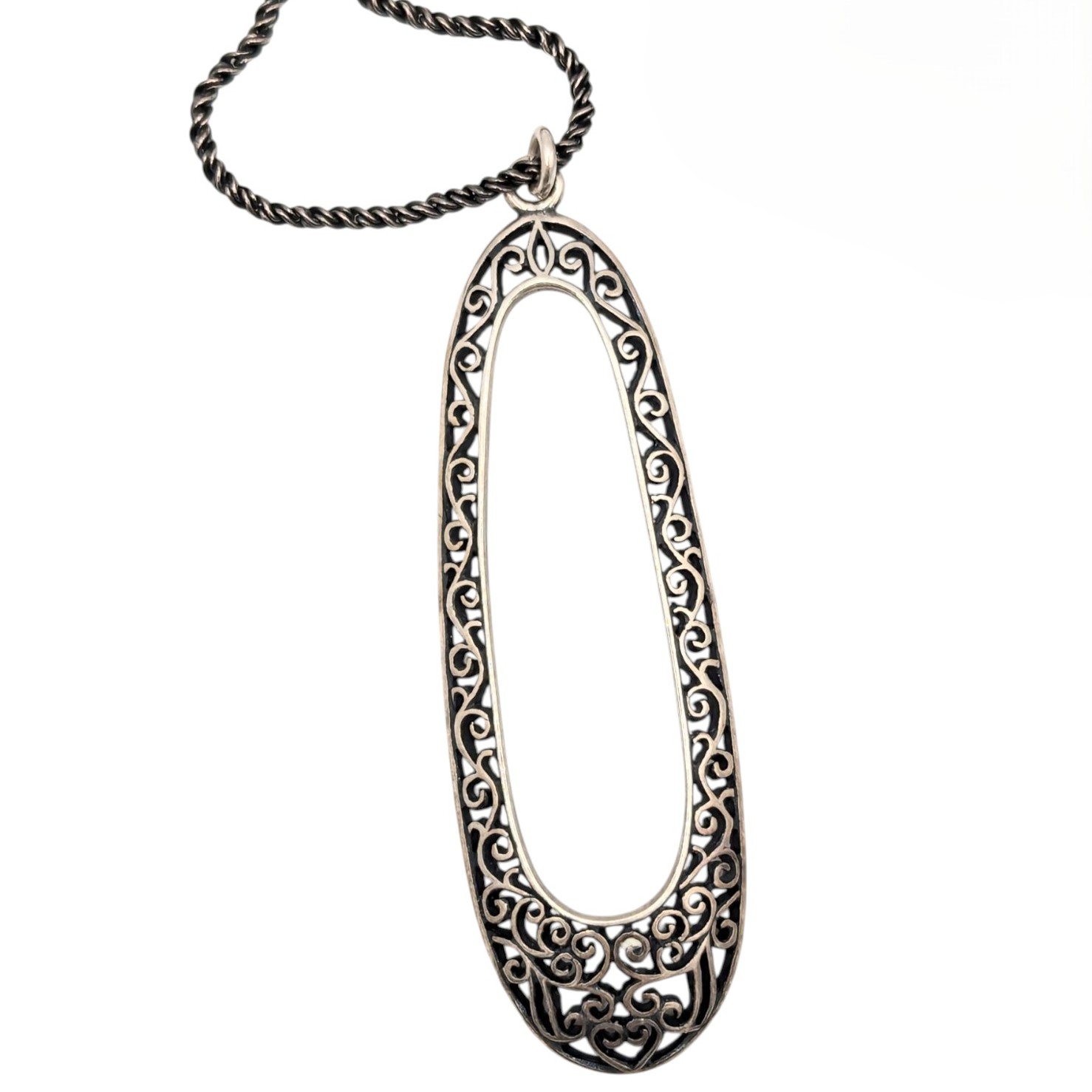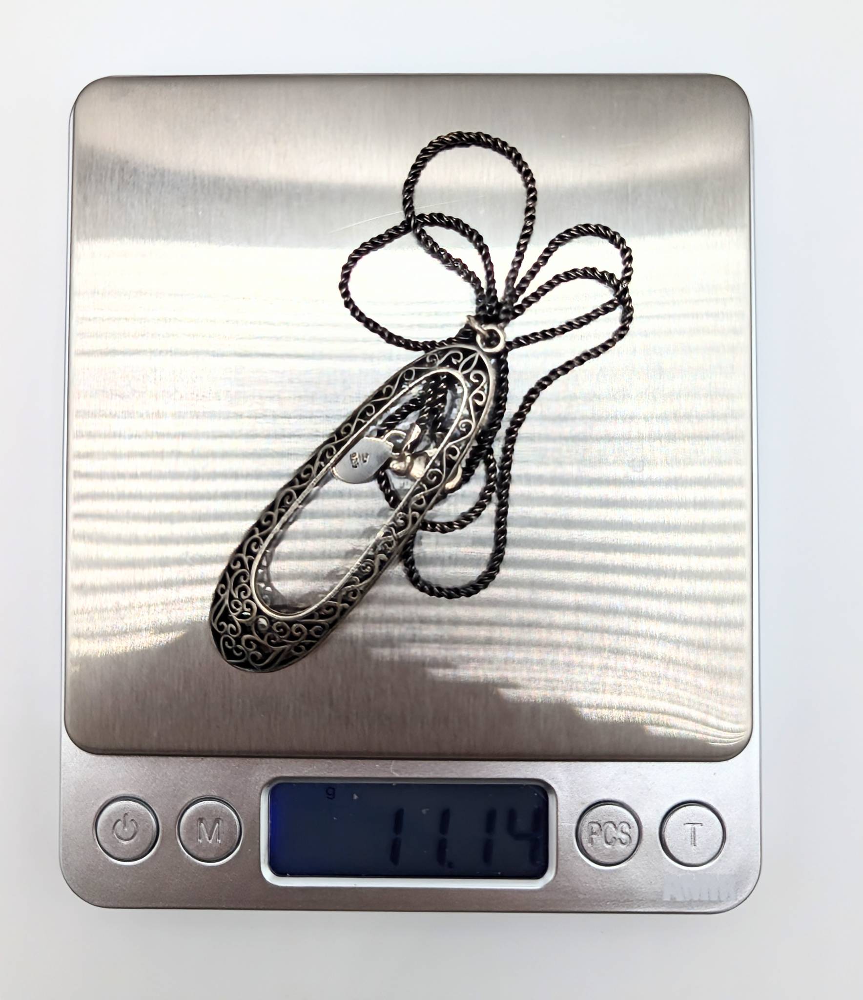Sterling Rope Chain Necklace with Oval Pendant 11.14g
