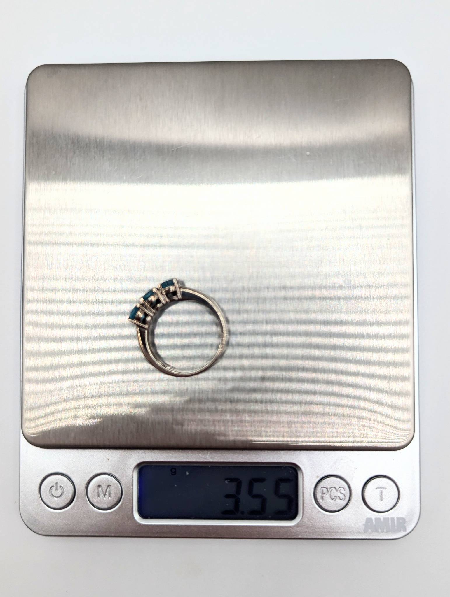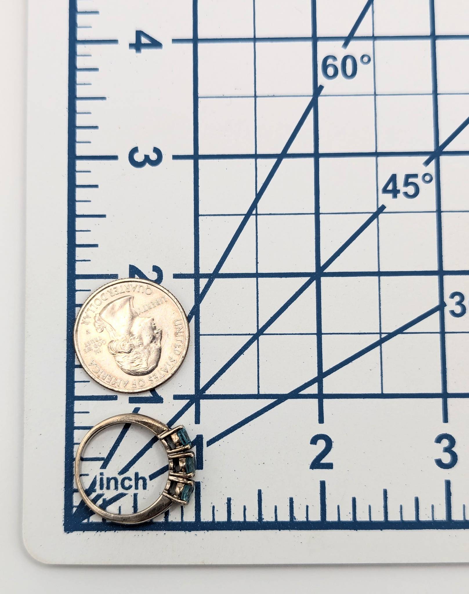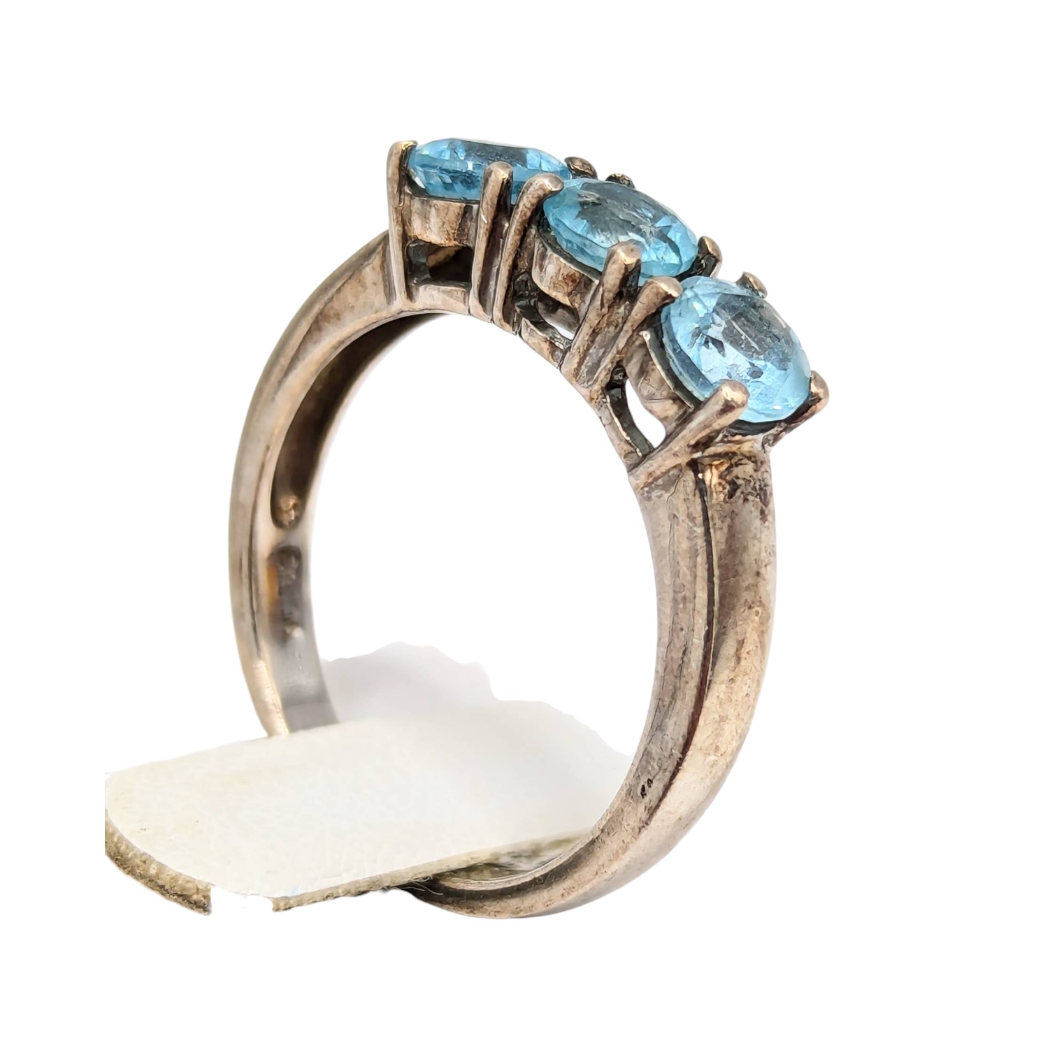 Sterling Size 8 Ring with Blue Tourmaline Triple Stone Design, 3.55g, China