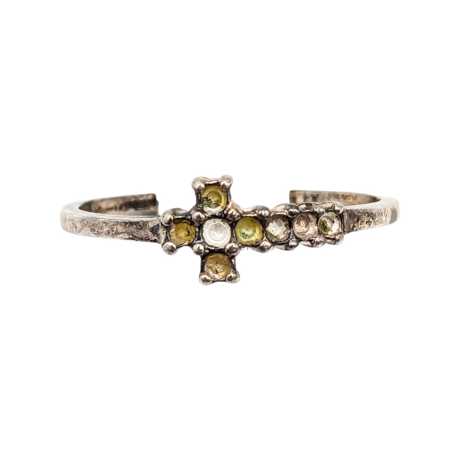 Sterling Multistone Cross Ring as is Size 4.75 TH, 0.85g missing all stones